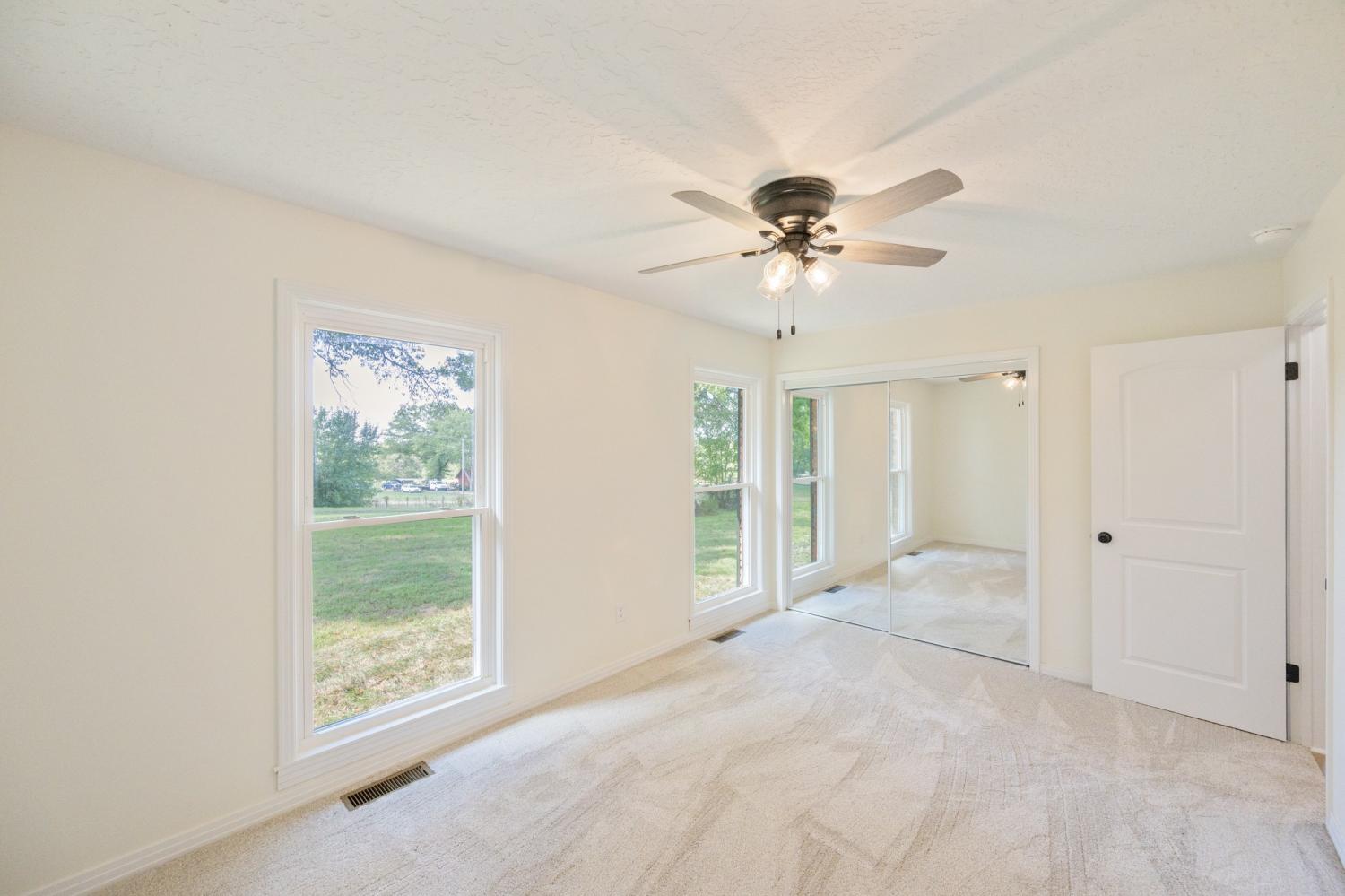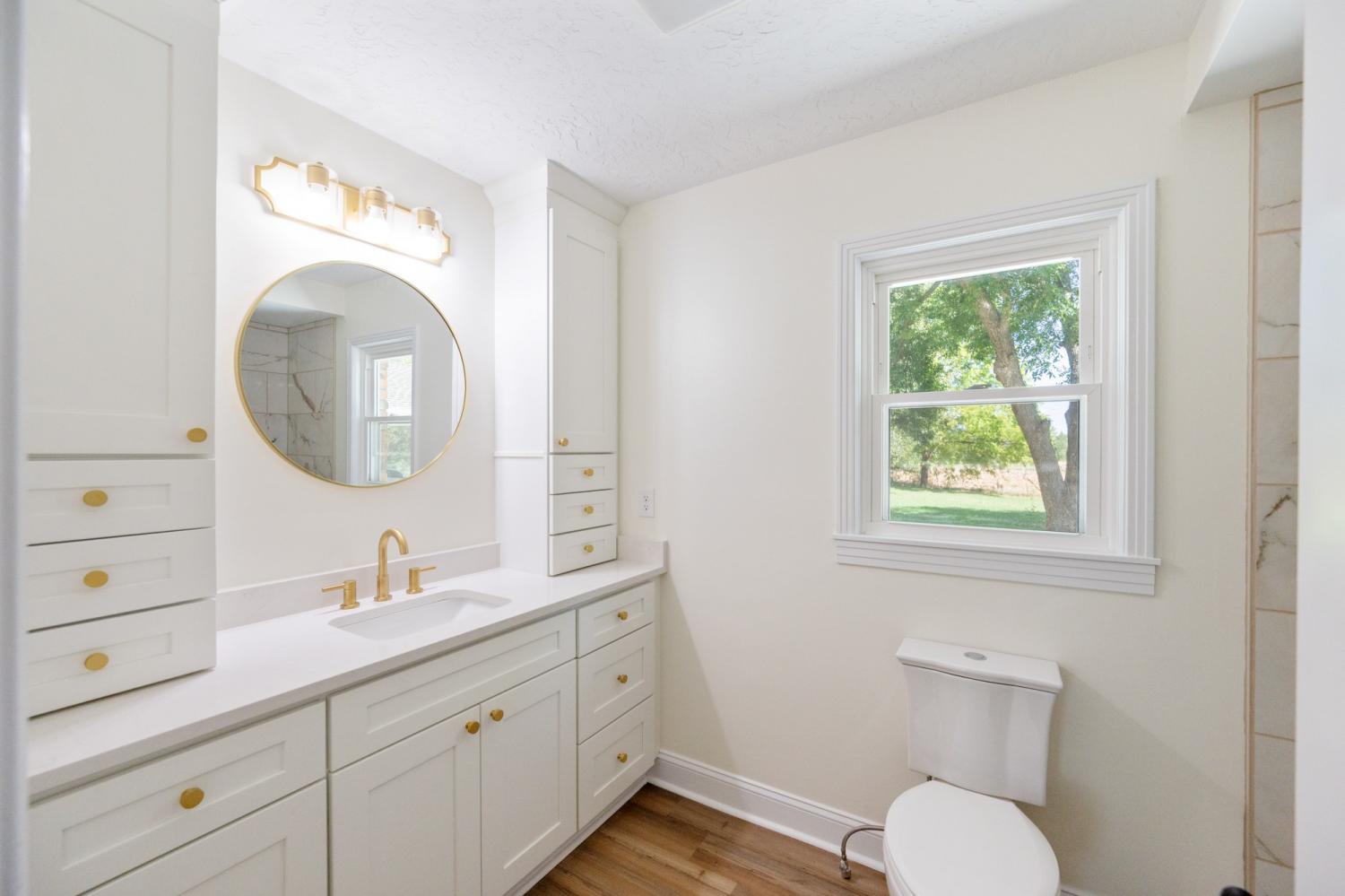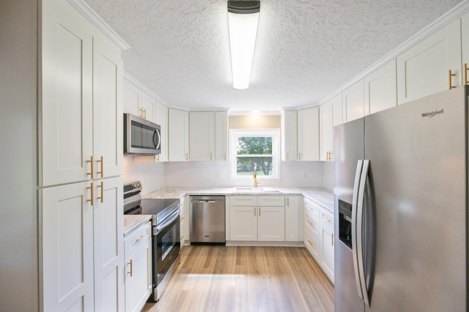 Brick home in the Heart of Holladay Tennessee. This home is located approx. 100 miles West of Nashville and 54 miles East of Jackson, Tennessee in Holladay Tennessee / Benton County. The home has been renovated in 2025 with New Roof on the house & outbuilding, New Blacktopped Driveway, New 20 x 42 concrete patio, New Windows, New Flooring, New paint, New kitchen cabinets ,countertops, stainless steel appliances ( dishwasher, sink, microwave, range and refrigerator, New light fixtures and ceiling fans, The Hall bath has New tub with tile surround, vanity, mirror and toilet, The Master Bath has New walk-in tile shower, custom vanity and toilet. New insulation on the HVAC duckwork in the basement. The Basement has a NO LEAK warranty from AFS in Nashville TN. They installed a built in drain system in the basement floor. The home sets on 3.2 unrestricted acres with level yard New Sod in part of the back yard . The property has city water with natural gas available at the road, septic, 3 pecan trees, 3 black walnut trees, 2 peach trees and large oak shade trees. This home is a short from to the Tennessee River/Ky Lake, 2 State Parks and is located in one of the best communities in Tennessee.