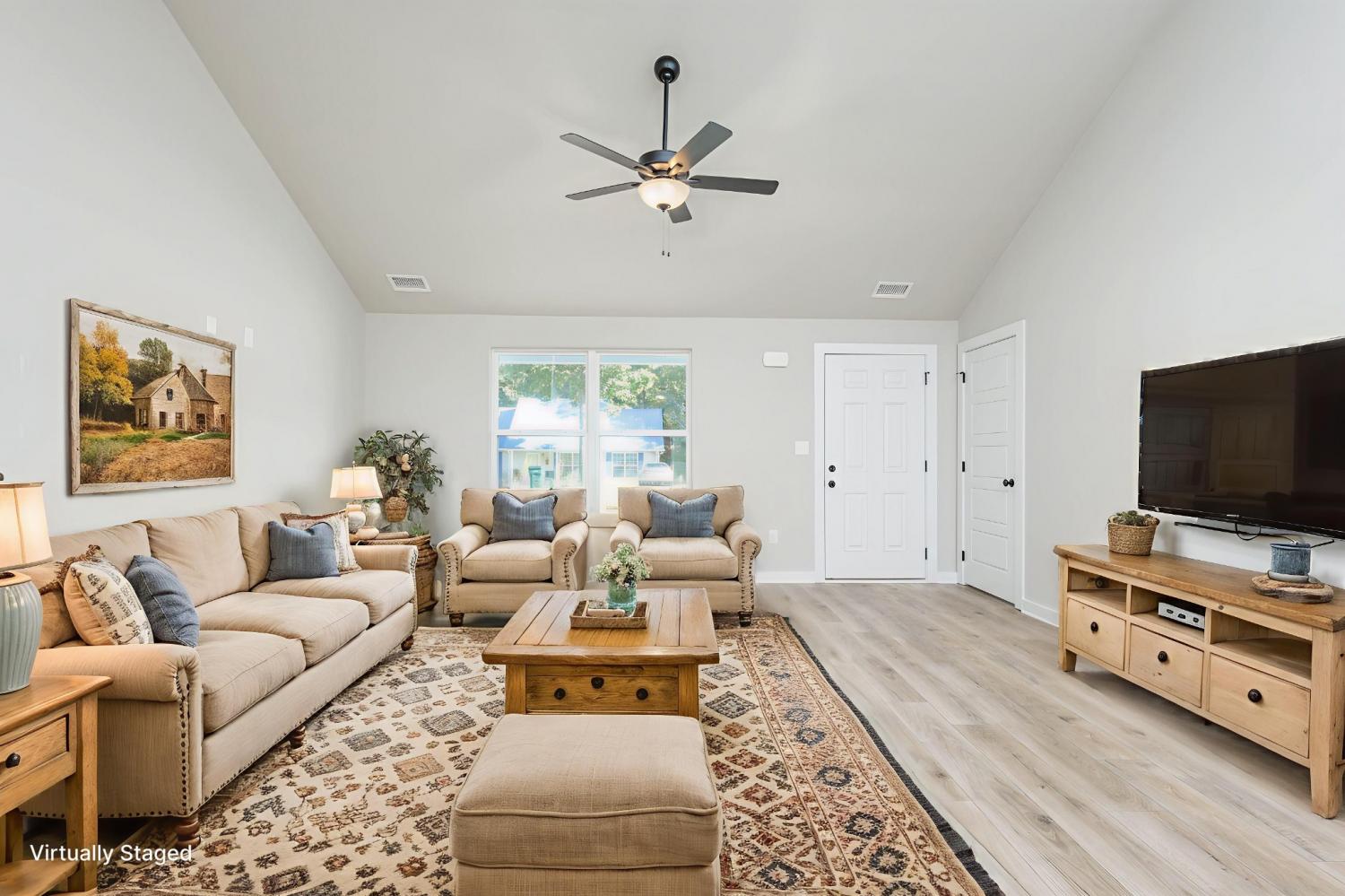 Nason Homes presents a True Split-Bedroom Ranch Home ideally located within the City Limits of Waverly, TN and only within a mile from Waverly Elementary and Jr High School. Outside, enjoy summer nights and fall mornings on the spacious Back Deck surrounded by mature trees or the Covered Front Porch, perfect for Rocking Chairs. Inside, you'll find the home is thoughtfully designed with a massive Great Room, upon entry, that connects the Kitchen, Living, and Dining with Soaring Vaulted Ceilings that peak at 12ft in height. The kitchen is appointed with White Cabinets, Granite Countertops, Stainless Steel GE Appliances, and a Huge Corner Pantry. The Primary Suite also features Vaulted Ceilings and has an En-Suite Full Bathroom with Double Vanities, Granite Countertops, and a massive Walk-in Shower and Walk-in Closet. This is a TRUE Split-Bedroom Ranch, with the Secondary Bedrooms located on the OTHER side of the home from the Primary Suite. Both Secondary Bedrooms are spacious and also feature more of those Soaring Vaulted Ceilings. Come see this incredible home before it's gone! Nason Homes is offering $5,000 towards Closing Costs with use of their preferred Title Company! The home across the street is also available and is the same plan!
