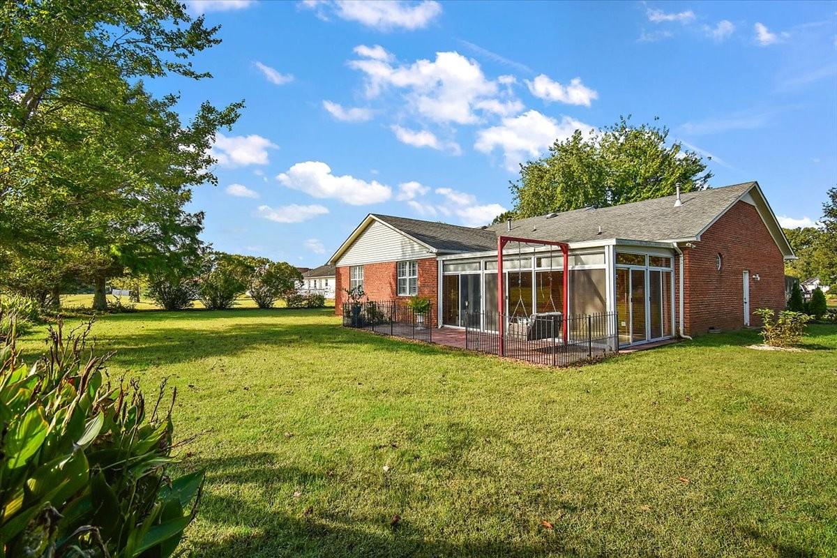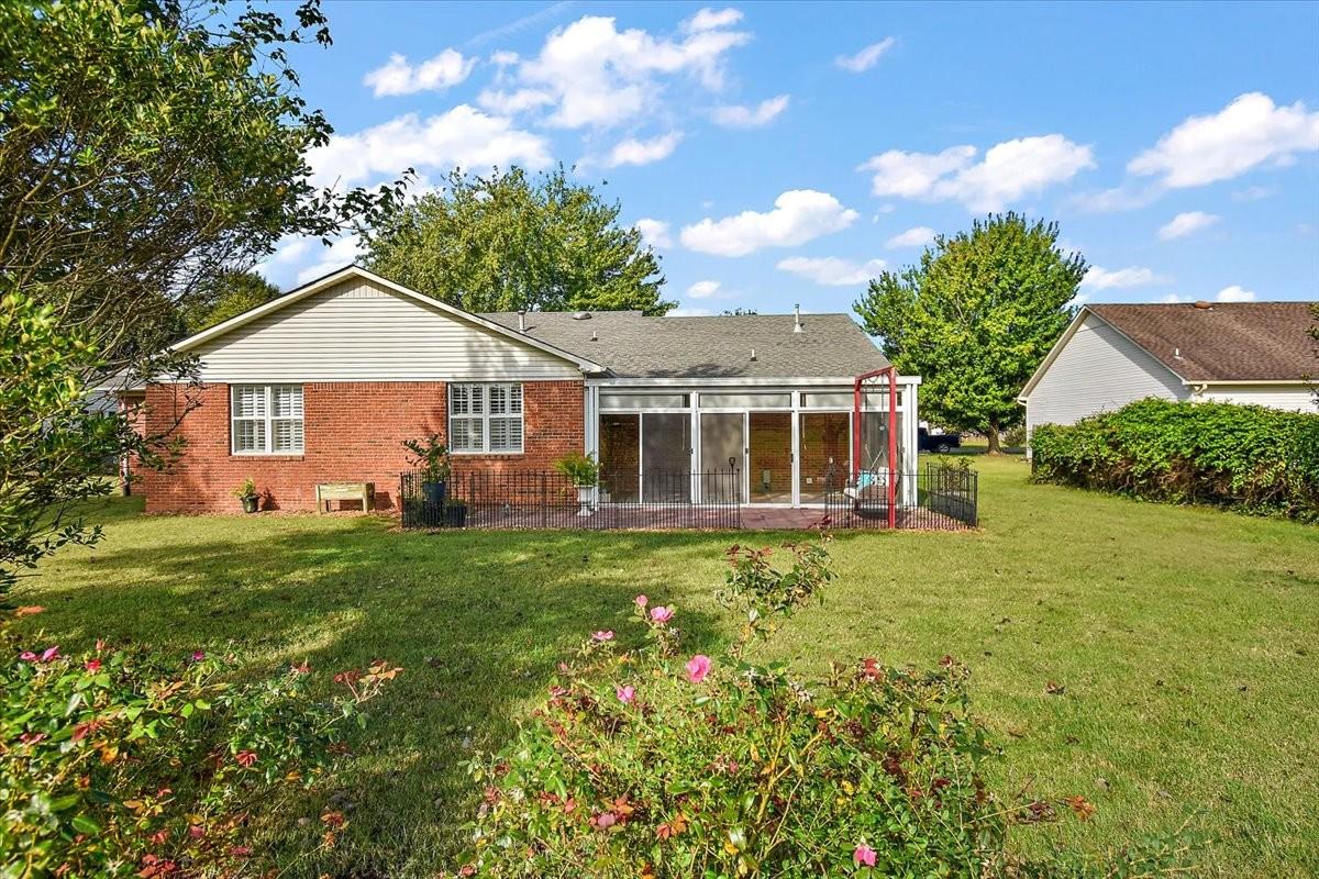 This beautiful home is ready to welcome you! Perfectly located near shopping, dining, and ball fields, it offers the ideal blend of convenience and comfort in a wonderful neighborhood. With 3 bedrooms and 2.5 baths, the thoughtful split floor plan places the spacious primary suite—with its large walk-in shower—on one side, and the additional bedrooms and bath on the other for added privacy. Start your mornings with coffee on the charming front porch, and unwind in the sunroom or large Florida room in the evenings. The kitchen, complete with a roomy pantry, flows seamlessly into the dining area, creating a warm space for family and friends to gather. The inviting family room features an electric fireplace, adding a cozy touch to movie nights or entertaining. Boasting over 2,400 sq. ft. of living space, this home offers plenty of room and storage throughout, plus beautiful plantation shutters, newer windows, and an HVAC unit less than two years old. Don’t miss your chance to own this gem—conveniently less than an hour from Huntsville, AL, and Spring Hill, TN. Call today to schedule your private tour!
