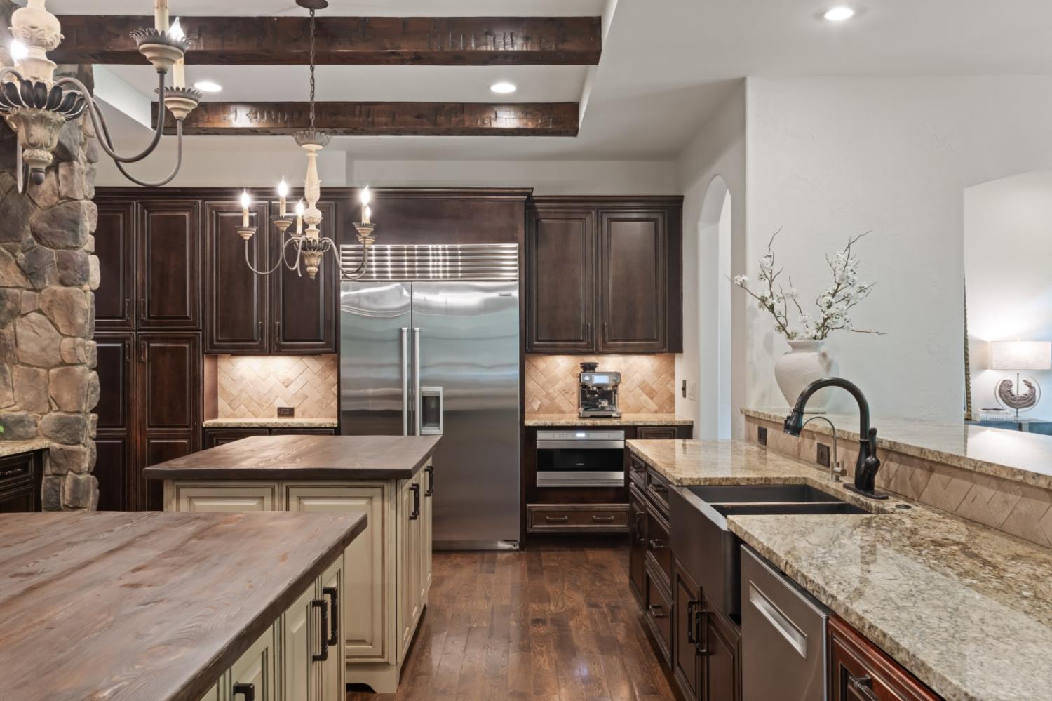 Welcome to 399 The Lady of the Lake—a spacious and well-built home designed for comfort, entertaining, and lasting quality. Set on a solid poured concrete foundation with brick construction, this property offers low-maintenance living with high-end features throughout. The energy-efficient geothermal heating and cooling system adds modern convenience, while the back-filled pool area comes with plans already in place—ready for you to complete when the time is right. Gather your own “knights of the round table” around multiple fireplaces or on the large, multi-level covered patios—perfect for memorable meals, conversation, and connection. The expansive lower-level rec room offers endless possibilities, with access to the patio and future pool area. A laundry chute off the back stairwell is actually an elevator shaft for added convenience. The chef’s kitchen features Subzero and Wolf appliances, a pot filler, prep islands, hidden pantry, and abundant storage—ideal for entertaining or everyday living. A 1,200 sq ft guest or in-law apartment includes a full kitchen, laundry, and ample storage, providing flexible space for visitors or extended family. This home is a perfect blend of function and character, with room for modern living and timeless gatherings. Check out the video too.