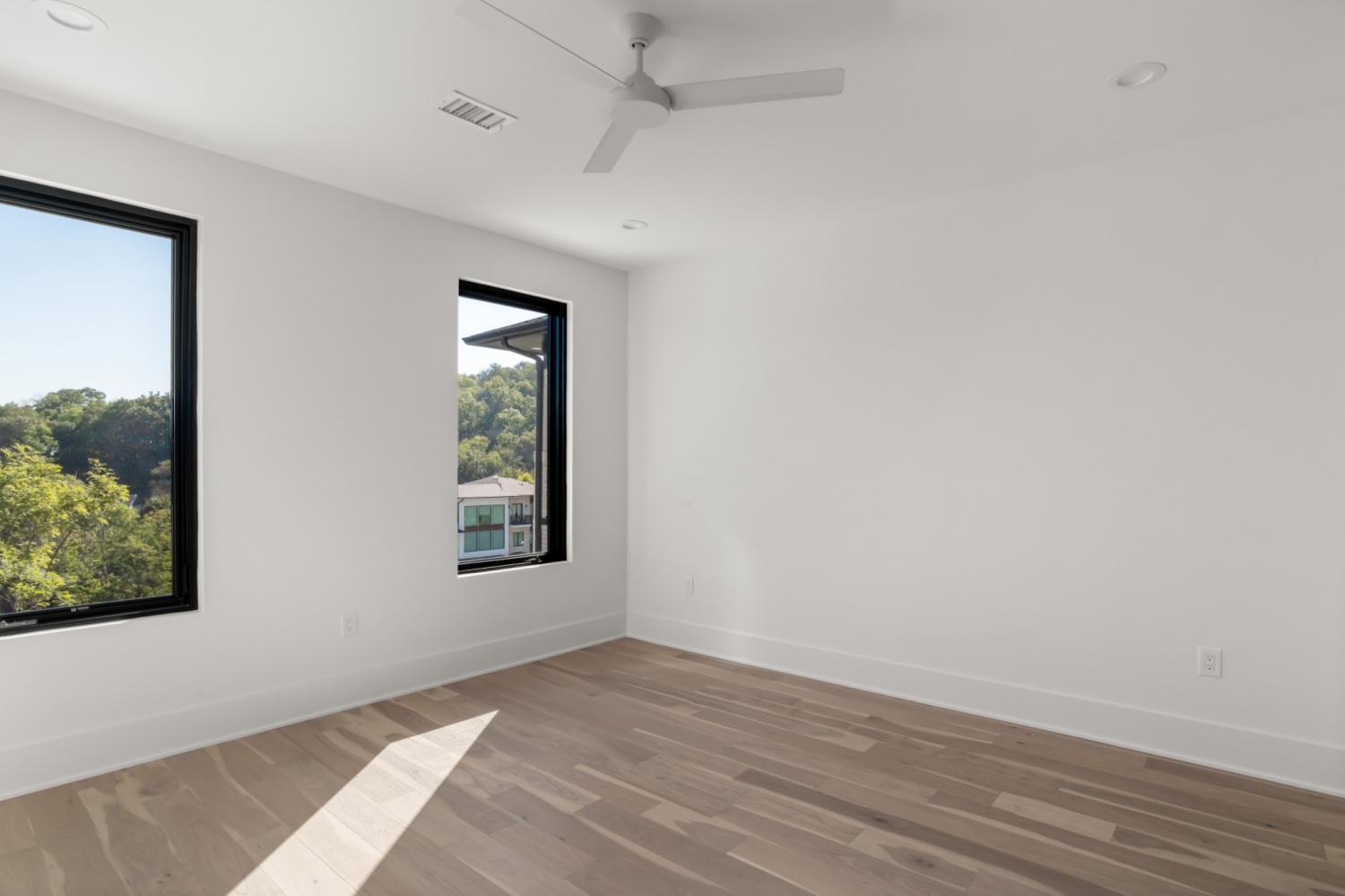 Perched on a hillside with sweeping views that stretch all the way to downtown Nashville, this 2025 new build is a masterclass in modern design with timeless mid-century inspiration. Thoughtfully crafted with custom cabinetry throughout - including panel-ready refrigerator and dishwasher - every inch of the home reflects an uncompromising attention to detail. Clean architectural lines, expansive windows, and a seamless indoor-outdoor flow create a light-filled ambiance across all three levels. Boasting four en suite bedrooms with the primary on the main level, five and a half bathrooms with heated floors in the primary bathroom, an oversized bonus room, dedicated office, and a large fitness space wrapped in windows, the layout is both functional and luxurious. With over 800 square feet of private balconies and a screened in porch, a beautifully designed fireplace that anchors the living room in warmth and style, this impeccably built home offers the flexibility to support every phase of life and adapt with ease from one day to the next - from vibrant entertaining, to family living, to working from home, or hosting guests. Just 15 minutes south of Nashville in an exclusive, limited-availability community, it blends privacy, convenience, and architectural elegance into one extraordinary offering.