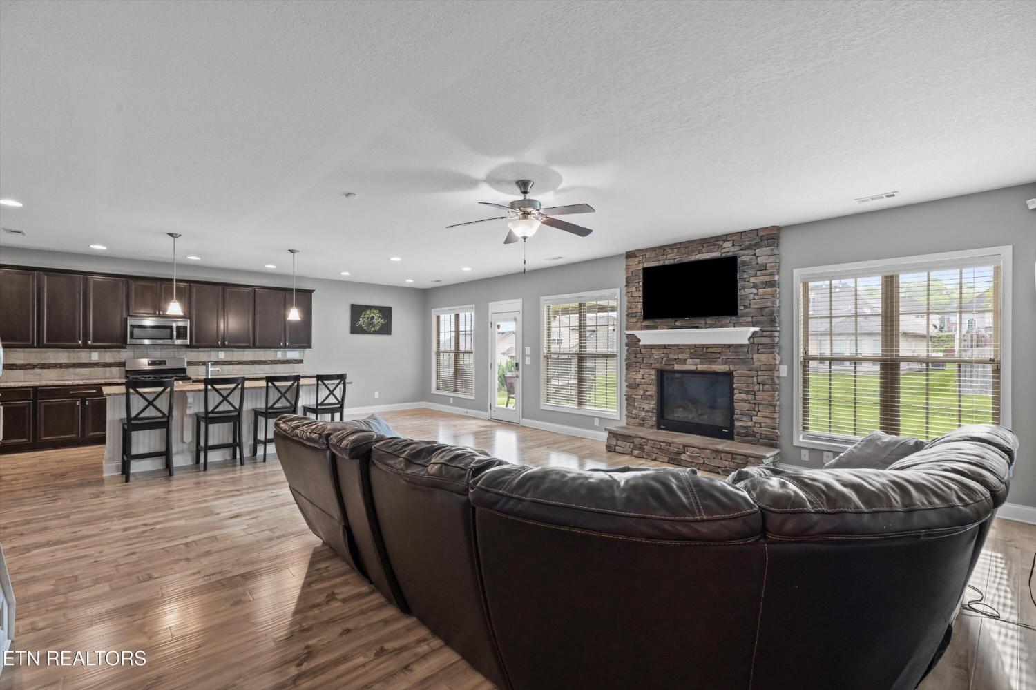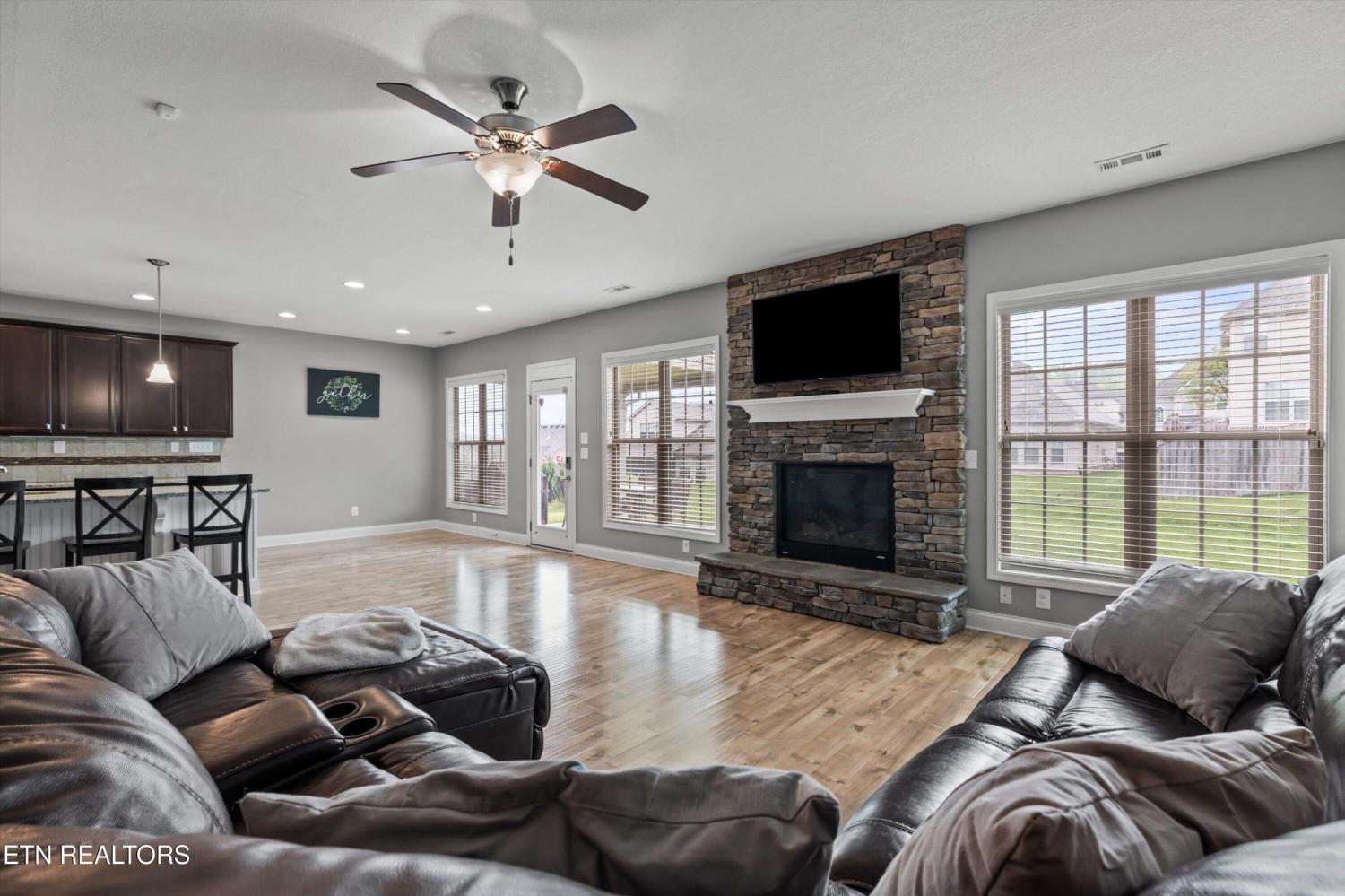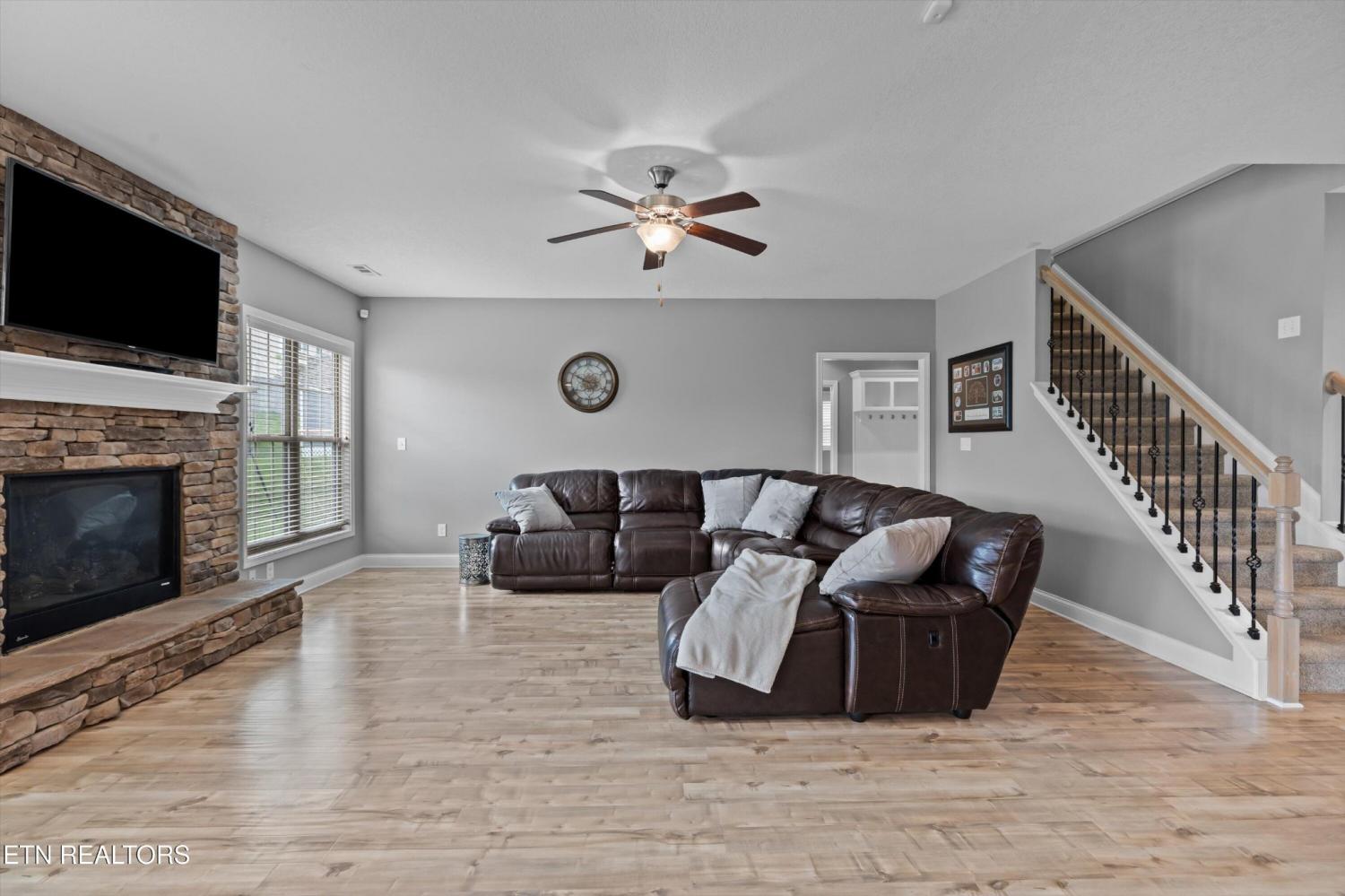 Your opportunity to own this one-owner, 5-bedroom, 4-bathroom home in one of the most desirable neighborhoods in West Knoxville. Perfectly situated on a quiet cul-de-sac, this spacious property offers the perfect blend of comfort, style, and convenience. Inside, you'll find gleaming hardwood floors on the main level, along with a formal dining room designed for memorable gatherings. The chef's kitchen features granite countertops, a gas cooktop, center island, stainless appliances, and a sunny eat-in breakfast area that flows seamlessly into the open-concept living room with a stunning stone fireplace. A main-level bedroom and full bath create the ideal setup for guests or a private home office. Upstairs, retreat to the luxurious owner's suite with a large walk-in closet, tiled shower, and relaxing jacuzzi tub. Three additional bedrooms, two more full baths, a spacious bonus room, and a dedicated laundry room provide plenty of space for the whole family. Step outside to enjoy the covered back patio—perfect for morning coffee or evening entertaining. All of this, just minutes from Turkey Creek shopping & dining, Melton Hill Park, New Hickory Creek Park, and top-rated schools, with easy access to major highways. Don't miss this second chance to make this move-in-ready West Knoxville home yours!