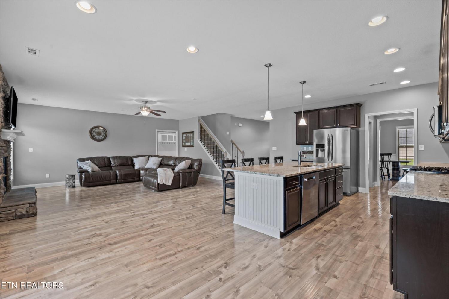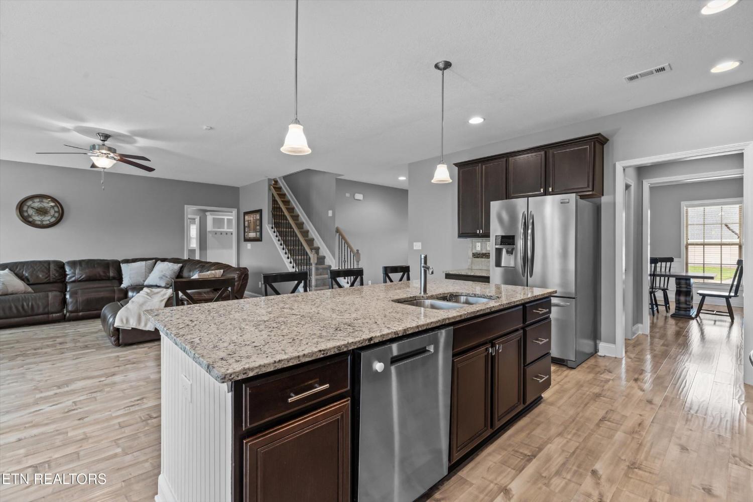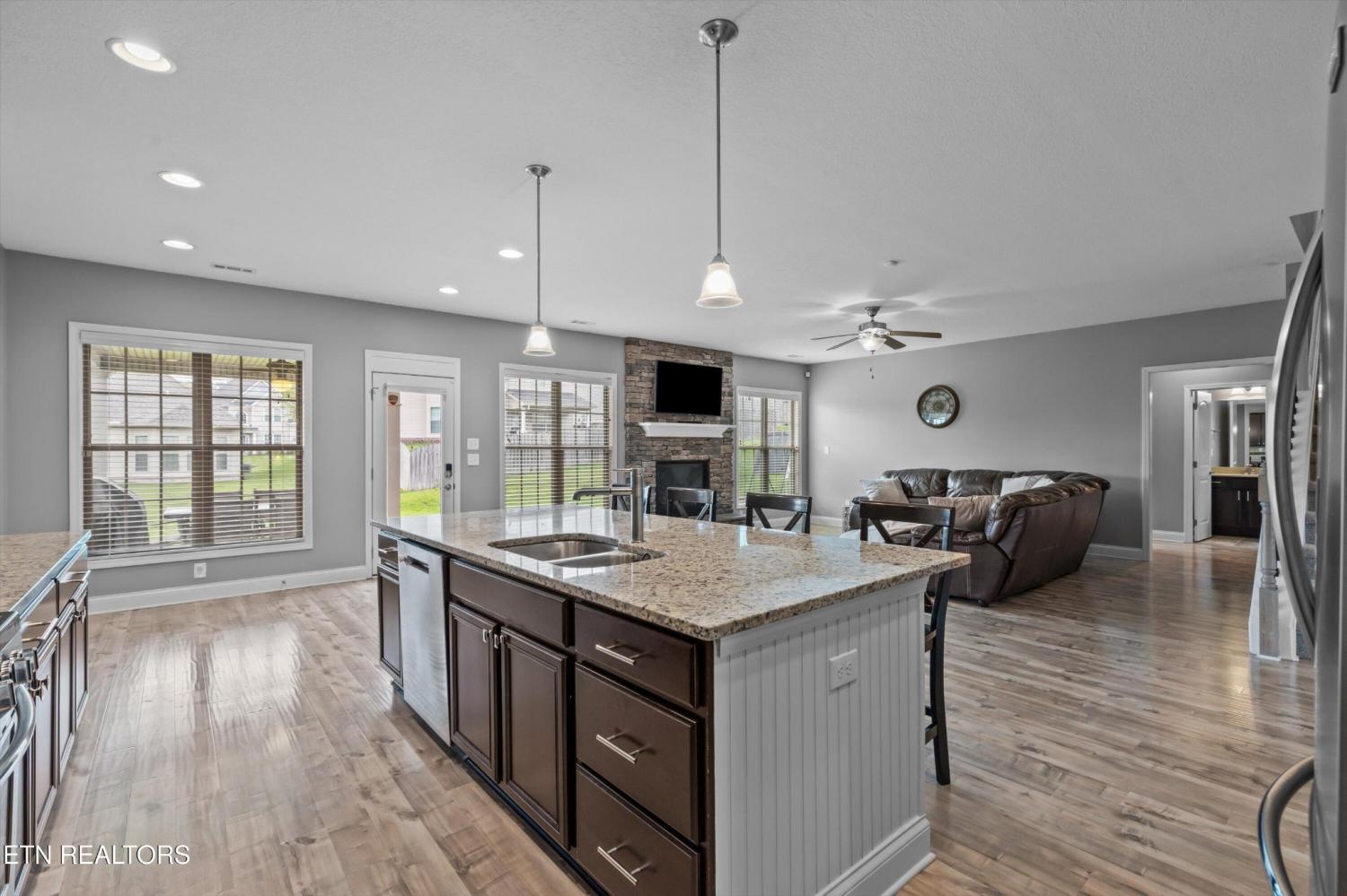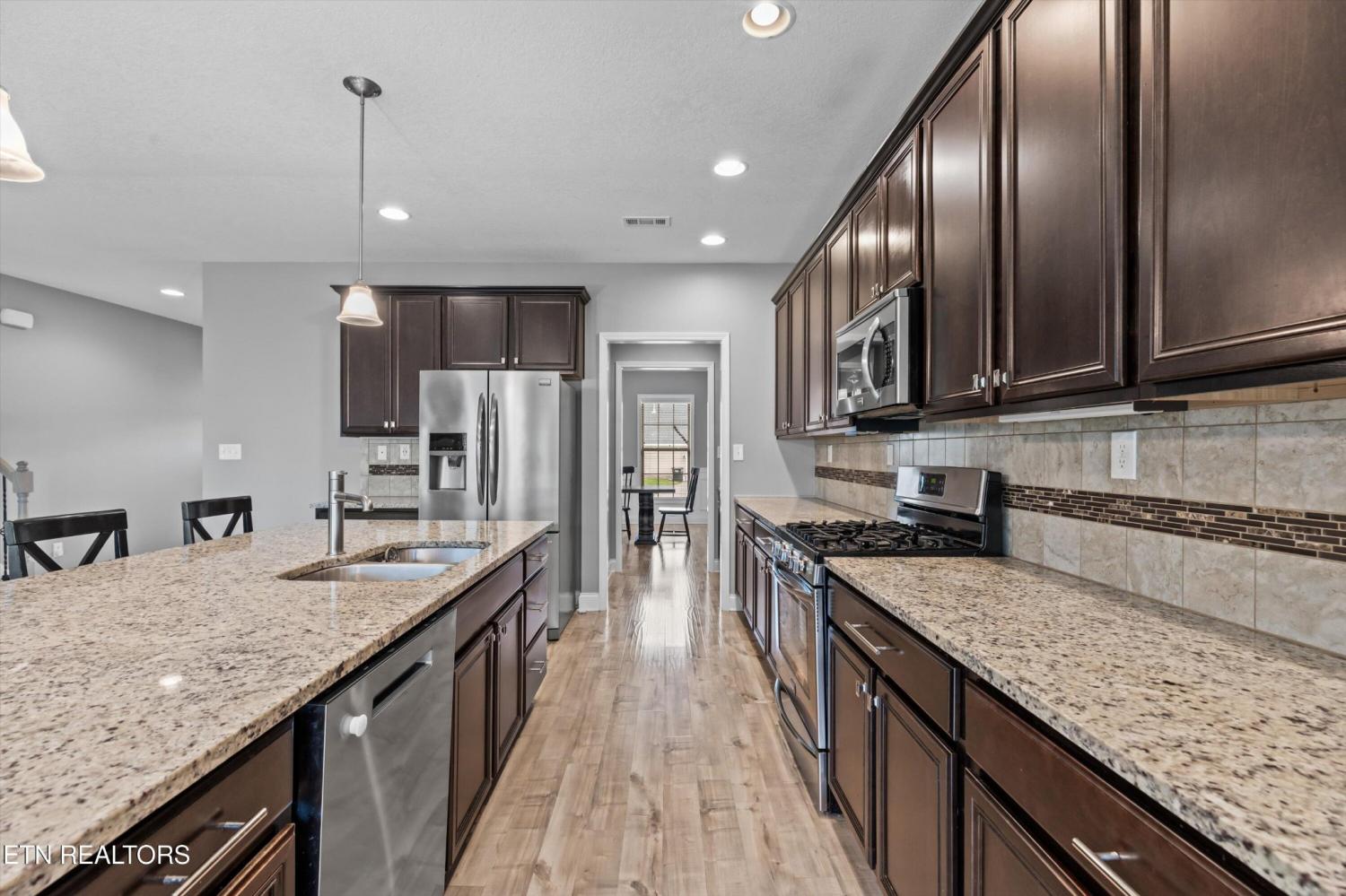 Your opportunity to own this one-owner, 5-bedroom, 4-bathroom home in one of the most desirable neighborhoods in West Knoxville. Perfectly situated on a quiet cul-de-sac, this spacious property offers the perfect blend of comfort, style, and convenience. Inside, you'll find gleaming hardwood floors on the main level, along with a formal dining room designed for memorable gatherings. The chef's kitchen features granite countertops, a gas cooktop, center island, stainless appliances, and a sunny eat-in breakfast area that flows seamlessly into the open-concept living room with a stunning stone fireplace. A main-level bedroom and full bath create the ideal setup for guests or a private home office. Upstairs, retreat to the luxurious owner's suite with a large walk-in closet, tiled shower, and relaxing jacuzzi tub. Three additional bedrooms, two more full baths, a spacious bonus room, and a dedicated laundry room provide plenty of space for the whole family. Step outside to enjoy the covered back patio—perfect for morning coffee or evening entertaining. All of this, just minutes from Turkey Creek shopping & dining, Melton Hill Park, New Hickory Creek Park, and top-rated schools, with easy access to major highways. Don't miss this second chance to make this move-in-ready West Knoxville home yours!