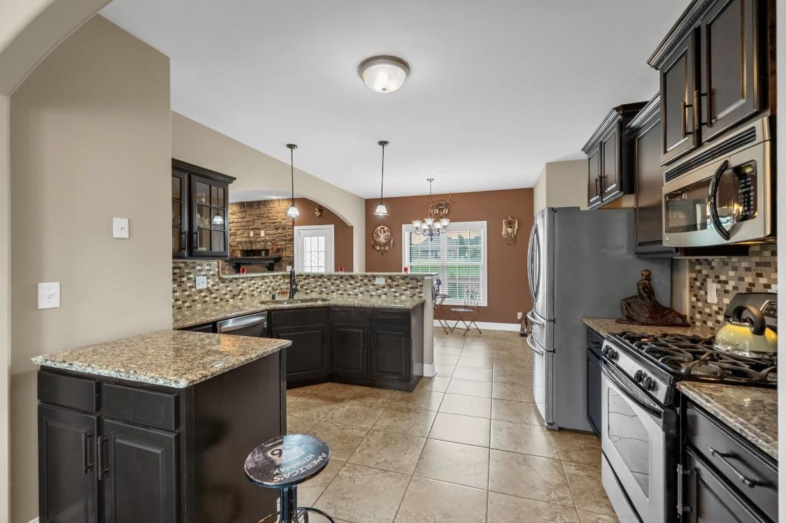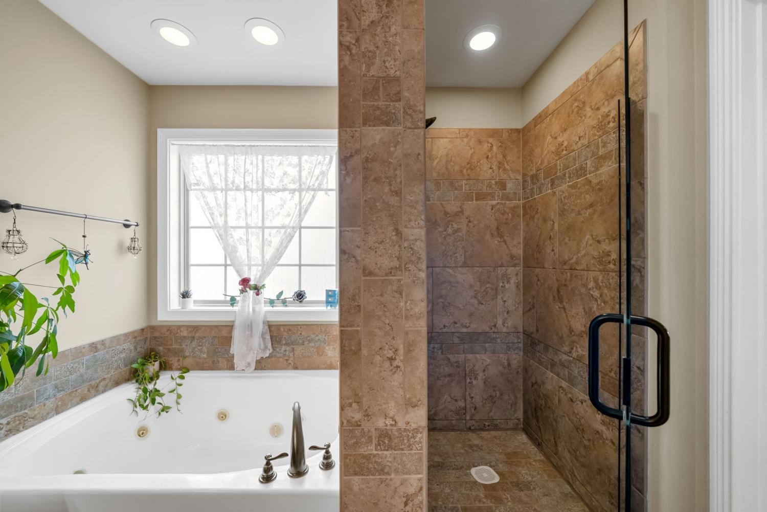 Charming 2-Story Home in Desirable Farmington Subdivision Welcome to this beautiful brick and stone home with vinyl trim, located in the highly sought-after Farmington Subdivision. This 2-story residence offers fantastic curb appeal and a spacious, privacy-fenced backyard complete with a covered deck, side patio, and firepit—perfect for relaxing or entertaining. Inside, you’ll find stunning flooring throughout the main level and a welcoming entry foyer. The partially open floor plan includes a formal dining room just off the kitchen, which flows seamlessly into the bright, airy living area featuring a cozy gas fireplace. The kitchen is equipped with stainless steel appliances and offers plenty of space for cooking and gathering. Upstairs, all bedrooms provide a comfortable retreat, with carpet in the sleeping areas and tile in wet areas. The owner’s suite is a true sanctuary, featuring a unique coved ceiling above the bed area, a separate sitting room, a spacious walk-in closet, and a luxurious en-suite bath with a jacuzzi tub and walk-in shower. This home is clean, comfortable, and filled with natural light—perfect for those seeking warmth, functionality, and charm. A must-see!