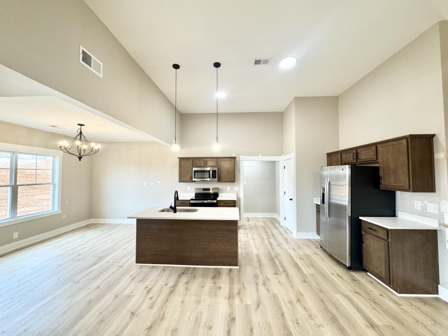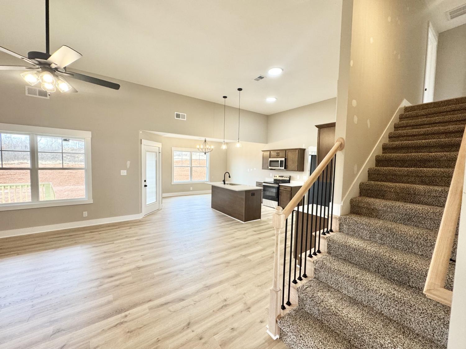 $17,500 in Seller Concessions!! EXAMPLE PHOTOS SHOWN of FINISHED FLOORPLAN. Welcome home to the sought after subdivision of Cardinal Creek! Beautiful, Sleek, New Construction! ~ This gorgeous KERRI Floor Design Offers a large Living Space, flowing conveniently into your Open Kitchen & Dining Space with an abundance of natural light ~ Gorgeous Laminate Flooring, Granite, and Sleek finishing touches ~ Primary Bedroom & Double-Vanity Full Bath located on main level for added privacy. On the second level you will find a full bath and additional two guest bedrooms ~ One featuring large windows and XL walk-in closet. Right across the hall is the PERFECT Recreation Area (that you may want to use as a 4th Bedroom! Room has closet, no window). Covered Porch & Back Deck perfect for relaxing! ~ Epoxy Garage ~ Builder is offering $17,500 in Seller Concessions to assist with Closing Costs, Buy Down Rate, Refrigerator, Fencing, etc Enjoy your covered deck overlooking your fully-sodded yard. Utility Room also included! Located conveniently near Fort Campbell, Austin Peay State University, Downtown Clarksville, Interstate 24, Schools, and Shopping!