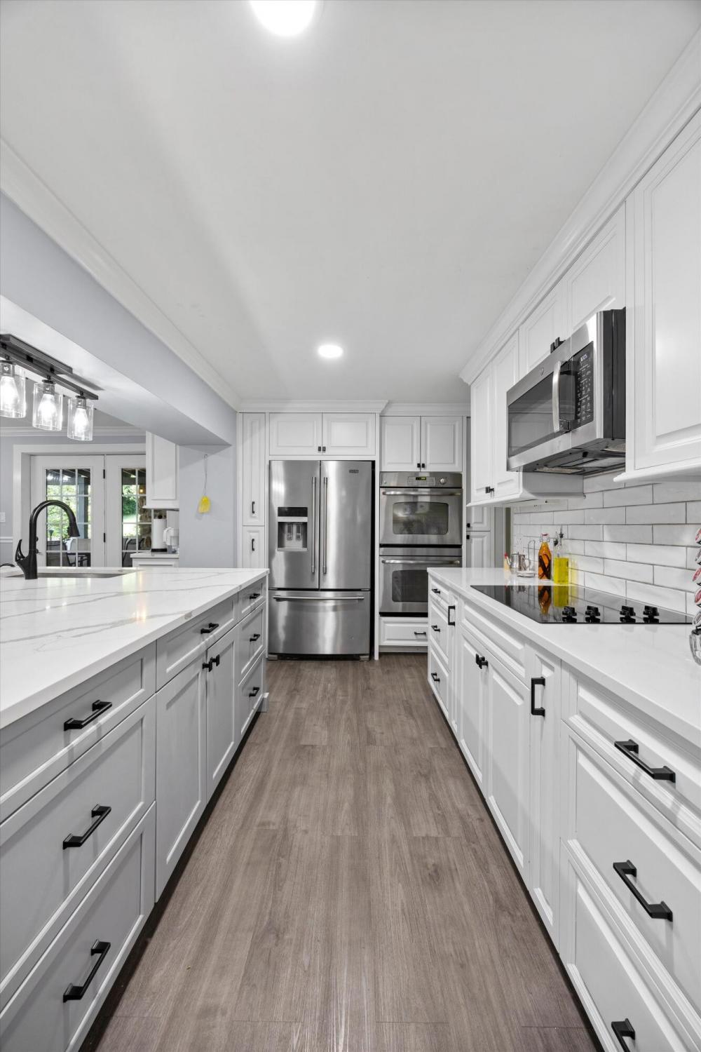 This stunning 5-bedroom, 3.5-bath home offers over-the-top functionality and comfort, perfect for families or multi-generational living. The heart of the home is a large kitchen with an eat-in area, expansive quartz countertops, two full-size pantries, and a dedicated dining area?ideal for gatherings of all sizes. The main living room features a cozy fireplace, while upstairs you'll find a second living space and a separate office or flex room. Dual staircases provide easy access between levels, enhancing flow and convenience. The oversized laundry room, two-car garage with extra space for storage or woodworking, and thoughtfully designed layout make daily life effortless. Step outside to an open covered back porch complete with a fireplace, gas grill, and Blackstone griddle?perfect for year-round entertaining. With space, comfort, and thoughtful touches throughout, this home is truly one you need to see in person.