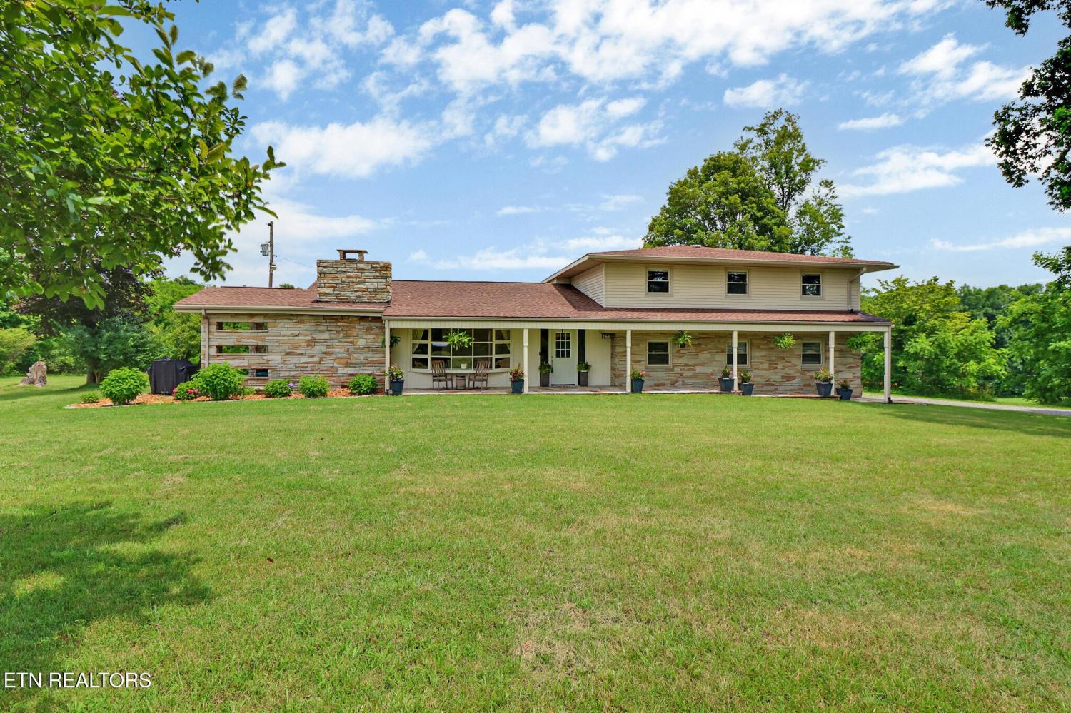 Historic Stone Farmhouse on 7.8 Acres in Crossville, TN. Originally built by the U.S. Army on a 250-acre estate, this 5-bedroom, 3-bath stone farmhouse sits on 7.8 serene acres with seasonal mountain views and a rich local history. Thoughtfully renovated, the home blends timeless charm with modern upgrades—original hardwood floors, renovated tile bathrooms, shiplap accents, and a grand stone fireplace. The kitchen features stainless appliances, leathered granite, and updated systems throughout, including two tankless water heaters. Enjoy stargazing by the outdoor stove or watching wildlife from the expansive patio. A 28x 40 pole barn comes with this property as well as approx. 430 feet of raised garden beds. Located on a quiet dead-end road with long frontage, this property offers privacy, character, and convenience—just minutes from Crossville's golf courses, state parks, and cultural attractions. A rare opportunity to own a piece of local history with modern comfort. *Listed without barn and raised garden beds with 5.6 ac - MLS #1307160.