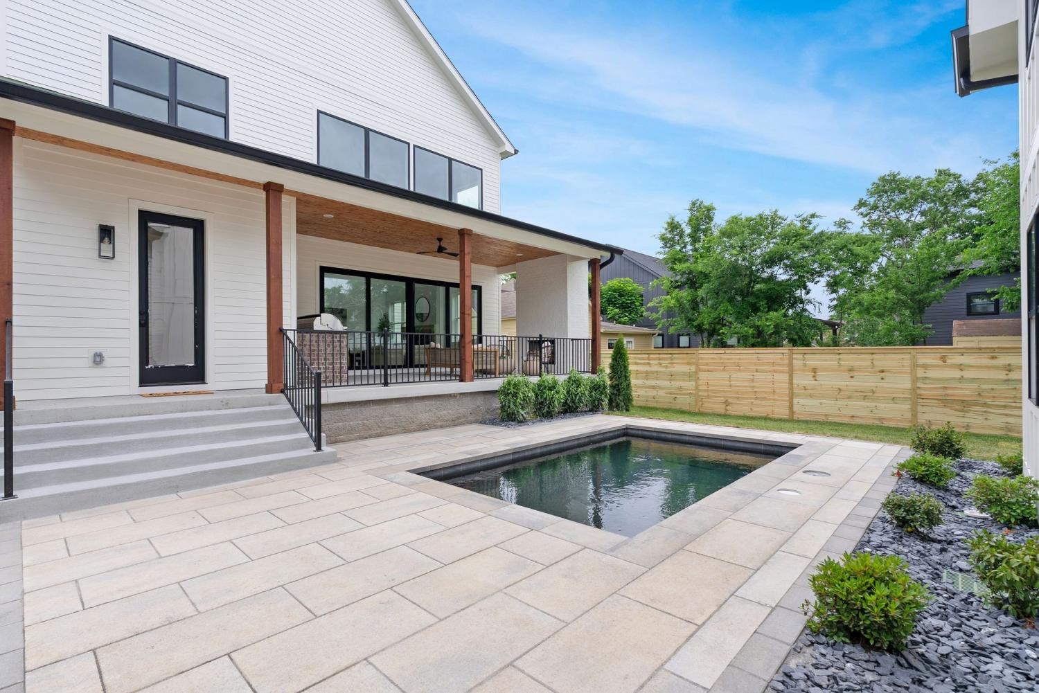 Experience refined living in this beautifully crafted new construction by Jackson Builders, thoughtfully designed by Amber Pierce Design and nestled in the heart of Sylvan Heights. Bathed in natural light, the open floor plan showcases soaring ceilings, a striking statement staircase, and designer lighting throughout. The chef’s kitchen features top-tier finishes, a wet bar with an ice maker and beverage fridge, and flows seamlessly into a flexible office or cozy sitting room. Step outside to a spacious covered back porch made for entertaining, complete with a built-in grill, fireplace, and wet bar, all overlooking the sparkling saltwater pool. The main-level primary suite is a true retreat, featuring high ceilings, a spa-like bath, and a walk-in closet with built-in washer and dryer hookups for added convenience. Upstairs offers a generous bonus room plus three additional bedrooms, each with its own ensuite bath. The detached two-car garage with epoxy floors includes 700 square feet of unfinished space above, offering endless potential for a home gym, private guest suite, or income-producing rental. The fully fenced backyard is pet-ready. One-year builder warranty included.