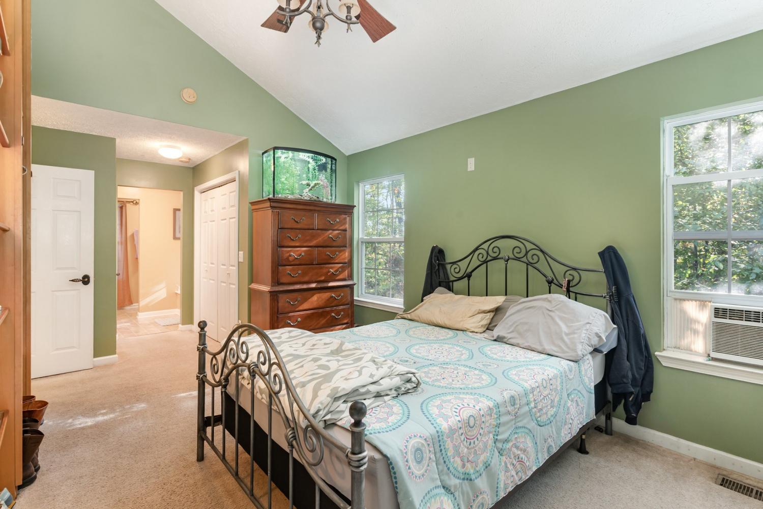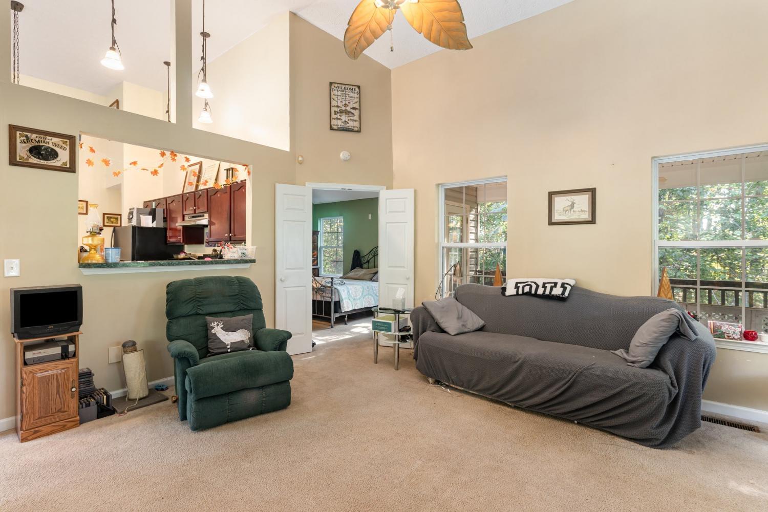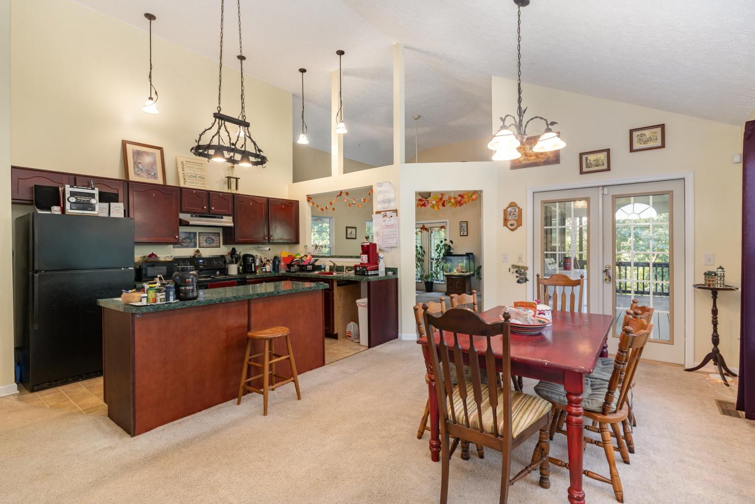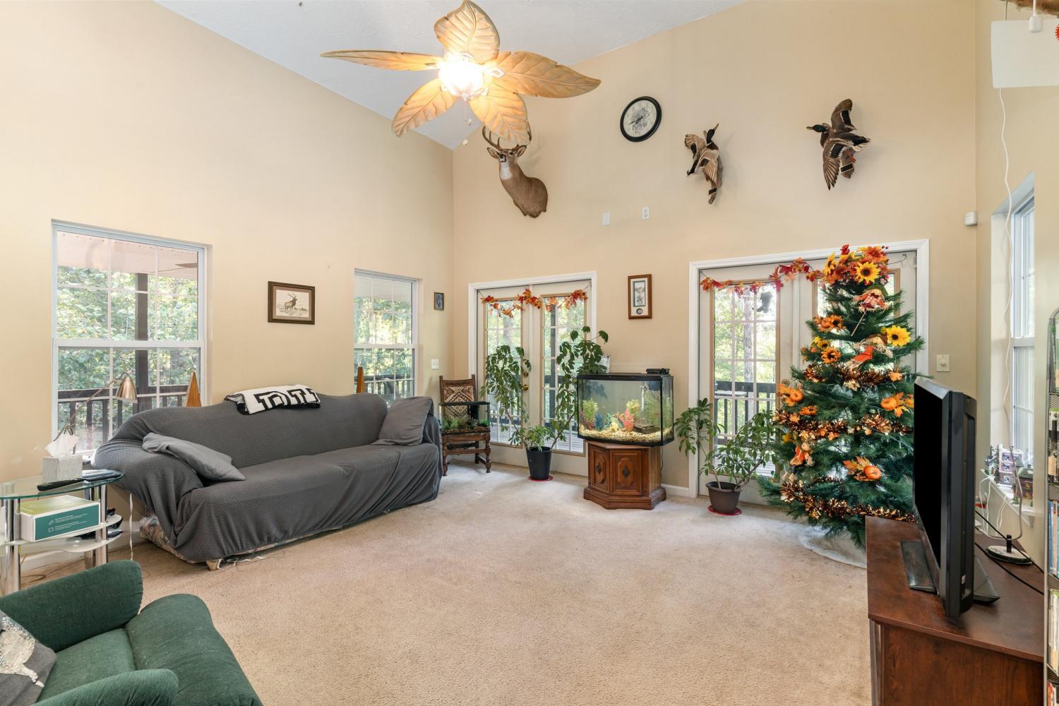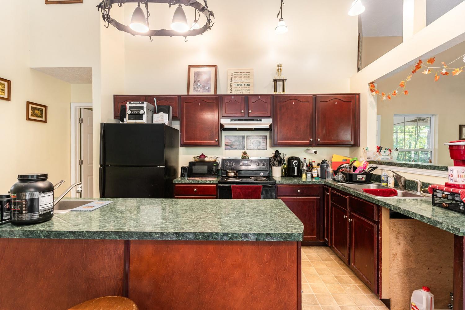 Welcome to your peaceful retreat surrounded by nature! This beautifully maintained contemporary-style home sits on a wooded lot that offers both privacy and shade with mature trees perfectly spaced between neighbors. The inviting wraparound porch extends your living space outdoors, ideal for relaxing or entertaining while enjoying the tranquil setting. Inside, you’ll find tall vaulted ceilings and an open floor plan that create a bright, airy feel. The home was completely remodeled in 2011 (interior only) and has been thoughtfully cared for ever since. The kitchen comes fully equipped with all appliances, and the washer and dryer remain as well—making this home truly move-in ready. Outside, the property features beautiful landscaping and a detached 2-car garage, plus plenty of parking space for guests or even a 30-foot camper. The lot is easy to maintain, with just the right balance of lawn and trees. Conveniently located only 55 minutes from Nashville and just 18 minutes from Dickson’s shopping and restaurants, this home offers the perfect blend of privacy and accessibility.