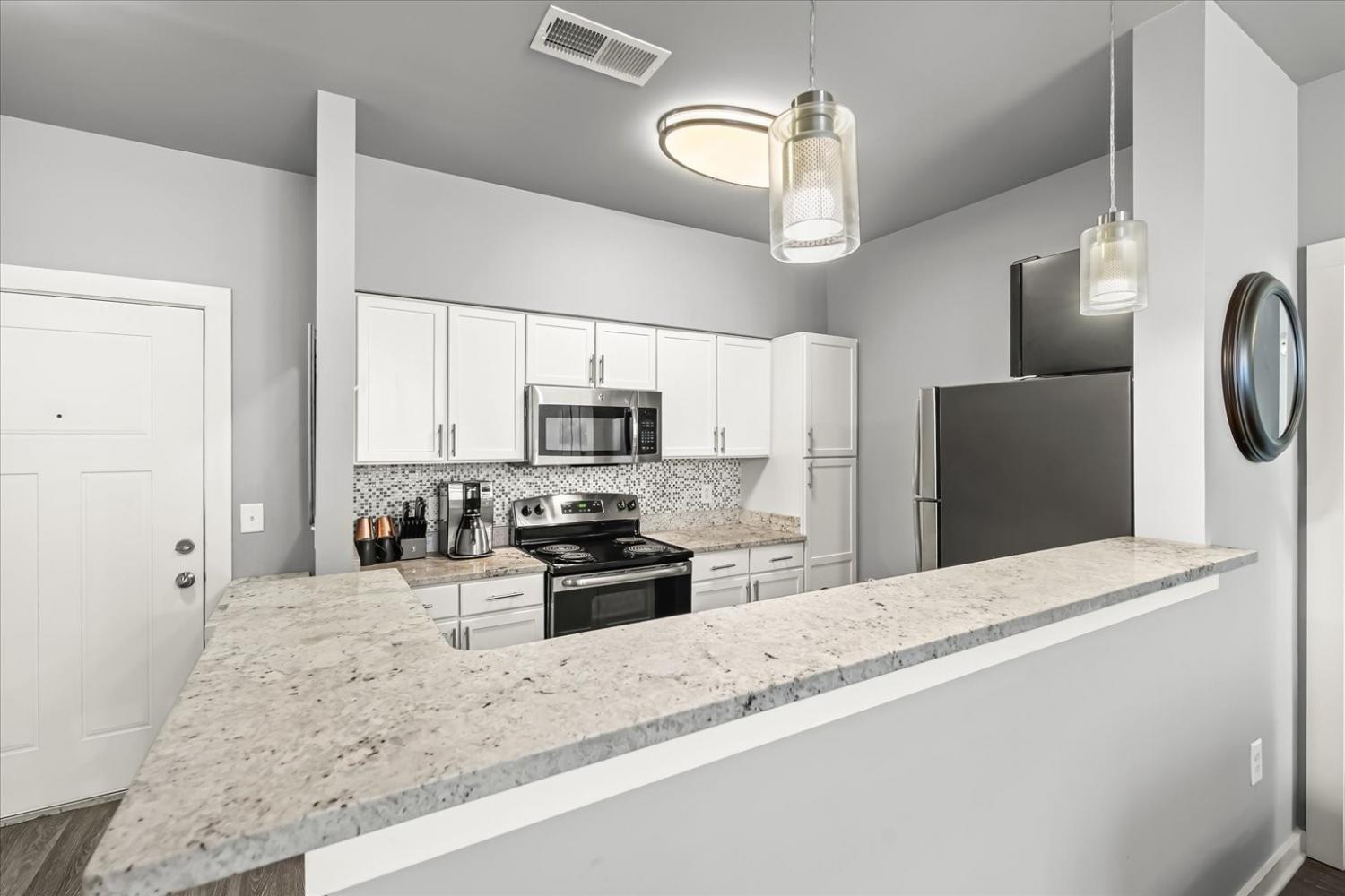 Welcome to 414 Rosedale Avenue, Unit 301 — a stylish corner unit that combines modern design, natural light, and everyday comfort. This beautifully maintained condo features an open floor plan, contemporary finishes, and a warm, inviting atmosphere throughout. With a new price adjustment, this home is now even better positioned in the market — offering exceptional value in one of Nashville’s most convenient and desirable locations. With two spacious bedrooms and two full bathrooms, you'll have plenty of room to unwind. The primary bedroom and secondary bedroom both have a private bathroom and a walk-in closet, offering plenty of storage.The open kitchen is a highlight, featuring granite countertops, a convenient breakfast bar, and stainless steel appliances. Kick back in the living area with its LVP floors, and enjoy the convenience of having your own washer and dryer. Central AC and electric heating keep the temperature just right, no matter the season. The standout furnishings are optional and add a unique flair to this space, making it truly special. King bed, Full bed, leather sectional, two mounted TVs, and kitchen equipped with pots and pans, dishes, glasses, cups and a variety of small appliances and wine fridge. Enjoy access to awesome amenities, including a pool, gym, resident's lounge, and a barbecue area perfect for weekend hangouts. Located in a friendly lowrise building, this home offers both privacy and a sense of community. Experience the best of Nashville living in a home that's all about style and ease! Close to Geodis Park and easy access to 40/24.