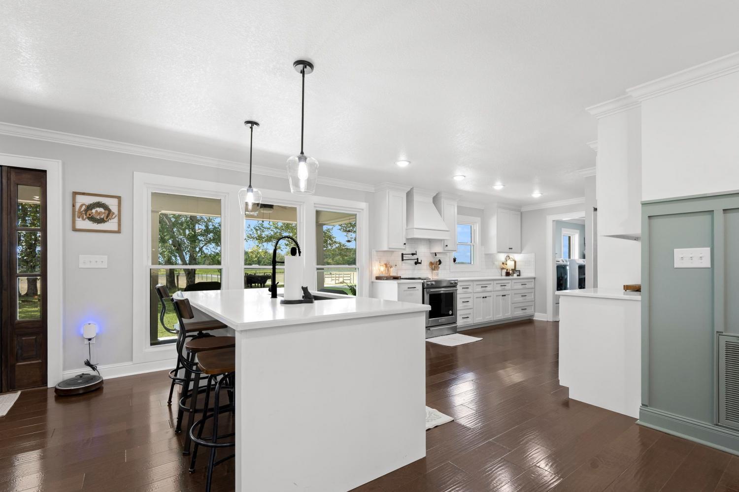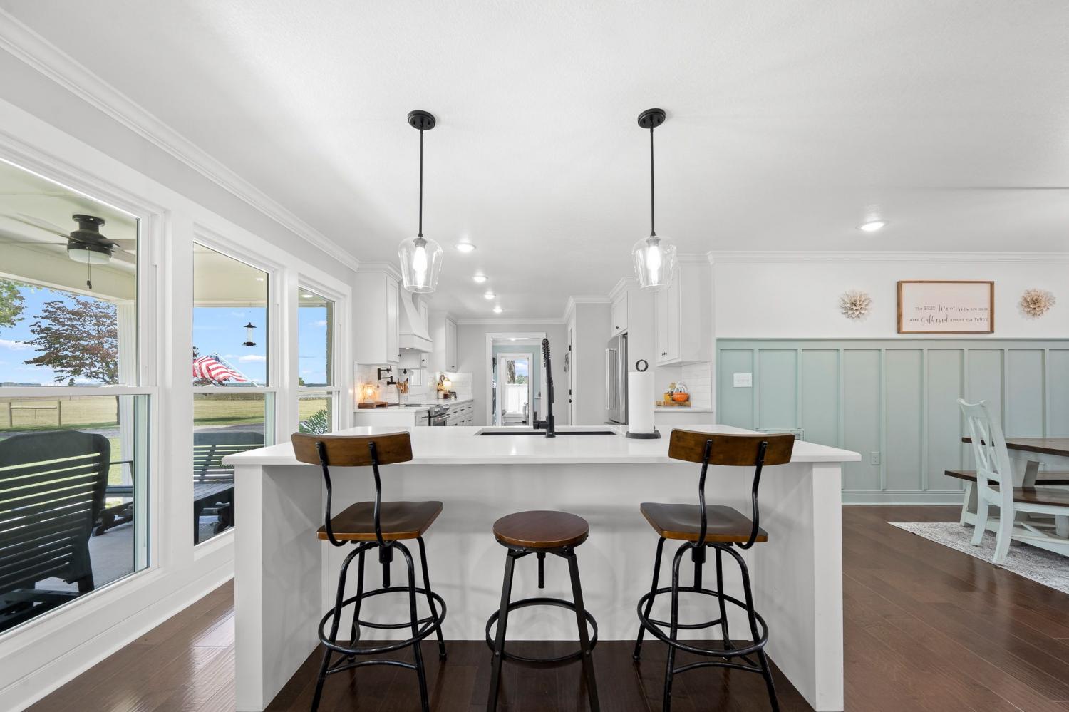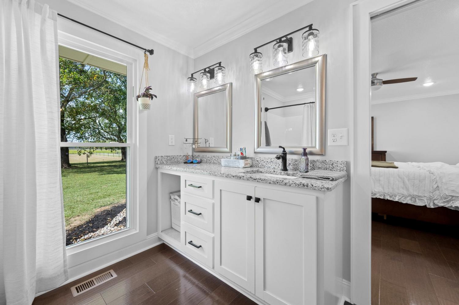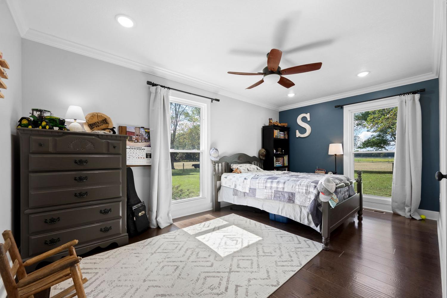 This completely remodeled 3 bedroom, 2 bath brick home sits on 42 acres of stunning countryside. The property features a 40x60 pole barn with a 20-foot lean-to, perfect for equipment, livestock, or storage. Land is fenced and cross-fenced, offering excellent potential for horses, cattle, or farming. Inside, you’ll love the granite and quartz countertops, hardwood floors, and a cozy gas fireplace. The roof is less than one year old, giving you peace of mind for years to come. The home is on county water, with an additional well on the property. This property blends modern comfort with endless outdoor possibilities—an ideal spot for a mini-farm, homestead, or private retreat.