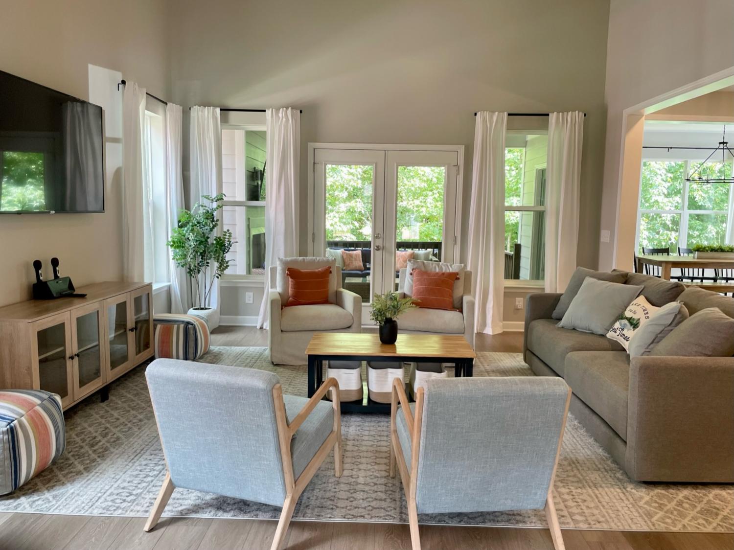 Beautifully Furnished home. Lake community with access trail to neighboring marina. Owner bedroom downstairs with 2 extra bedrooms and a loft upstairs. Enjoy an outdoor fireplace in your screened in porch.