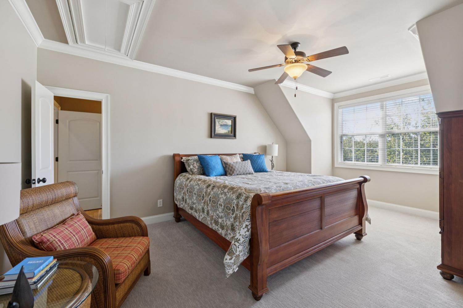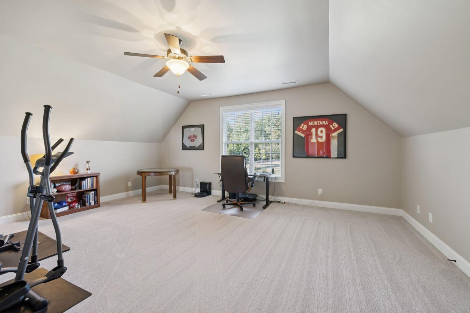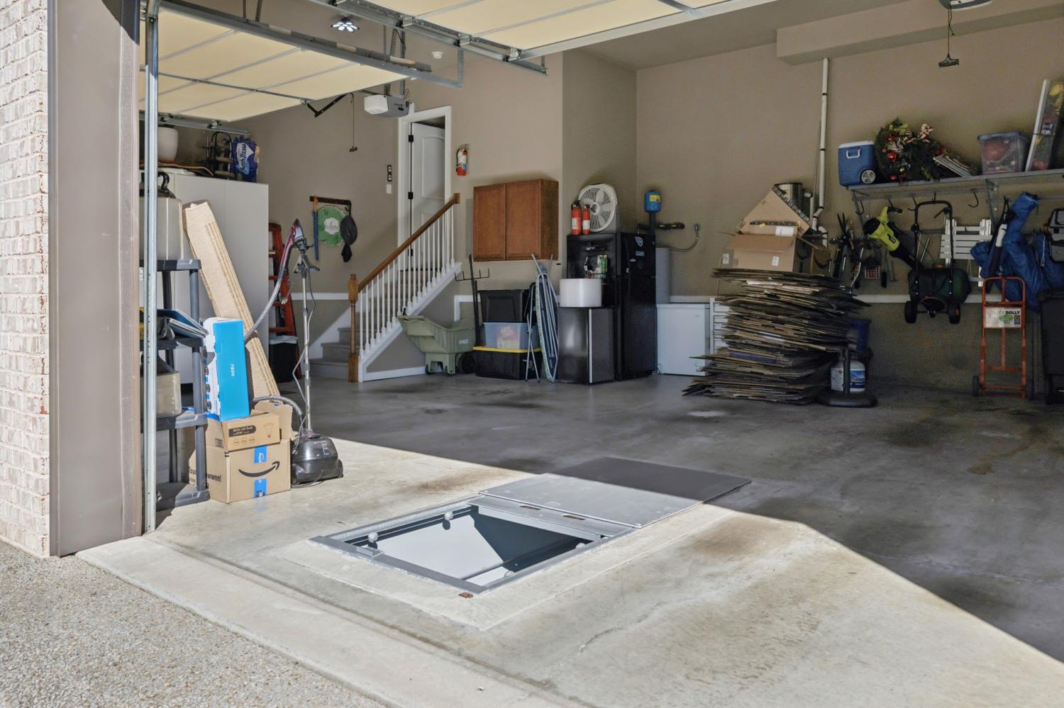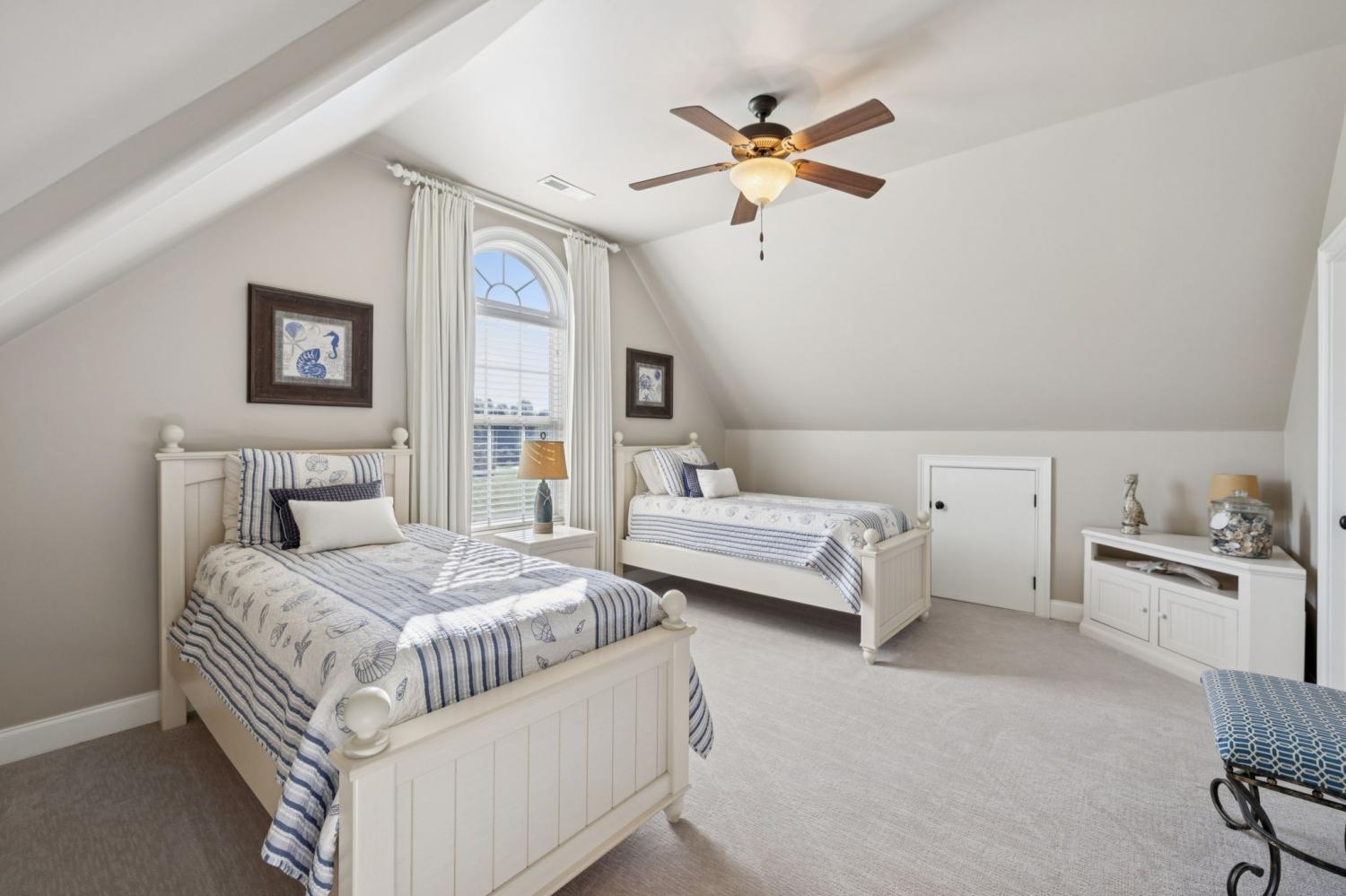Experience timeless elegance in this exquisite French Country estate offering 3861 sq. ft. of refined living. Thoughtfully designed with 4 bedrooms and 3.5 baths, this residence blends architectural beauty with modern sophistication. The first-floor primary suite is a private retreat with a spa-inspired ensuite. A dedicated space for a home office offers the perfect work-from-home sanctuary. The heart of the home features soaring spaces, a warm fireplace, gleaming hardwood floors, and plantation shutters throughout the main level. The gourmet kitchen is designed for both culinary artistry and entertaining, with granite countertops, double ovens, and custom finishes. Upstairs, a media room and expansive bonus room provide the ultimate spaces for leisure and entertainment. An oversized three-car garage is a luxury in itself, offering built-in cabinetry, heavy-duty shelving, a storm shelter, and an RV plug outside for convenience. Additional high-end features include a central vacuum system and a whole-home circuit breaker designed to protect valuable electronics. Outdoors, sophistication continues with a screened patio and fireplace overlooking the property, as well as an inviting courtyard-style patio with pergola and tranquil water features—perfect for gatherings or quiet evenings. Blending European-inspired architecture with modern amenities, this remarkable residence offers a lifestyle of luxury, comfort, and peace of mind.