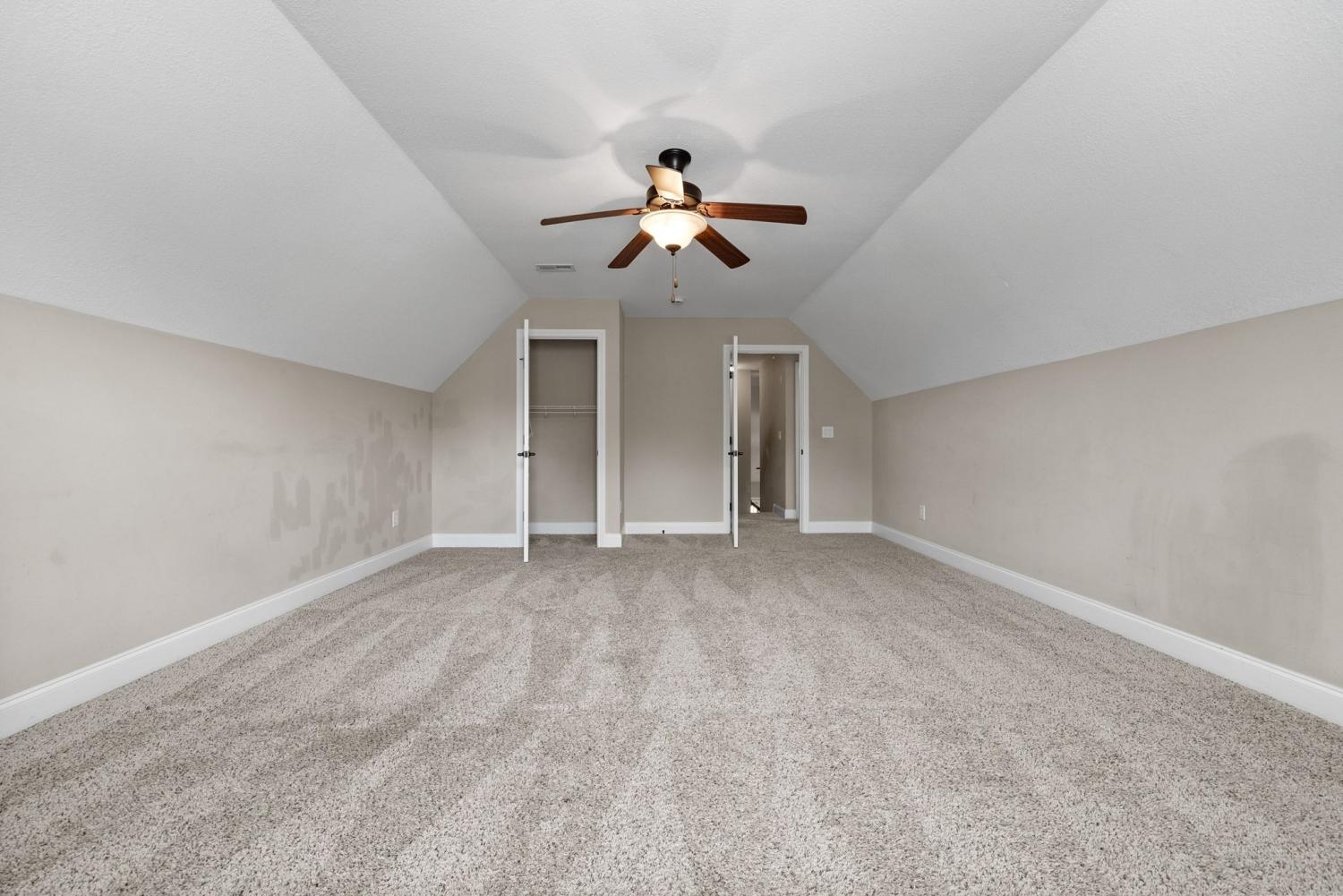 Beautiful and spacious 4 bedrooms + Bonus room in Ellington Gait subdivision! Step onto the cozy front porch and into the large formal entryway. Gorgeous flooring flows throughout the entry and living room with vaulted ceiling that leads into a gourmet kitchen with tile floors. The gourmet kitchen features a large eat-in area and stainless-steel appliances. The oversized primary suite with tray ceiling is located on the main level. The primary bathroom features separate tub and shower, double vanity and walk-in closet. An additional bedroom, laundry room and full bathroom complete the main level. Head upstairs for two large bedrooms with walk-in closets, the third full bathroom and bonus room. Relax on the covered back patio and additional brick patio area. Back yard is fully fenced in for added privacy.