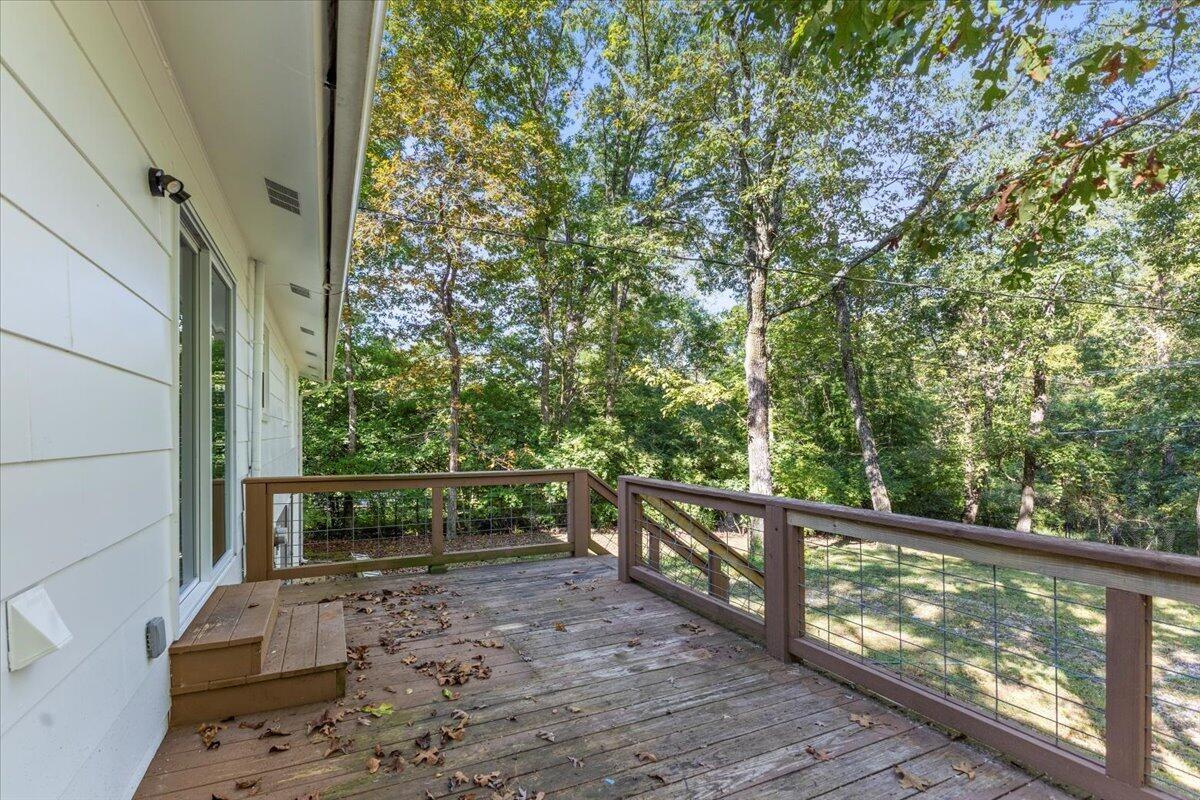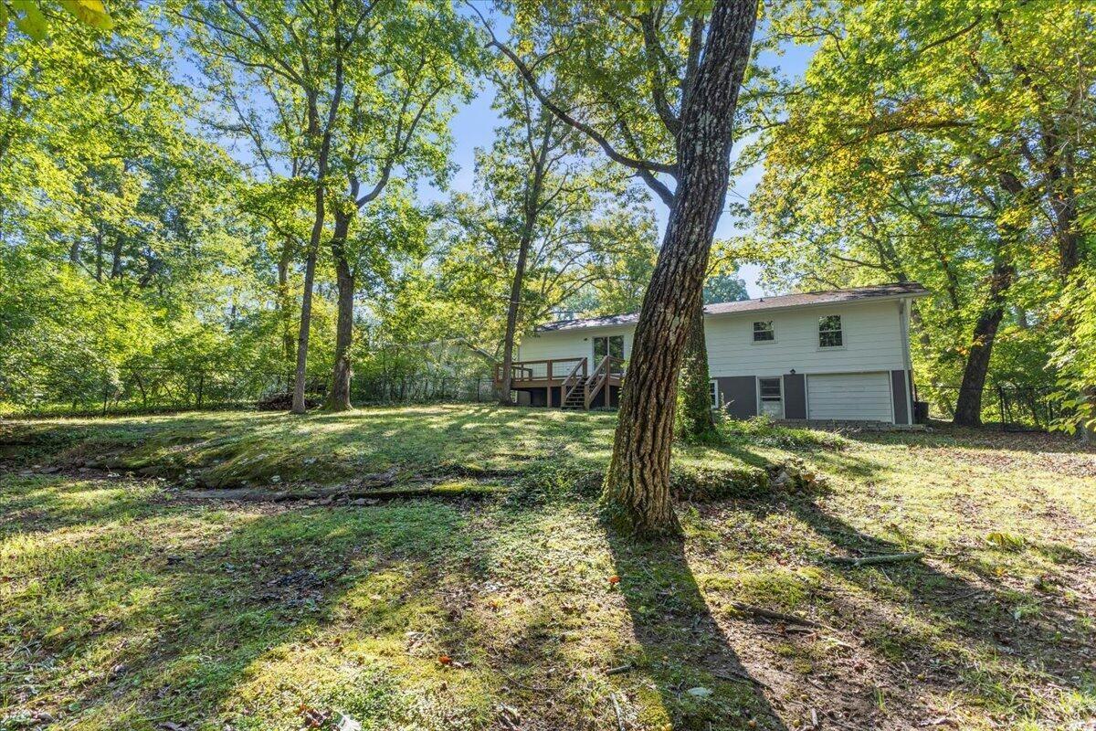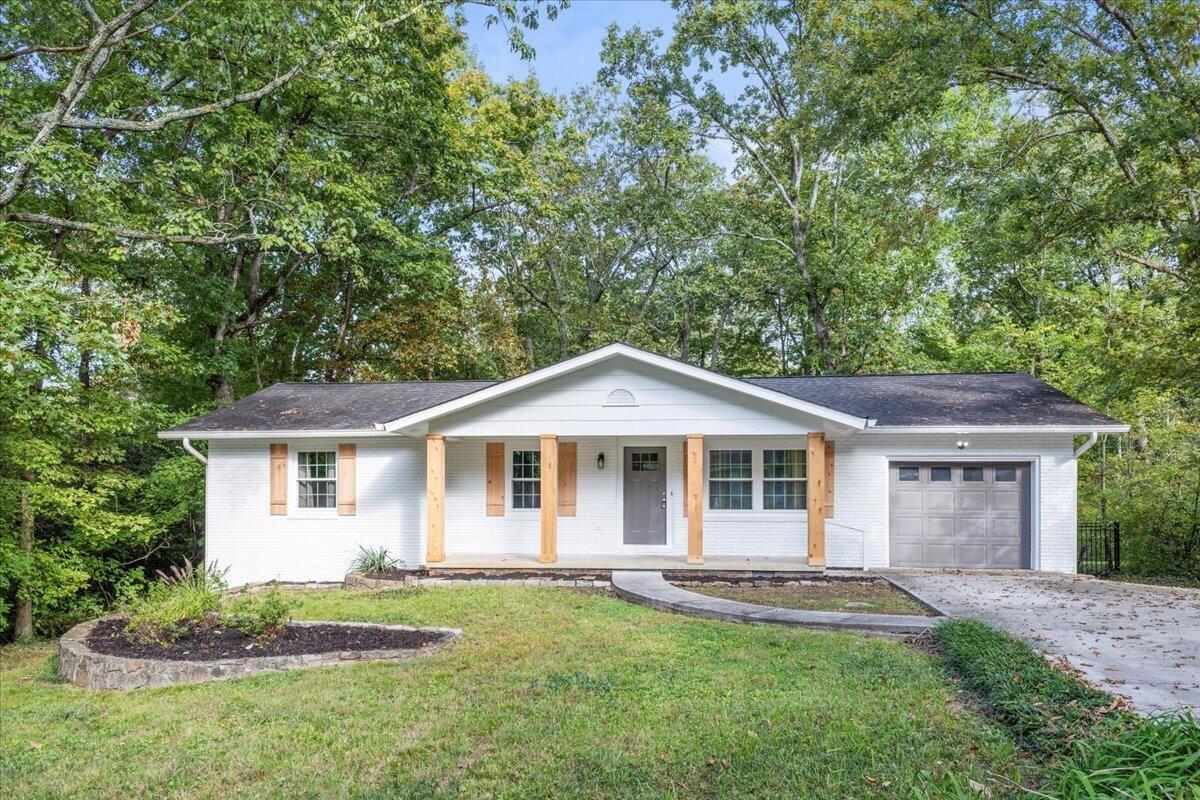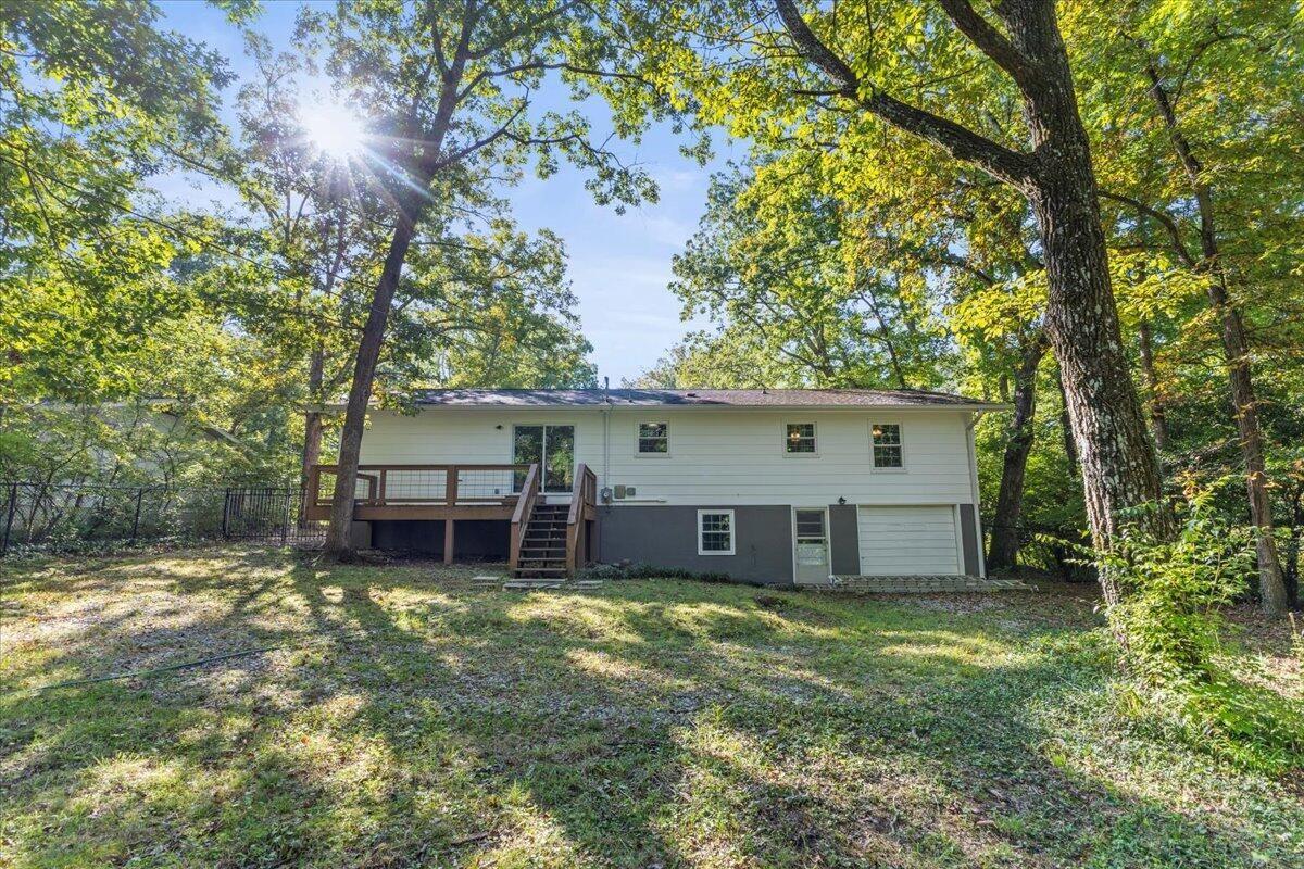 Beautifully Updated and Move-In Ready on Signal Mountain! This charming one-level home has been thoughtfully refreshed inside and out with new interior and exterior paint, updated lighting, and brand-new appliances. Step inside to an open floor plan with hardwood flooring throughout and a bright, welcoming kitchen featuring newer cabinets, granite countertops, a tiled backsplash, and stainless steel appliances—including a brand-new refrigerator. Additional upgrades include newer vinyl windows, interior and exterior doors, plus crown molding and trim, making this home truly move-in ready. The spacious primary suite boasts a stylishly updated bath with a tiled shower, modern vanity, and upgraded lighting. Two additional bedrooms with generous closet space share a second full bath complete with updated tile, vanity, and fixtures. A large laundry/mudroom with built-in cabinetry and a bench landing area offers both function and charm, conveniently connecting to the upper-level single garage. The full unfinished basement, complete with a rear garage door, provides endless possibilities—ideal for storage, a workshop, or potential future expansion. Outside, relax on the oversized back deck overlooking a large, fenced yard with plenty of privacy. The lot extends beyond the fence line, giving you even more outdoor space to enjoy.