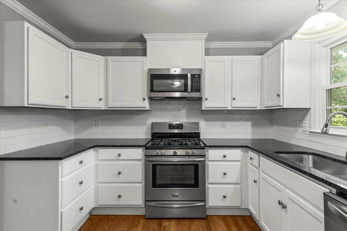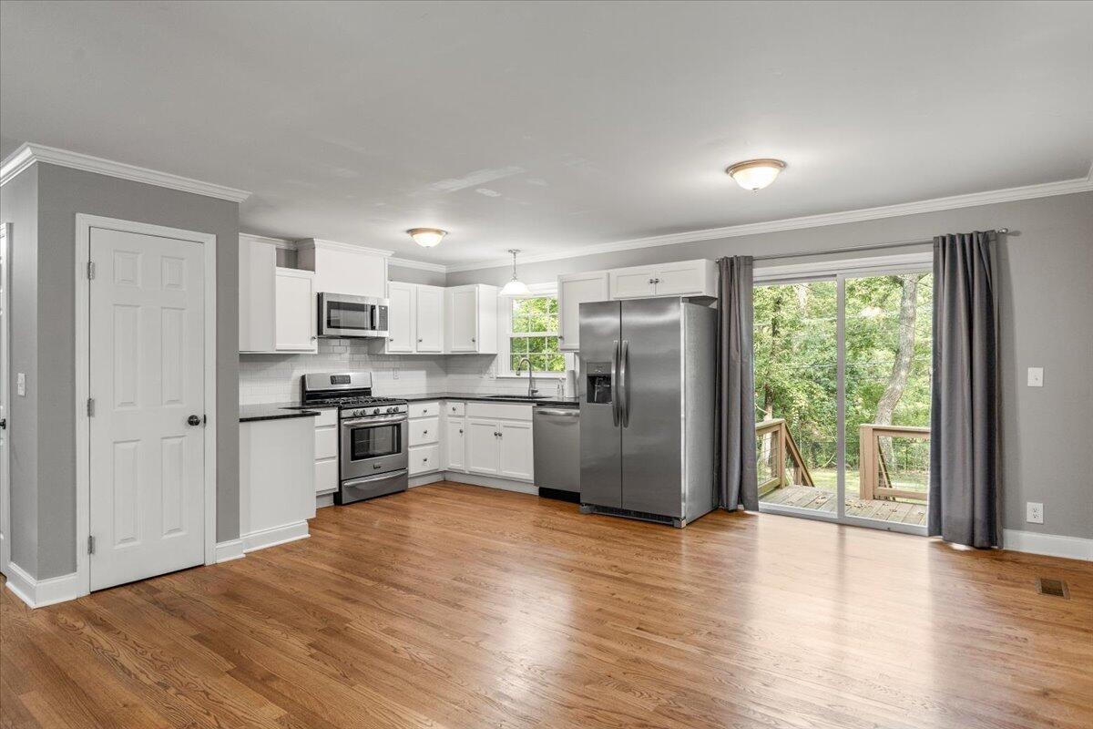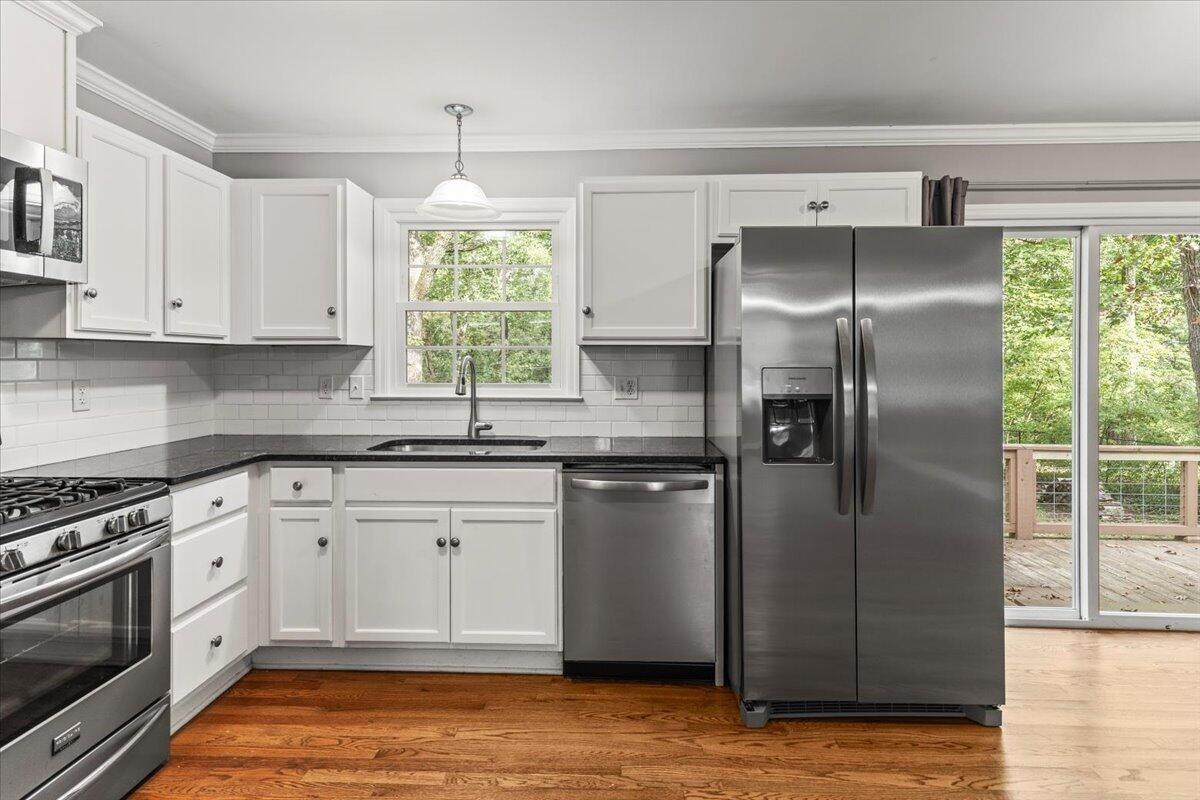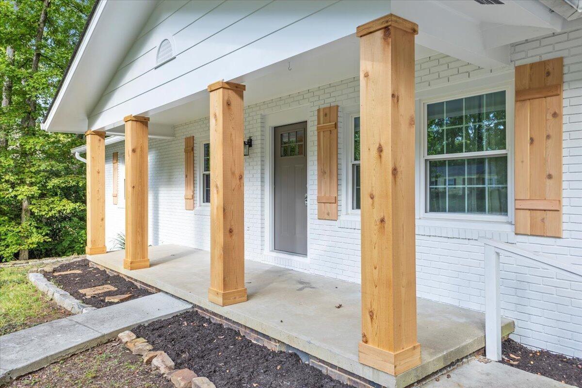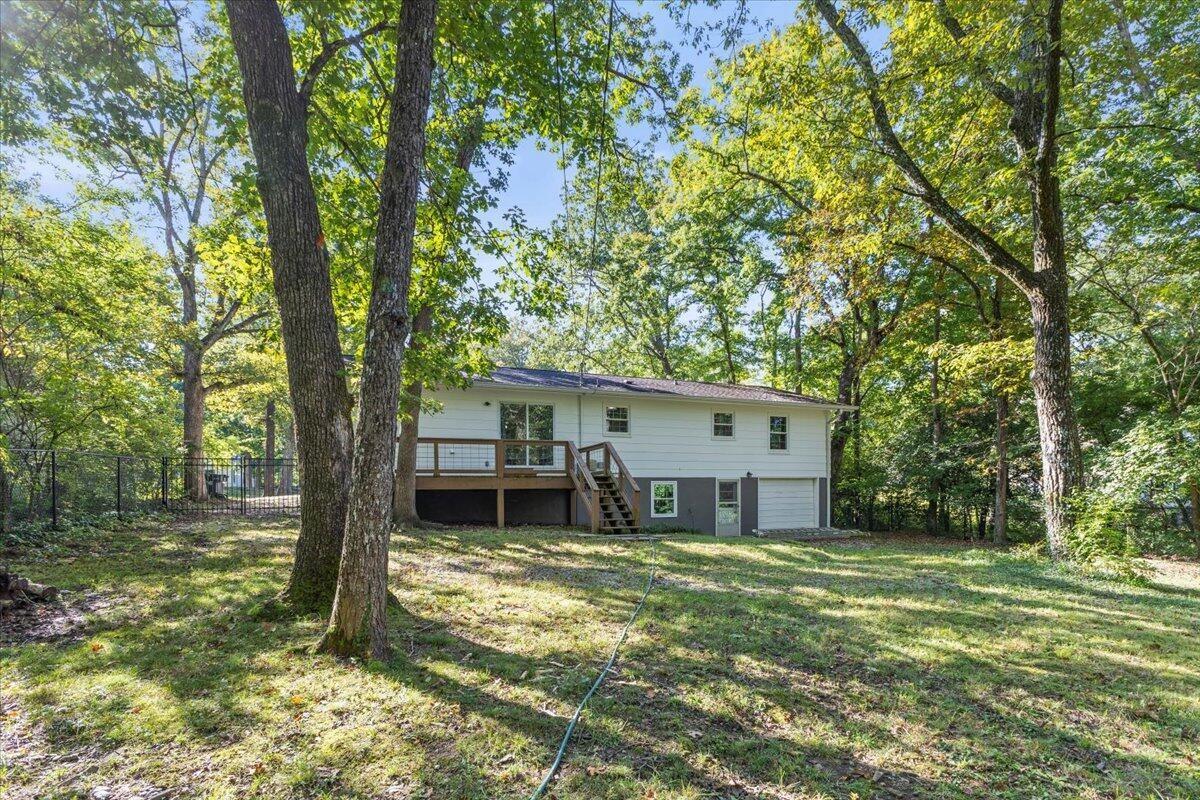 Beautifully Updated and Move-In Ready on Signal Mountain! This charming one-level home has been thoughtfully refreshed inside and out with new interior and exterior paint, updated lighting, and brand-new appliances. Step inside to an open floor plan with hardwood flooring throughout and a bright, welcoming kitchen featuring newer cabinets, granite countertops, a tiled backsplash, and stainless steel appliances—including a brand-new refrigerator. Additional upgrades include newer vinyl windows, interior and exterior doors, plus crown molding and trim, making this home truly move-in ready. The spacious primary suite boasts a stylishly updated bath with a tiled shower, modern vanity, and upgraded lighting. Two additional bedrooms with generous closet space share a second full bath complete with updated tile, vanity, and fixtures. A large laundry/mudroom with built-in cabinetry and a bench landing area offers both function and charm, conveniently connecting to the upper-level single garage. The full unfinished basement, complete with a rear garage door, provides endless possibilities—ideal for storage, a workshop, or potential future expansion. Outside, relax on the oversized back deck overlooking a large, fenced yard with plenty of privacy. The lot extends beyond the fence line, giving you even more outdoor space to enjoy.