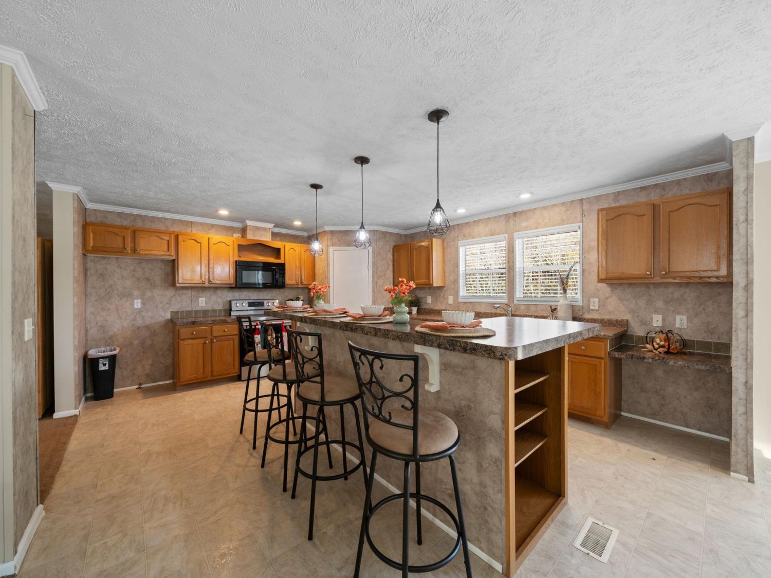 Discover the charm of 417 Briarwood Rd, a home set on 1.5 acres that blends comfort, function, and recent updates. Fresh paint, a brand-new back deck, updated porch handrails, and a new front door give this home an inviting feel right from the start. With a roof replaced in 2022 and a refreshed kitchen countertop, much of the work has already been done so you can move right in and enjoy. Inside, the open-concept kitchen, dining, and living area is perfect for gathering with family or friends, while the formal living room offers a quieter space to unwind. Three bedrooms and two full baths provide plenty of room, and the built-in office area makes working or studying from home simple and convenient. Step outside and you’ll find even more to love. The detached garage has power and is roughed in for plumbing, giving you endless possibilities for a workshop, studio, or hobby space. With 1.5 acres to call your own, there’s room to spread out, garden, or simply relax and enjoy the outdoors. All furniture is negotiable!