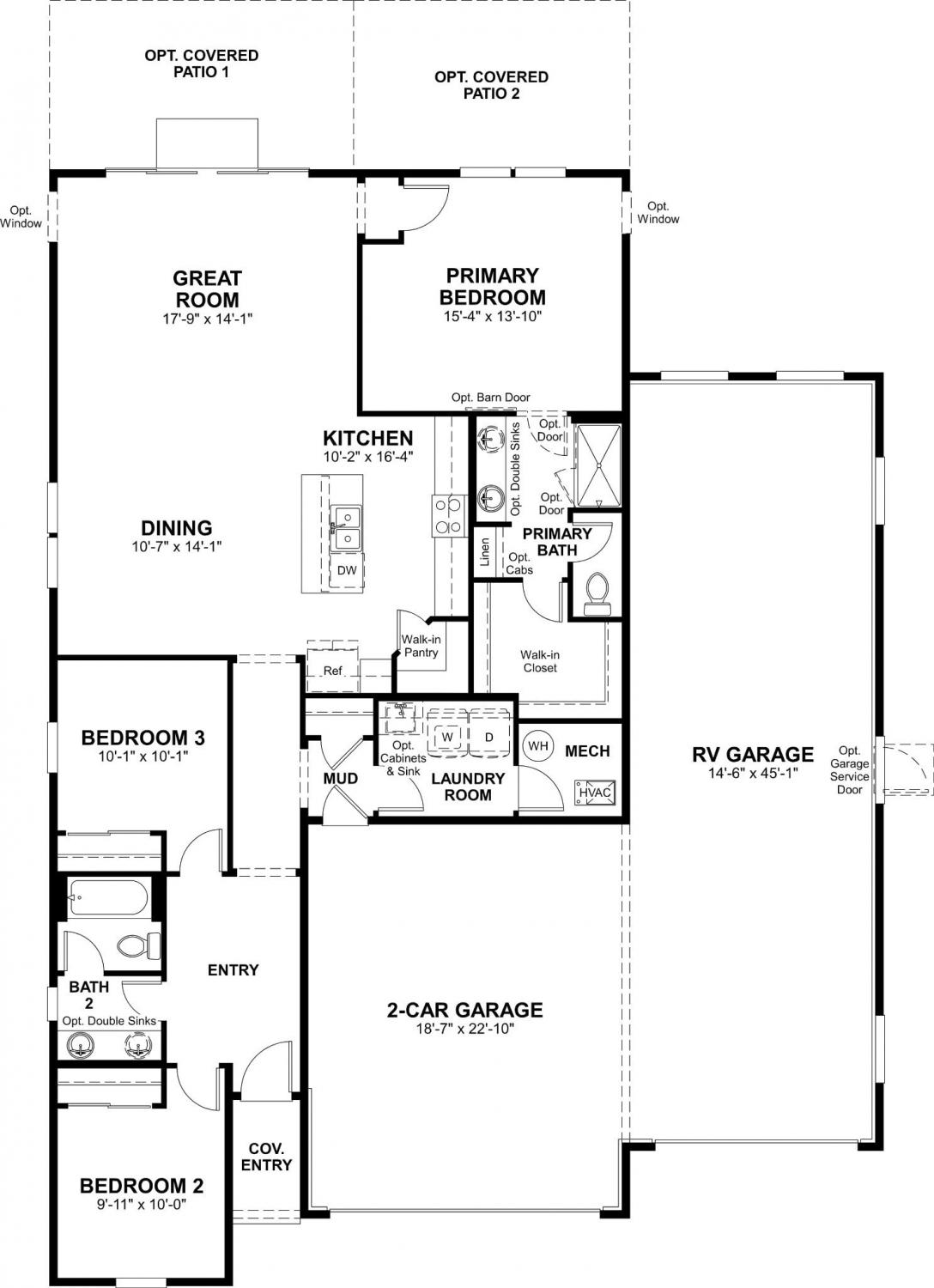 Now available—this beautifully upgraded model home features the sought-after Bronze floor plan and is situated on spacious Homesite 3, offering a private feel and plenty of room to spread out. This is the last opportunity to own this floor plan in the community, making it a truly rare find. Designed for effortless single-level living, the ranch-style layout welcomes you with two generously sized secondary bedrooms and a full bath just off the entry—perfect for guests, family, or a home office. At the heart of the home, the gourmet kitchen shines with a center island, walk-in pantry, and a cozy dining nook that flows into the expansive great room, ideal for entertaining or relaxing. The elegant primary suite features a private bath and a large walk-in closet, creating a peaceful retreat. Additional highlights include a central laundry room, a two-car garage, and a hard-to-find attached RV ULTRA garage—perfect for storing recreational vehicles, boats, or extra gear. Homes with this kind of garage space are incredibly rare and highly sought after. This professionally designed model comes fully loaded with window blinds, area rugs, curtains, wall décor, washer, dryer, and refrigerator—all included at no extra cost. What you see is what you get: the photos shown are of the actual home. Move-in ready and available for a quick close, this is your chance to own a showcase home in one of the area’s most desirable communities.
