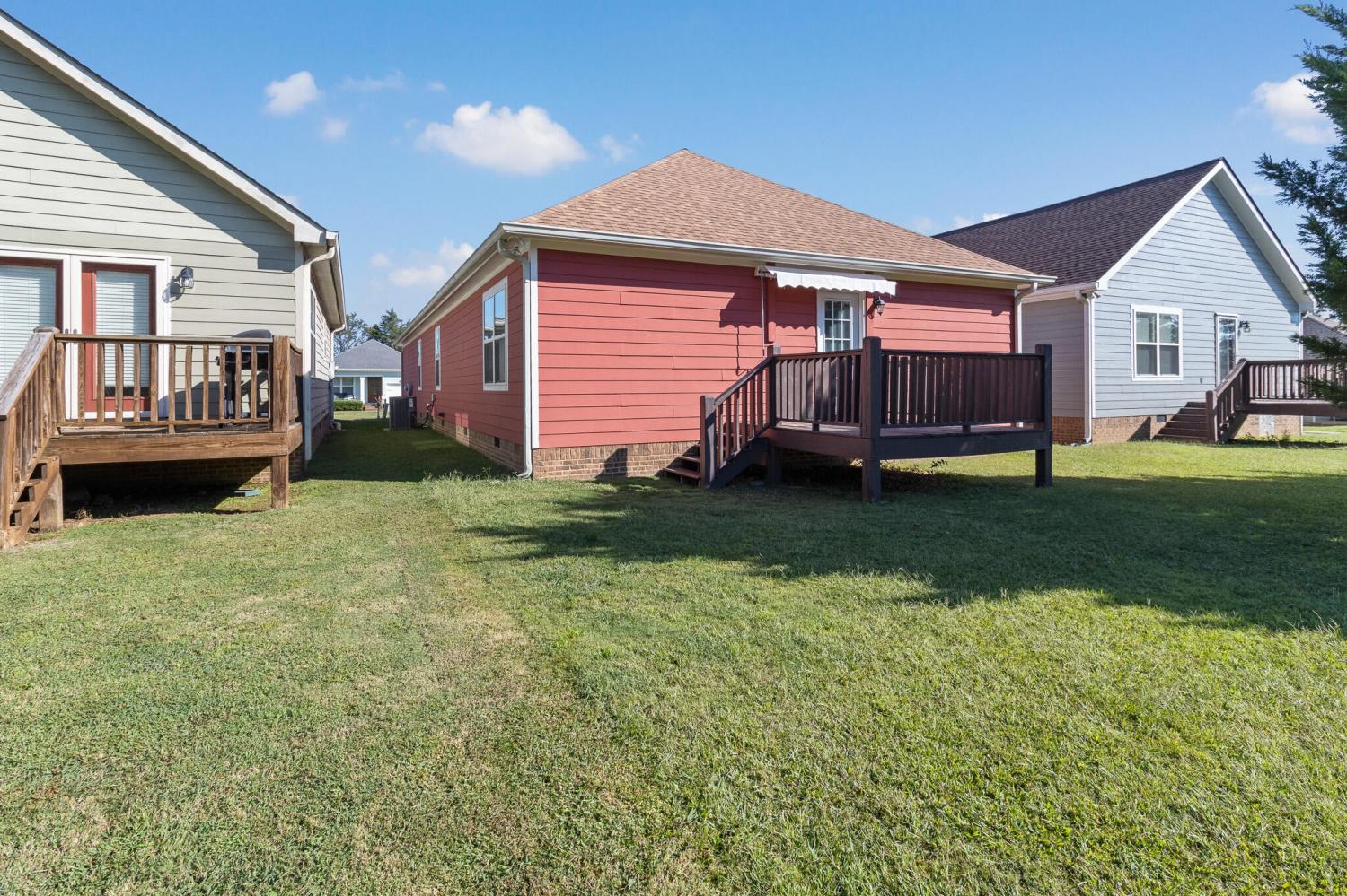 ***$5,000 carpet and/or paint allowance- One-level, 3 bedroom, 2 bath home in Fieldstone Farms, Rock Spring, GA, just 20 minutes from downtown Chattanooga and close to schools, shopping, and dining. Features include hardwood floors, crown molding, granite countertops, open floor plan, covered front porch, rear deck with new awning, double garage, and level backyard. Recent updates: roof (2022), new stainless refrigerator, repainted and sealed siding, and all can lights replaced with LEDs. Community amenities include a central common area, fire pit patio, and sidewalks. Inside, the dining room opens to the kitchen with island, breakfast bar, and stainless appliances, flowing into the living room with tray ceiling, electric fireplace, and deck access. The master suite offers a tray ceiling, dual vanity, walk-in closet, and separate shower. Two additional bedrooms share a full bath. Fantastic one-level living! Schedule your private showing today!