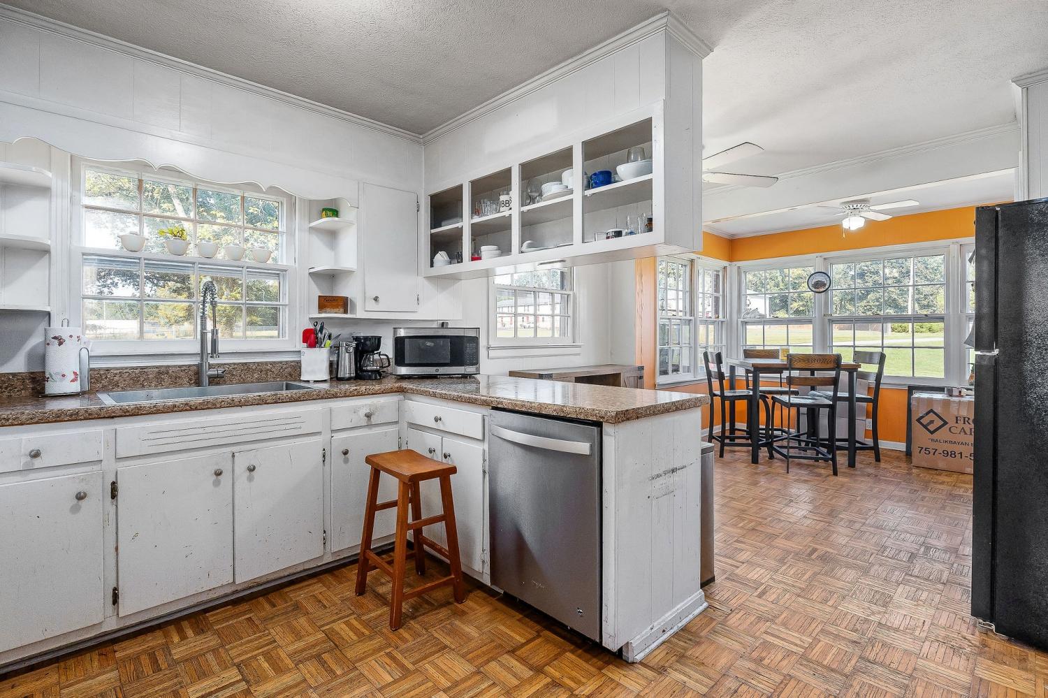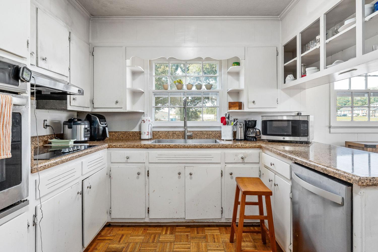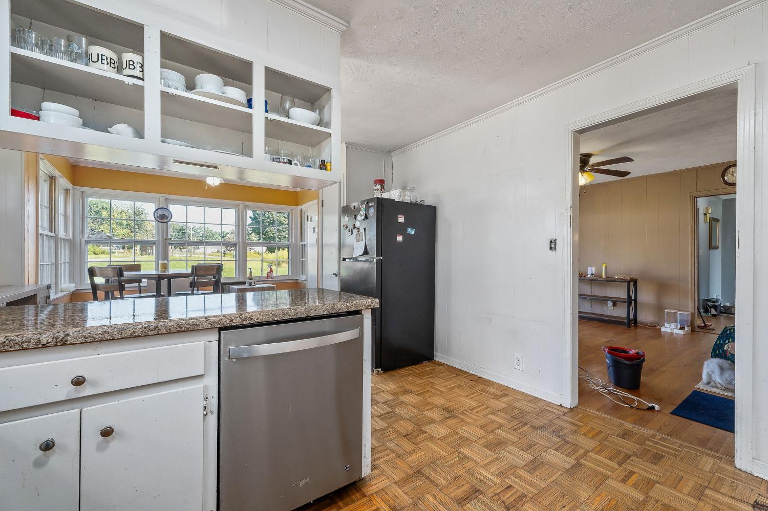 Location, location, location! Close to factories and Industrial Park. The value of this beautiful full-brick home with a basement lies in its location, space, and additional detached garage. Needing some TLC, this house presents a unique chance in a prime location with plenty of additional space and possibilities. Currently the home is being used as a 2-bedroom, one bath, featuring 2 fireplaces and entryway in the living room, kitchen, dining area, breakfast nook, den (or third bedroom), and patio. A 30 x 50 detached garage with two garage doors and a concrete drive is included with this house. There is plenty space for gardening and flower cultivation on the spacious property. The house has a full basement with potential space for additional living and a place for the washer and dryer.