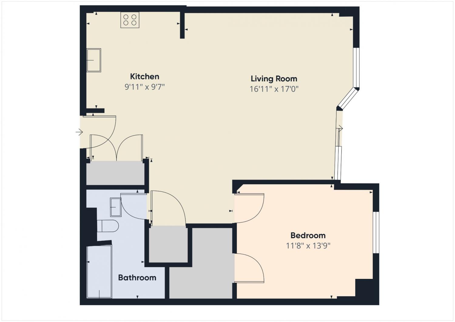 Area : 844 sq. ft.