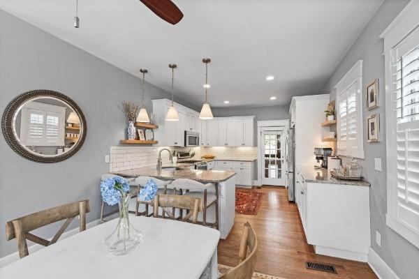 Located in the sought-after Kenner Manor neighborhood, this beautifully updated 4-bedroom, 2.5-bath home was fully renovated and expanded in 2012. The main level features a spacious primary suite with a walk-in closet, marble vanity, soaking tub, and separate shower. Upstairs you’ll find three additional bedrooms with a shared Jack & Jill bath and a bonus room. The open kitchen offers a gas stove, double oven, and plenty of counter space, while the living area includes hardwood floors, plantation shutters, and a cozy gas fireplace. Outside, enjoy a screened-in deck with a fully fenced front and back yards, and no backyard neighbors. A large, dry walk-up/walk-out basement provides excellent storage. Zoned for Julia Green Elementary, this home is within walking distance to Publix, the Richland Creek Greenway, and the soon-to-open Belle Meade Plaza.