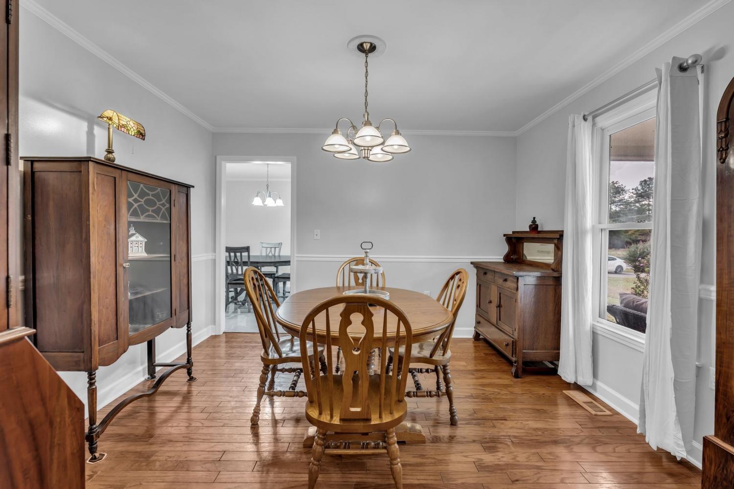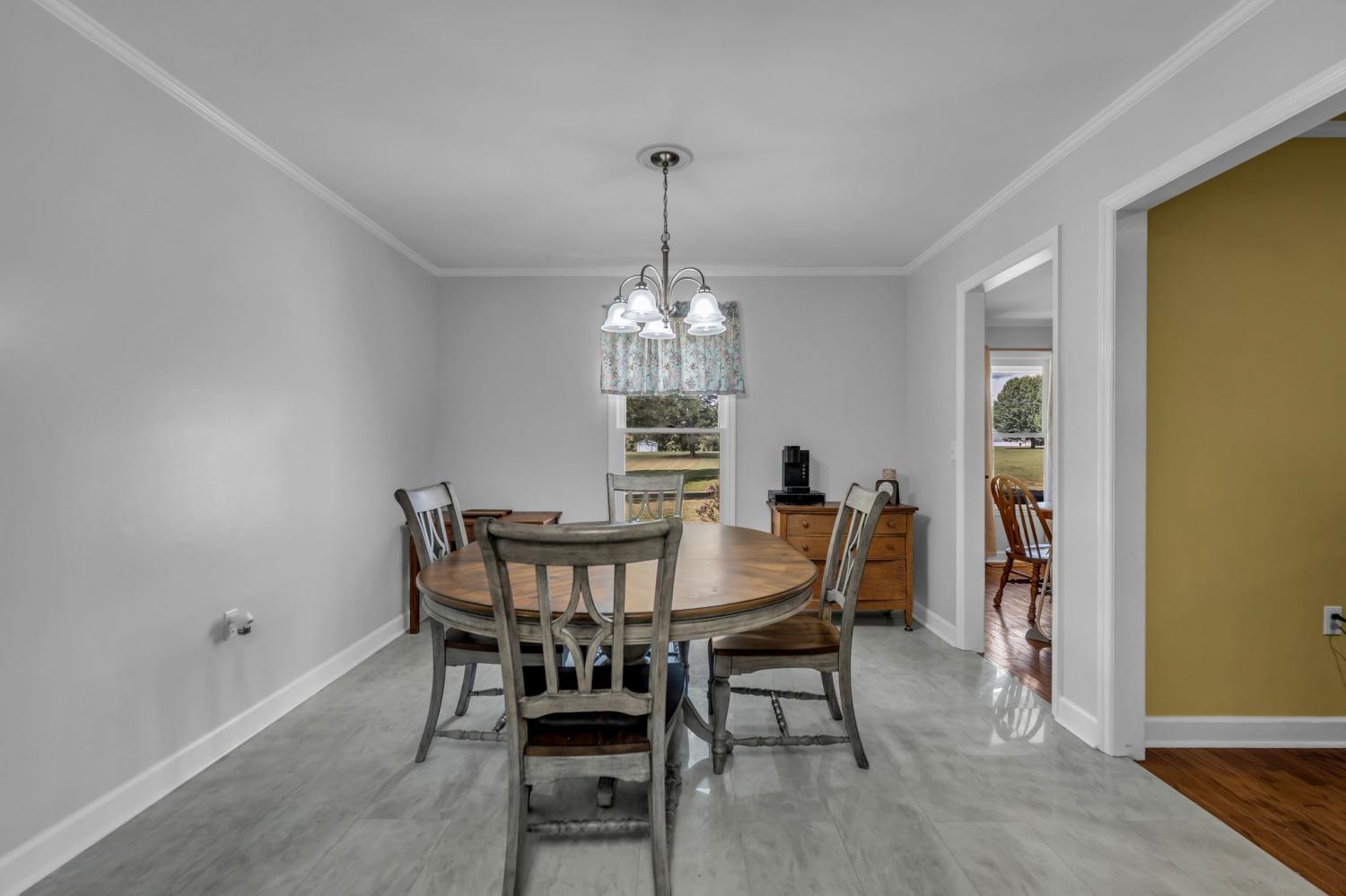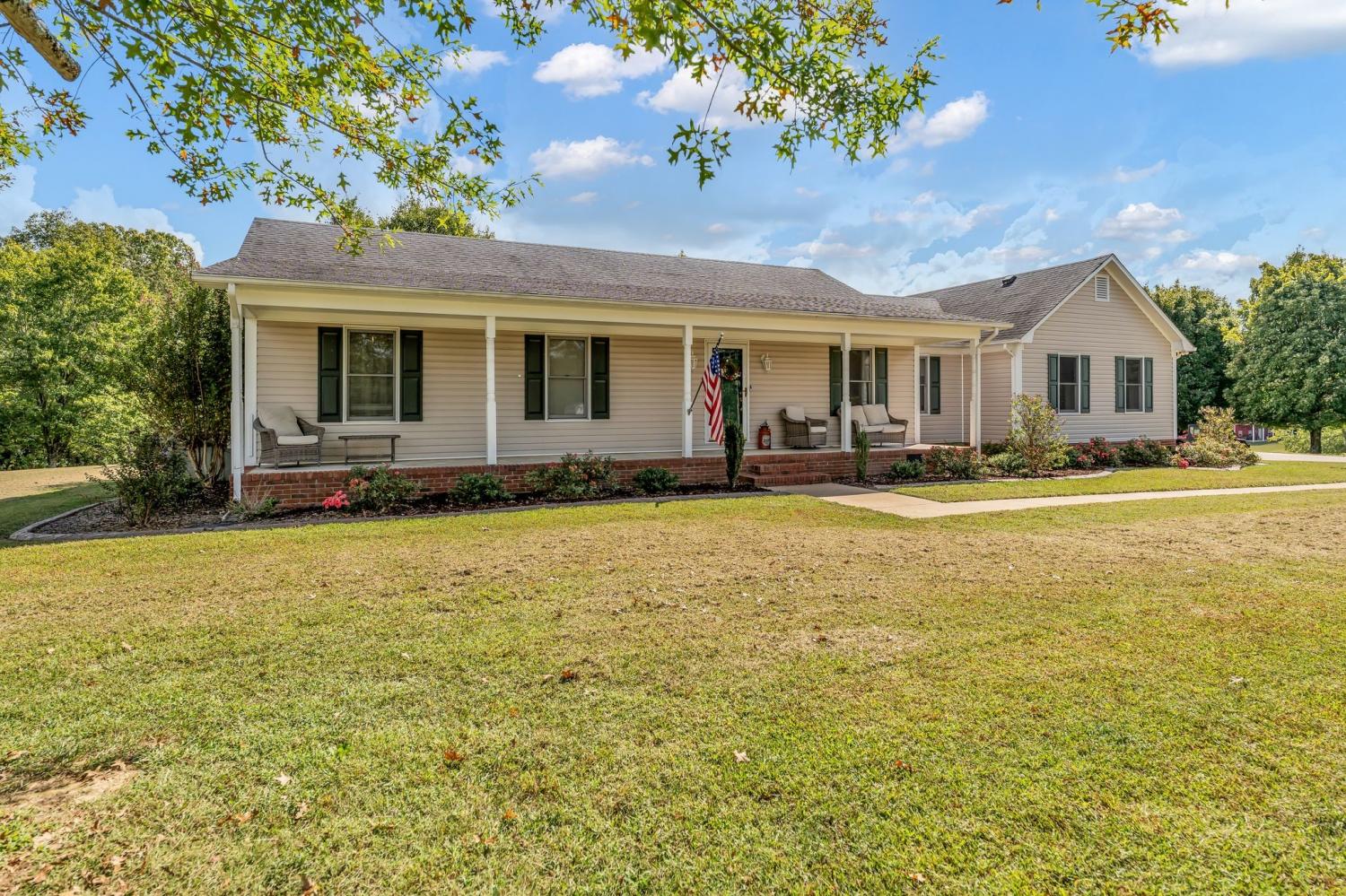 This southern beauty with rocking chair front porch is a 3-bedroom 2 bath with a traditional entry foyer, formal dining room and sunroom that can be an extra den or office. And it has an eat-in kitchen. All stainless-steel appliances convey. The primary bathroom has been upgraded in addition to the kitchen and laundry room. There's room for your furry friends with a fully fenced in back yard. Home also boasts an attached two-car garage, AND a detached garage complete with concrete carport and office above the garage. All this nestled on 6.67 Acres of land, within 10 minutes from town.