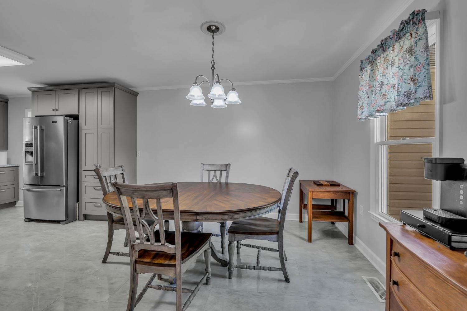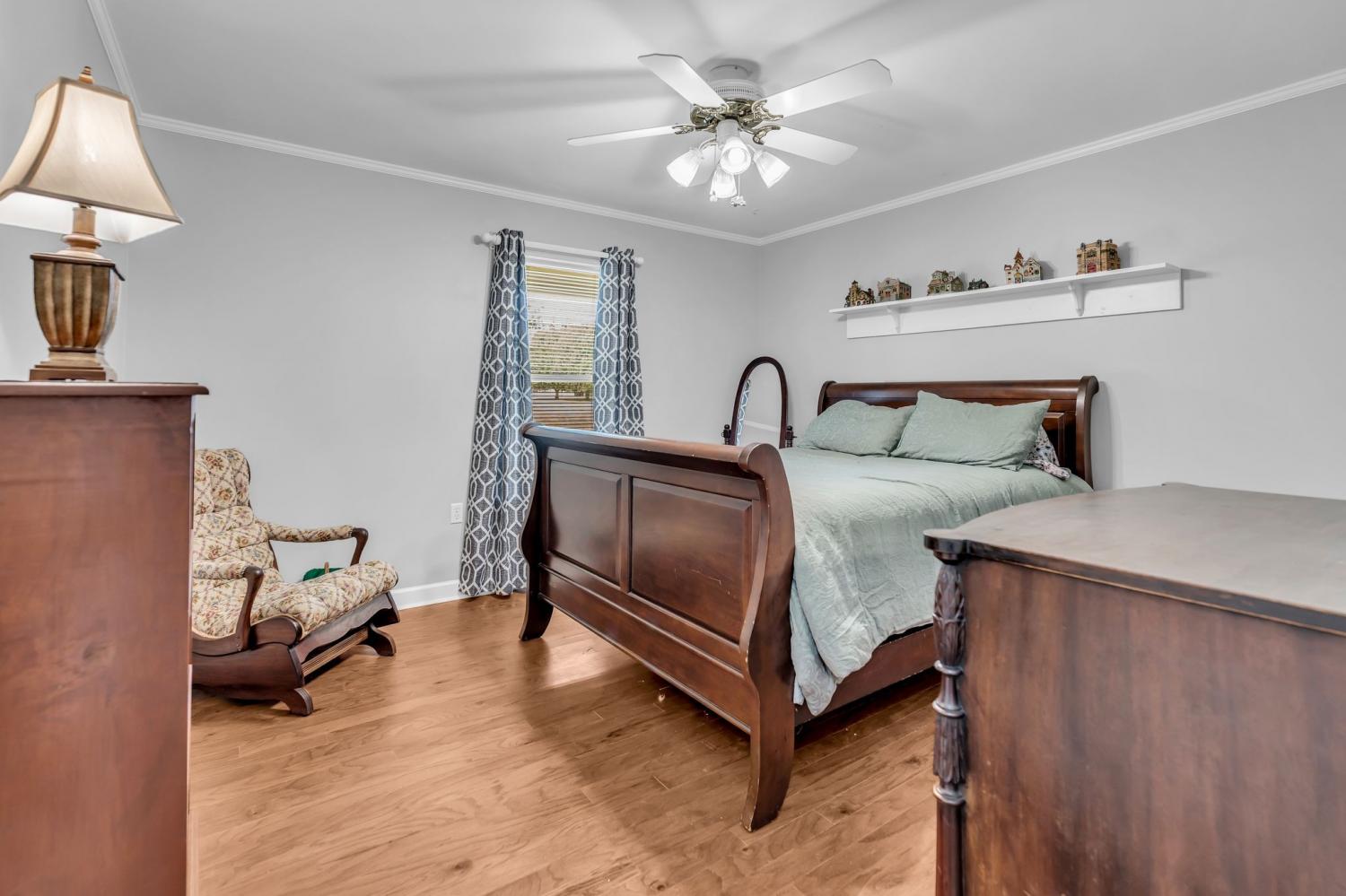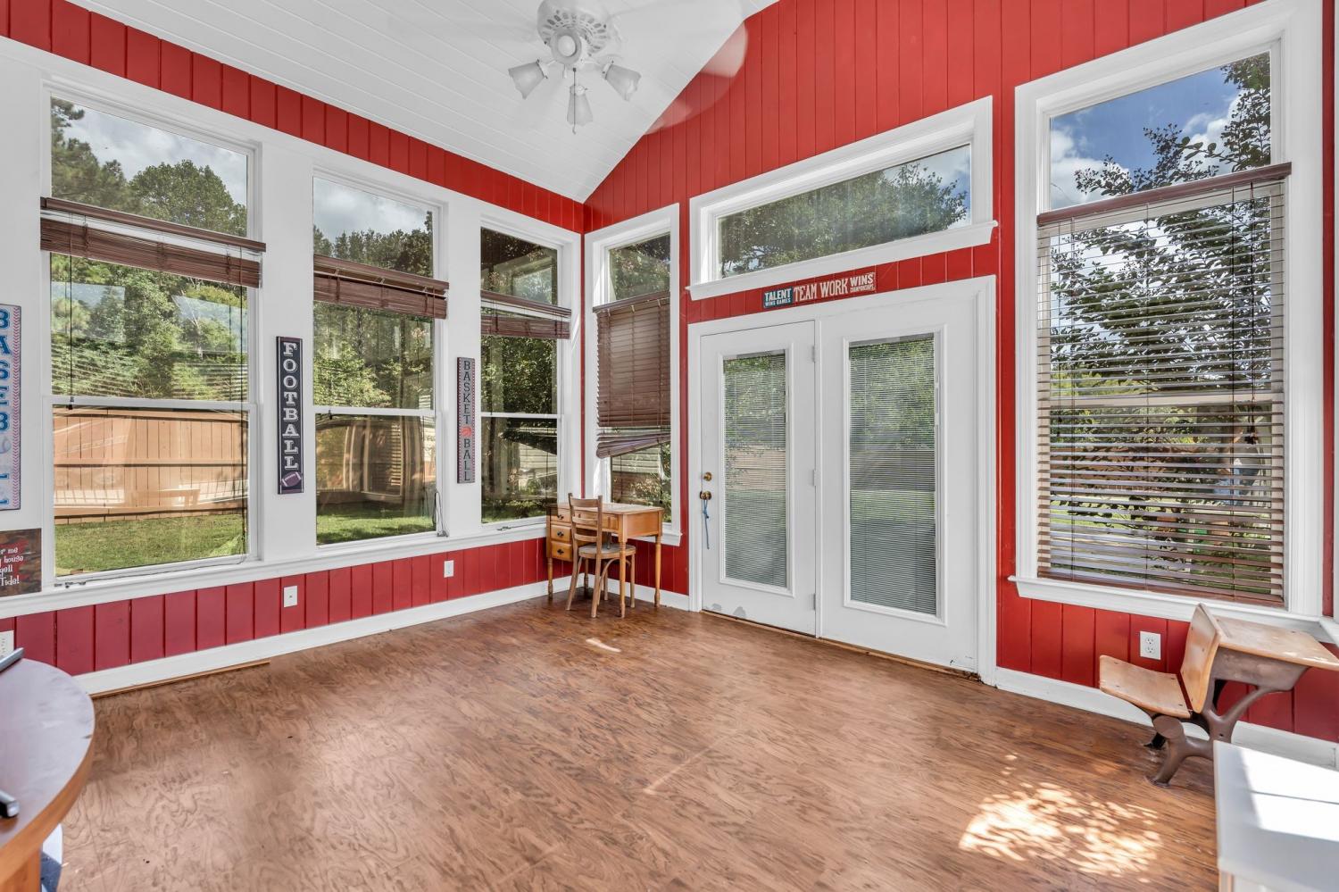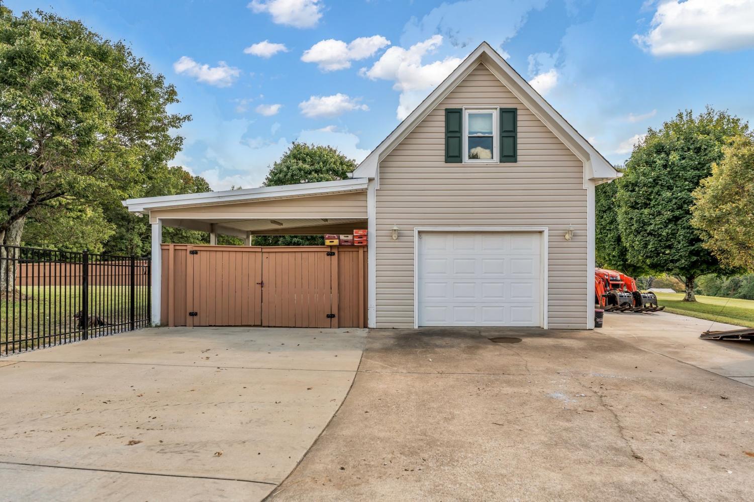 This southern beauty with rocking chair front porch is a 3-bedroom 2 bath with a traditional entry foyer, formal dining room and sunroom that can be an extra den or office. And it has an eat-in kitchen. All stainless-steel appliances convey. The primary bathroom has been upgraded in addition to the kitchen and laundry room. There's room for your furry friends with a fully fenced in back yard. Home also boasts an attached two-car garage, AND a detached garage complete with concrete carport and office above the garage. All this nestled on 6.67 Acres of land, within 10 minutes from town.