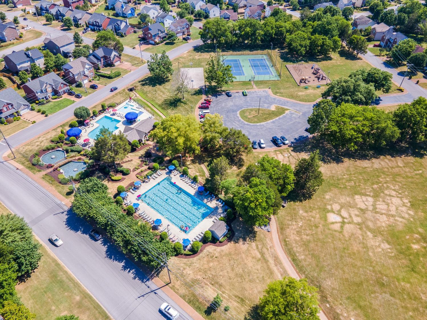 READY FOR QUICK MOVE-IN! Room for everyone to have their own space! Kitchen with white cabinets open to the family room, huge primary suite with fireplace, formal living would make a great at-home office, wonderful sunroom off the kitchen, fresh neutral paint throughout, NEW ROOF 2023, large backyard patio, common area to the side of home, mature trees and backyard, privacy, 2 walk-in storage rooms. Walk to neighborhood pools, tennis and playground. Fabulous location close to interstate, schools, lakes and airport. Short drive to downtown Nashville.