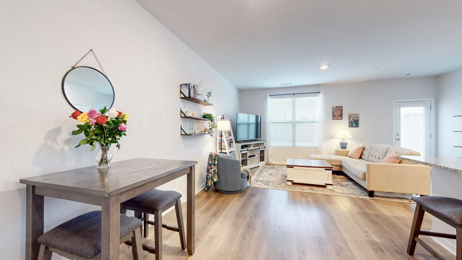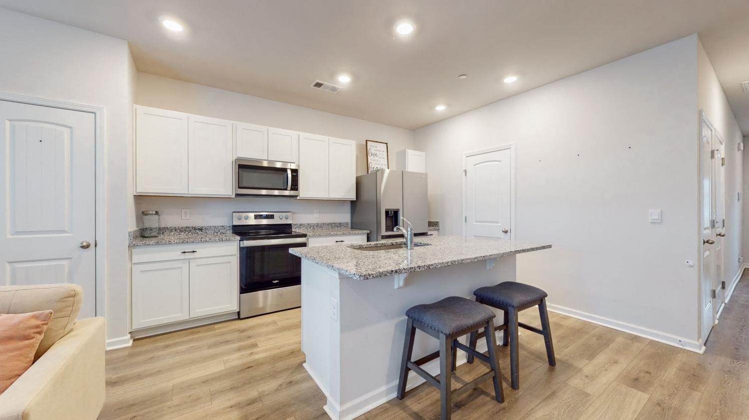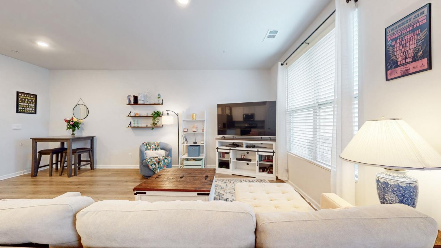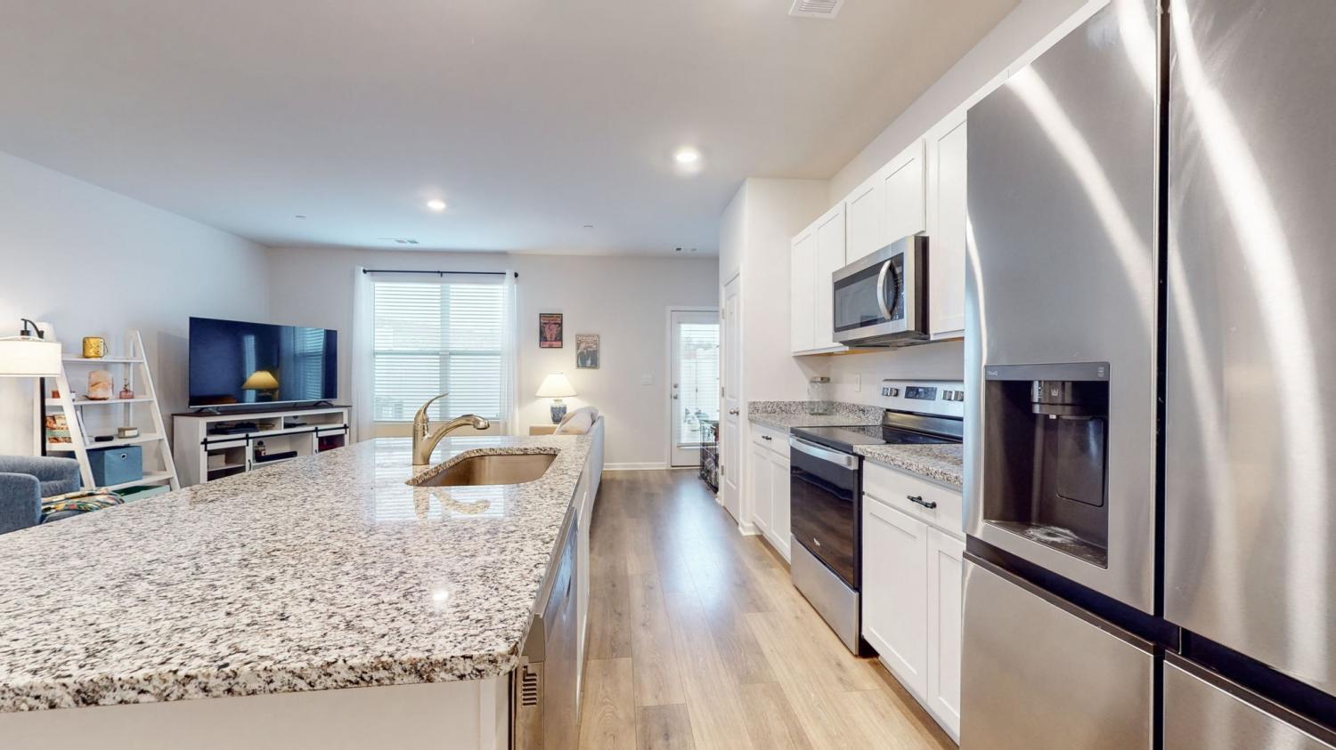 Welcome to 122 Champions Lane in the sought-after Sycamore Ridge community! This 3-bedroom, 2.5-bath townhome delivers modern style, open living, and unbeatable convenience - all under $300,000. Step inside to a bright foyer that flows into the spacious open-concept living and dining area. The kitchen steals the show with contemporary white cabinetry, granite countertops, a massive island with seating, and stainless appliances. Upstairs, all three bedrooms are tucked away for privacy. The primary suite feels like a retreat with its tray ceiling, double closets - including a walk-in and a spa-like bath with granite double vanity. Outside, enjoy your fenced backyard, perfect for pets or gatherings. Other perks include a one-car garage, laundry upstairs with washer/dryer included, and low-maintenance living. Incredible location: just 25 minutes to Nashville, 20 minutes to Clarksville, plus walkability to schools and local shops. Move-in ready, stylish, and priced to sell! SPECIAL closing incentives with Aimee Shell at Lending Hand Mortgage - call Whitley Smith for more information.