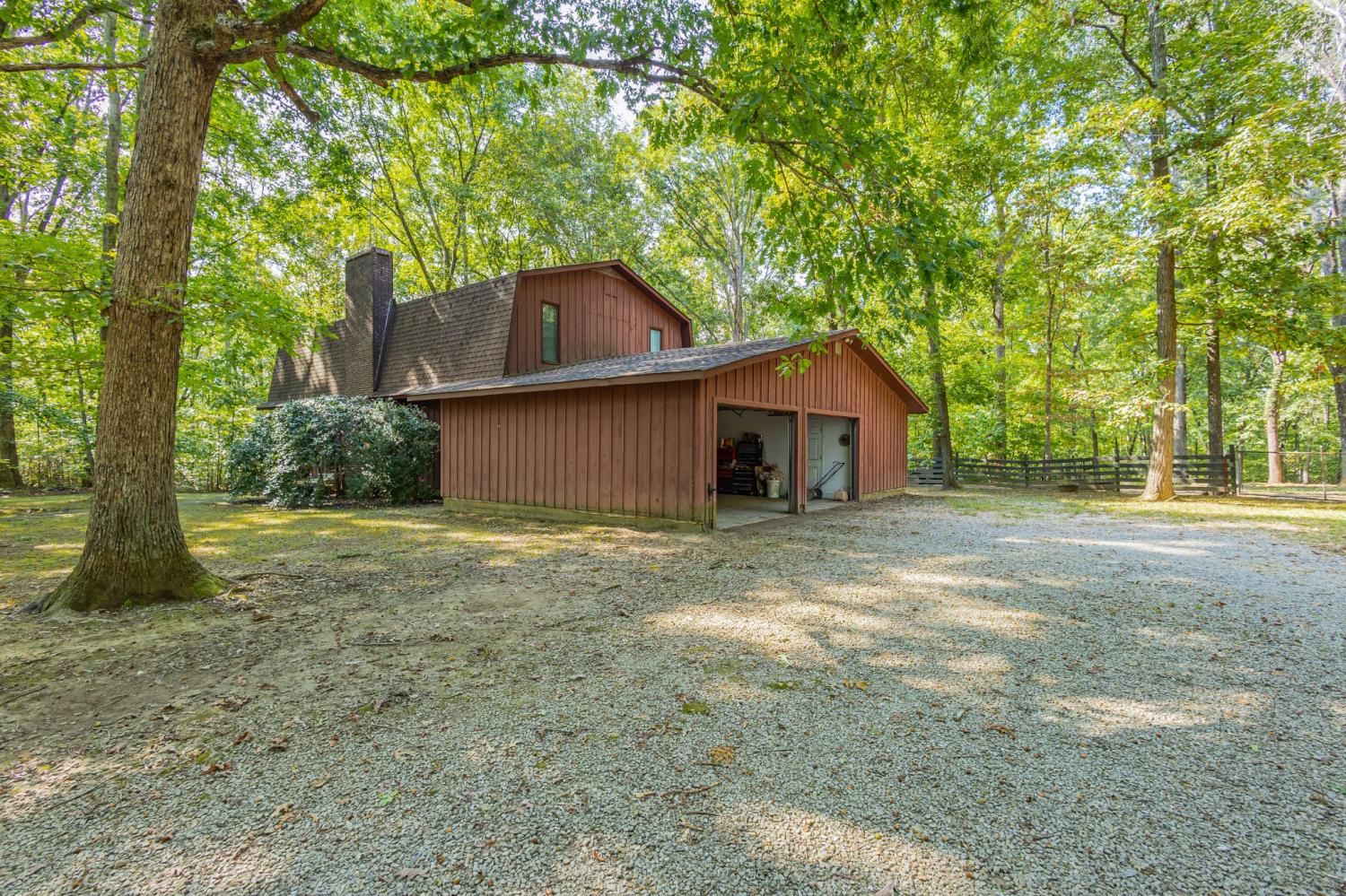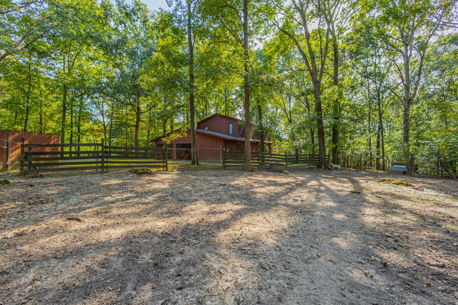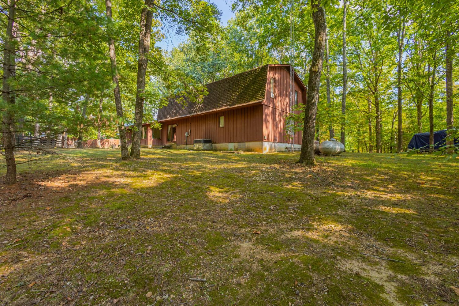 An amazing find! This secluded home is on approximately 6 acres featuring mature shade trees, oval in-ground pool measuring 20x40 feet, three-stall barn, and fenced pasture ideal for any type livestock. This peaceful country property is in an ideal location! It offers convenient walking or a short drive on a golf cart to Holiday Landing with easy boat dock access and good food at the Bluegill Grill restaurant. The first floor consists of authentic red and white oak hardwood flooring throughout main living areas, a large living room with a gas fireplace, a sunroom perfect for relaxation, a spacious bedroom with a walk-in closet, a roomy utility room, full bathroom, and two-car attached garage with an additional storage room! And that is only the downstairs! The upstairs features two extremely large bedrooms with large closet space and a second full sized bathroom. Property includes fiber internet, natural gas access, a storage shed, and a charming garden area. In addition to being within walking distance of the lake, this home is located minutes from Tim's Ford State Park and Bear Trace Golf Course, offering excellent recreational opportunities for boating, fishing, golfing, and hiking. There is abundant wildlife viewing on the property itself from the luxury of your own sunroom and the well-established shade trees create a private sanctuary while maintaining proximity to modern-day amenities and conveniences. This rare find combines rural tranquility with accessibility to waterfront activities and local dining. The house, inground pool and approximately 1 acre can be sold separately. However, the house must sell before the 5 acres if splitting. Just think, no HOA, unrestricted property, great location! Will divide but home must sell primary before any other split. Homestaeders this unrestrited property has it all. Hunters and fishermen use this as your homebase paradise can be seen in the pictures.