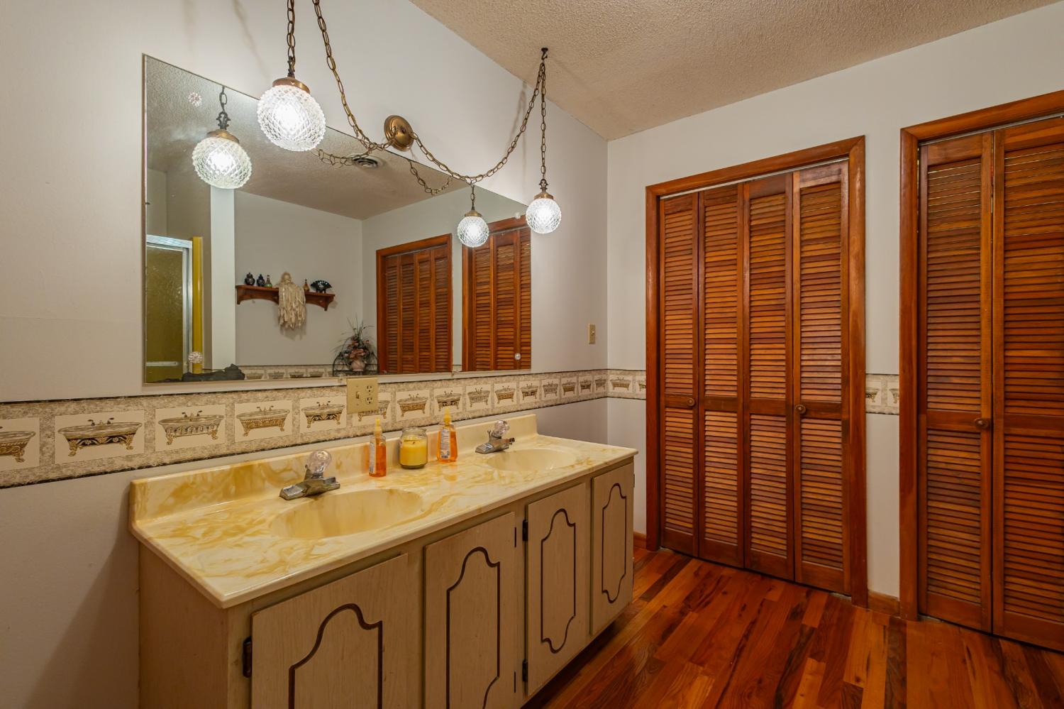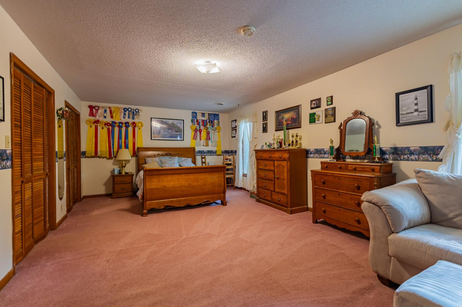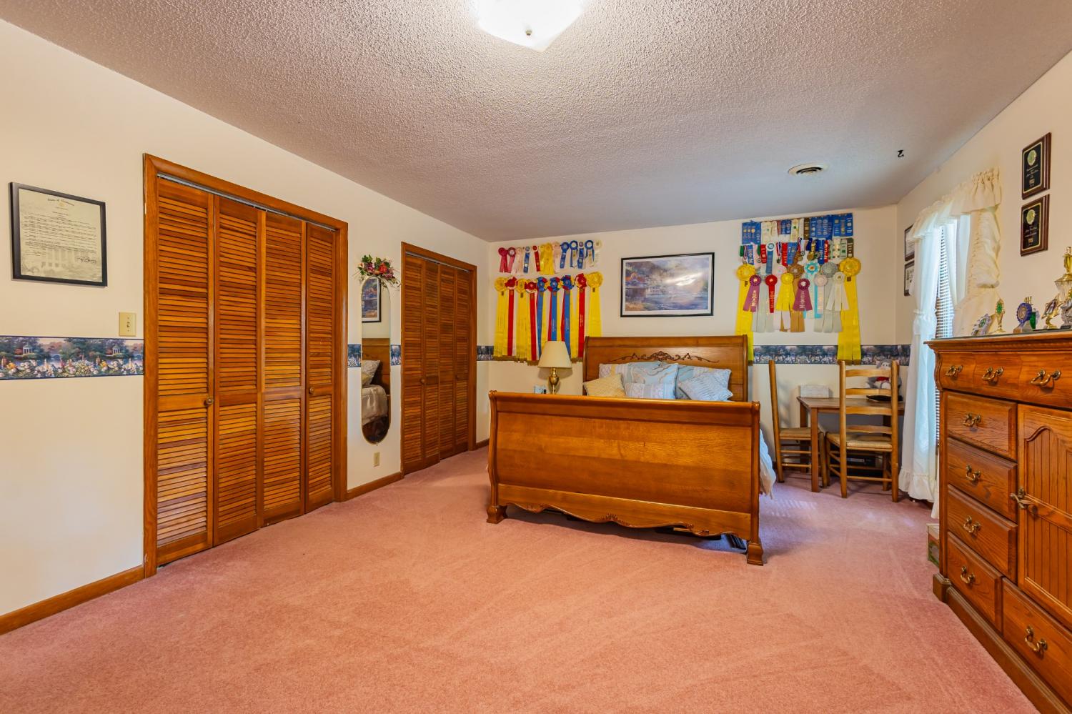 An amazing find! This secluded home is on approximately 6 acres featuring mature shade trees, oval in-ground pool measuring 20x40 feet, three-stall barn, and fenced pasture ideal for any type livestock. This peaceful country property is in an ideal location! It offers convenient walking or a short drive on a golf cart to Holiday Landing with easy boat dock access and good food at the Bluegill Grill restaurant. The first floor consists of authentic red and white oak hardwood flooring throughout main living areas, a large living room with a gas fireplace, a sunroom perfect for relaxation, a spacious bedroom with a walk-in closet, a roomy utility room, full bathroom, and two-car attached garage with an additional storage room! And that is only the downstairs! The upstairs features two extremely large bedrooms with large closet space and a second full sized bathroom. Property includes fiber internet, natural gas access, a storage shed, and a charming garden area. In addition to being within walking distance of the lake, this home is located minutes from Tim's Ford State Park and Bear Trace Golf Course, offering excellent recreational opportunities for boating, fishing, golfing, and hiking. There is abundant wildlife viewing on the property itself from the luxury of your own sunroom and the well-established shade trees create a private sanctuary while maintaining proximity to modern-day amenities and conveniences. This rare find combines rural tranquility with accessibility to waterfront activities and local dining. The house, inground pool and approximately 1 acre can be sold separately. However, the house must sell before the 5 acres if splitting. Just think, no HOA, unrestricted property, great location! Will divide but home must sell primary before any other split. Homestaeders this unrestrited property has it all. Hunters and fishermen use this as your homebase paradise can be seen in the pictures.