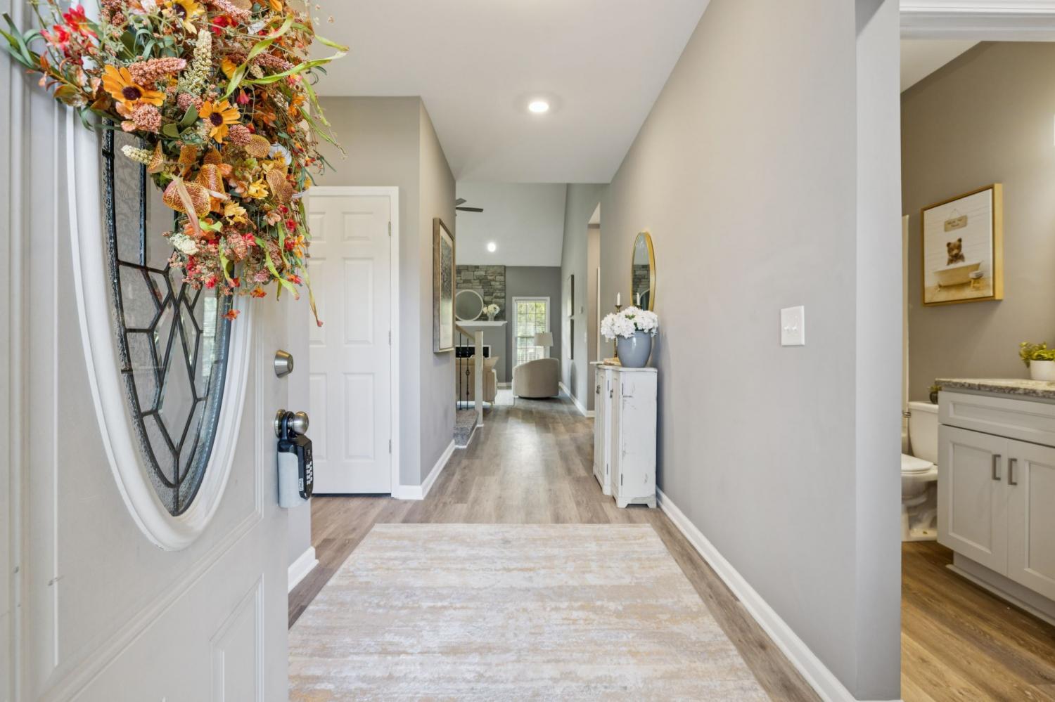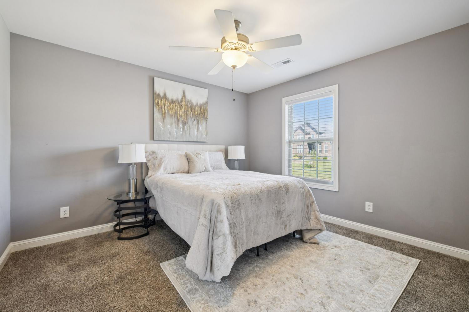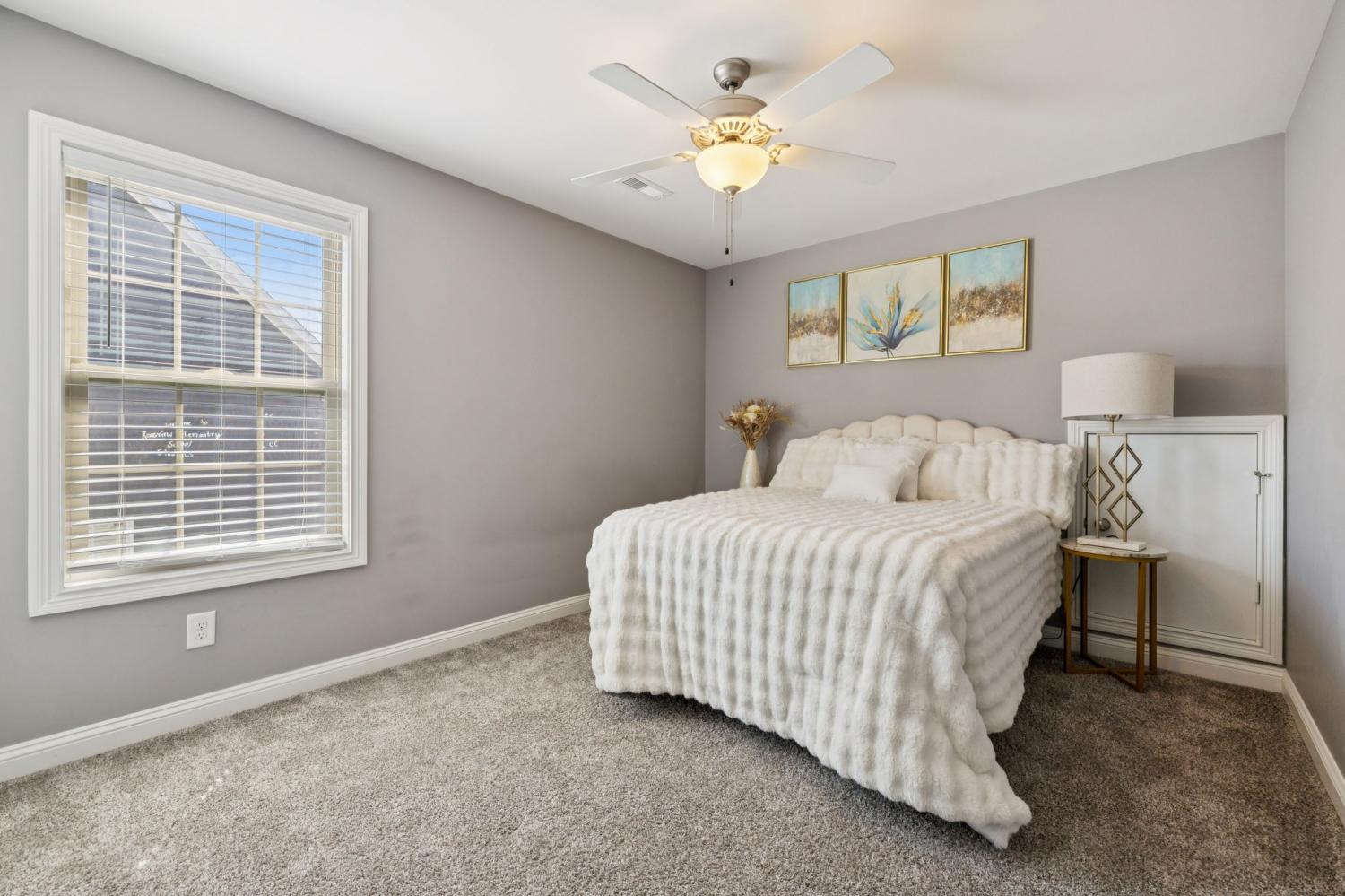 This beautiful and functional home in the desirable Farmington subdivision offers 4 bedrooms, 3 full bathrooms, and a spacious bonus room—perfectly suited for modern family living. Inside, the main floor features the primary suite and a guest bedroom, both with easy access to full bathrooms—ideal for multigenerational families or guests. You'll love the brand-new luxury vinyl plank (LVP) flooring (no carpet!), and granite countertops in the kitchen, which opens to a bright and welcoming living area. The home is filled with plenty of natural light throughout, enhancing the clean finishes and open feel. A formal dining room provides space for entertaining, while the upstairs offers two more bedrooms, a full bath, and a large bonus room for flexible living—use it as a home office, media room, or playroom. Enjoy your mornings and evenings in the private backyard with no rear neighbors—a peaceful setting that’s hard to find. Enjoy peaceful living in this beautiful home located in a serene neighborhood featuring a community walking trail and pond—perfect for morning strolls or relaxing after a long day. All of this in a convenient location just minutes from I-24, Kirkwood schools, shopping, and dining. For a limited time only enjoy, 1% towards Closing Costs with use of Preferred Lender. Terms and conditions apply.