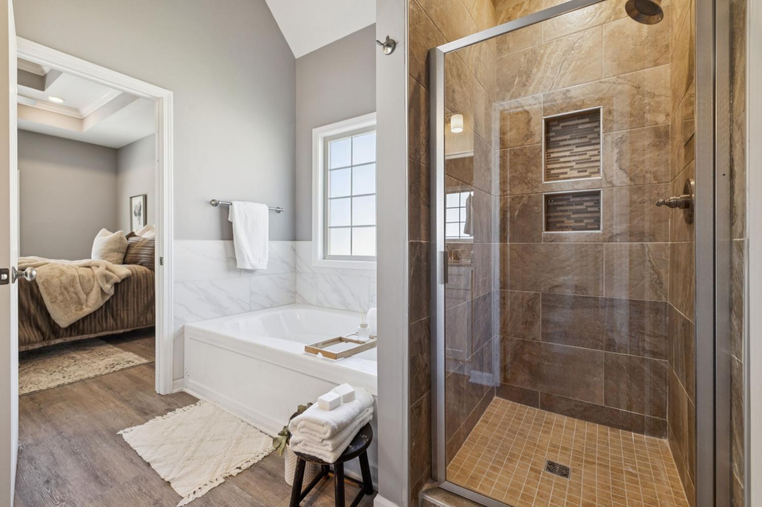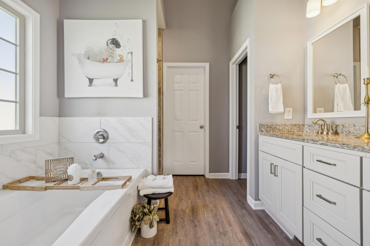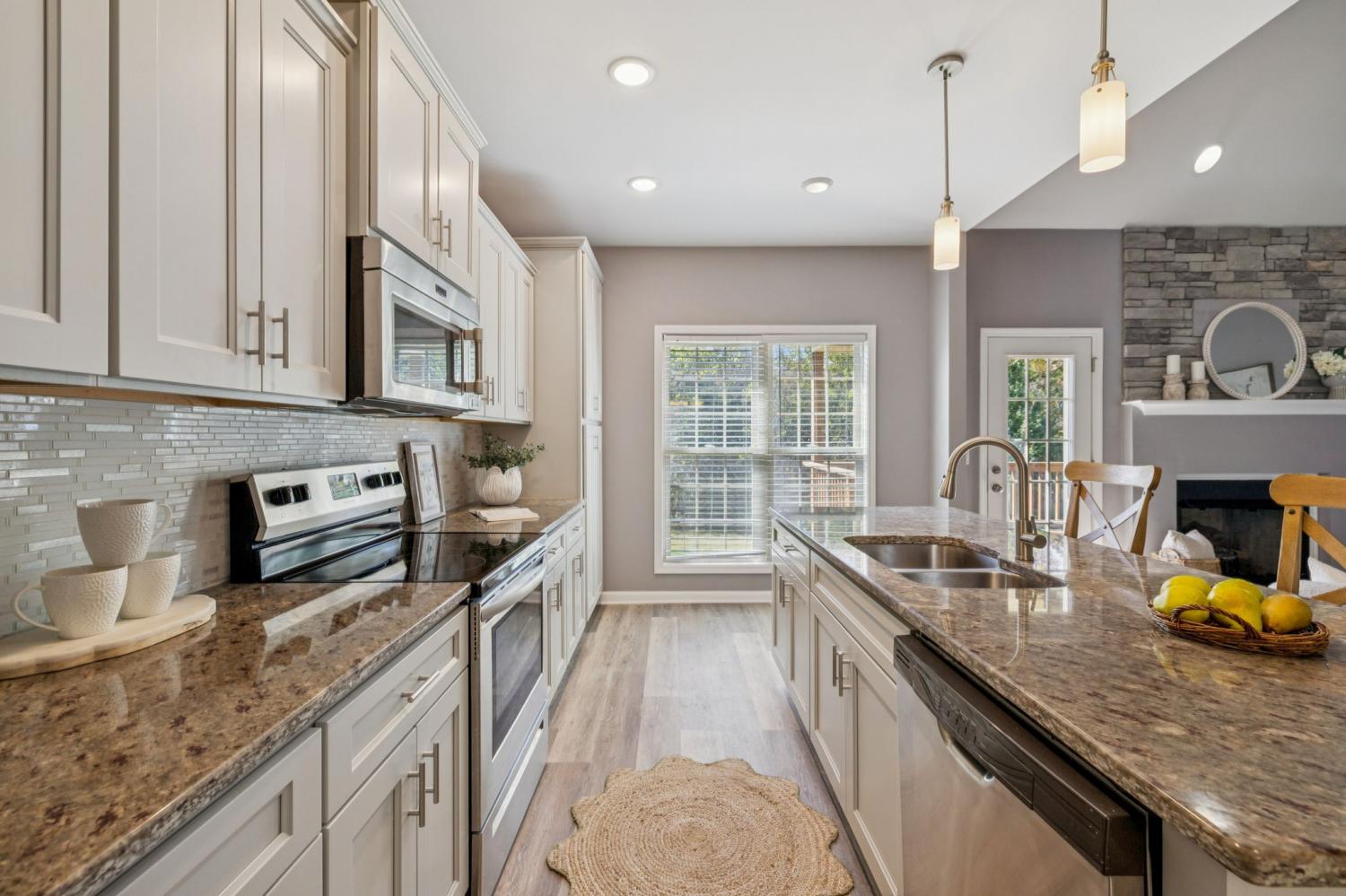 This beautiful and functional home in the desirable Farmington subdivision offers 4 bedrooms, 3 full bathrooms, and a spacious bonus room—perfectly suited for modern family living. Inside, the main floor features the primary suite and a guest bedroom, both with easy access to full bathrooms—ideal for multigenerational families or guests. You'll love the brand-new luxury vinyl plank (LVP) flooring (no carpet!), and granite countertops in the kitchen, which opens to a bright and welcoming living area. The home is filled with plenty of natural light throughout, enhancing the clean finishes and open feel. A formal dining room provides space for entertaining, while the upstairs offers two more bedrooms, a full bath, and a large bonus room for flexible living—use it as a home office, media room, or playroom. Enjoy your mornings and evenings in the private backyard with no rear neighbors—a peaceful setting that’s hard to find. Enjoy peaceful living in this beautiful home located in a serene neighborhood featuring a community walking trail and pond—perfect for morning strolls or relaxing after a long day. All of this in a convenient location just minutes from I-24, Kirkwood schools, shopping, and dining. For a limited time only enjoy, 1% towards Closing Costs with use of Preferred Lender. Terms and conditions apply.