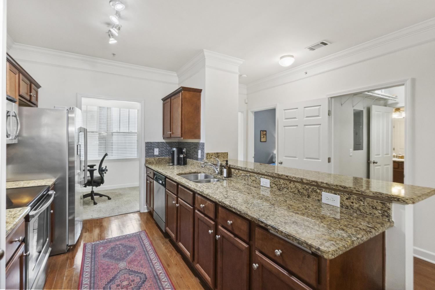 Beautiful condo in the desirable 12 South, Melrose neighborhood. Spacious open floor plan with open concept living, dining, and kitchen plus two bedrooms, two baths, office space, and patio. Beautiful high ceilings with crown molding throughout. Generously sized master bedroom with light pouring in the large windows, a walk in closet, and freshly updated on-suite shower. The Park at Melrose condominiums have a bright, clean workout facility, large pool, and on site grills. Conveniently near Belmont and Vandy as well as walking distance to many local amenities and entertainment like 12 South restaurants and retail, Hattie B's, and Zanies. Essentials from Publix grocery and pharmacy are less than a block away. Don't miss this opportunity to own this beautiful home in an ideal location.