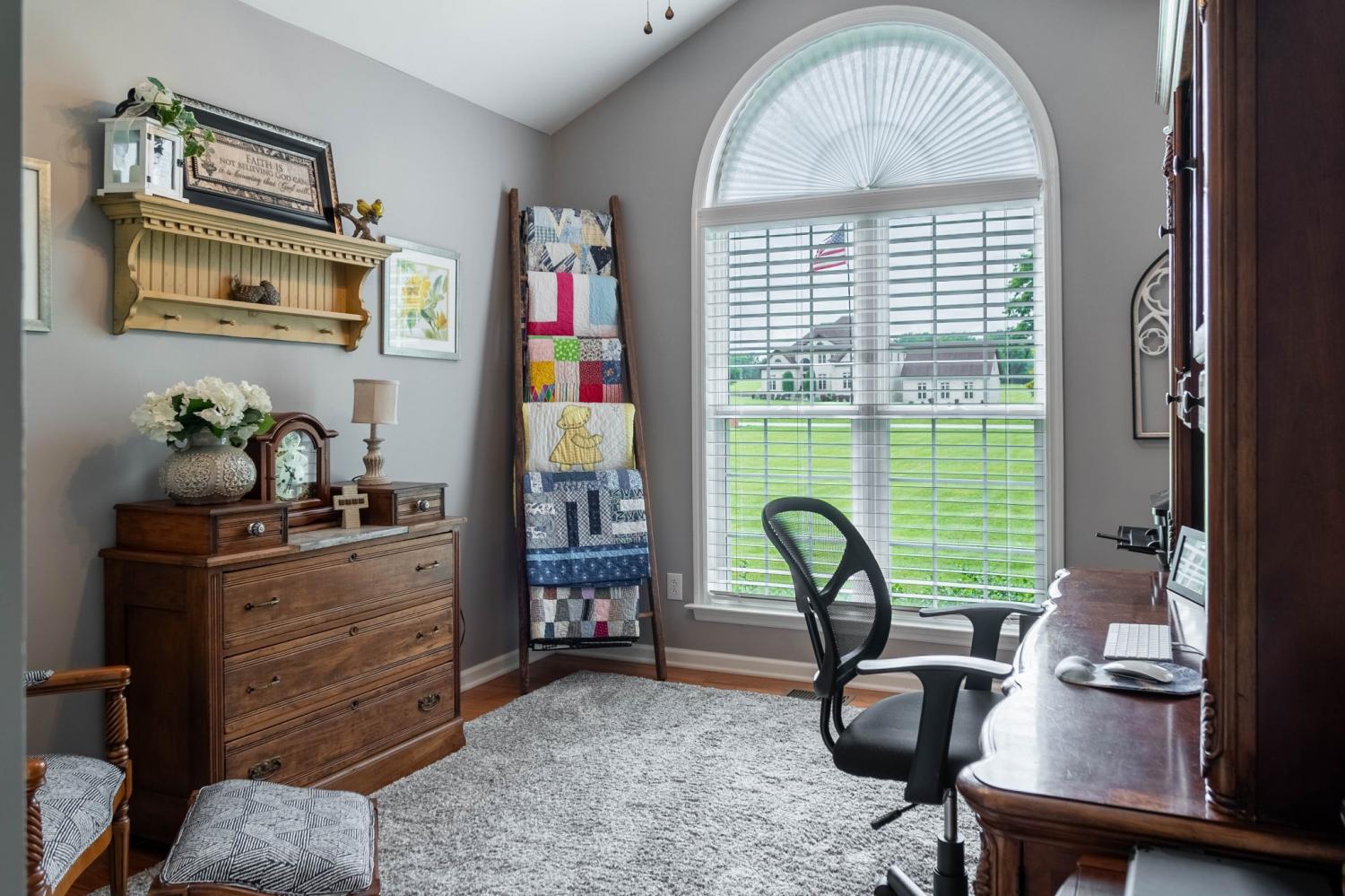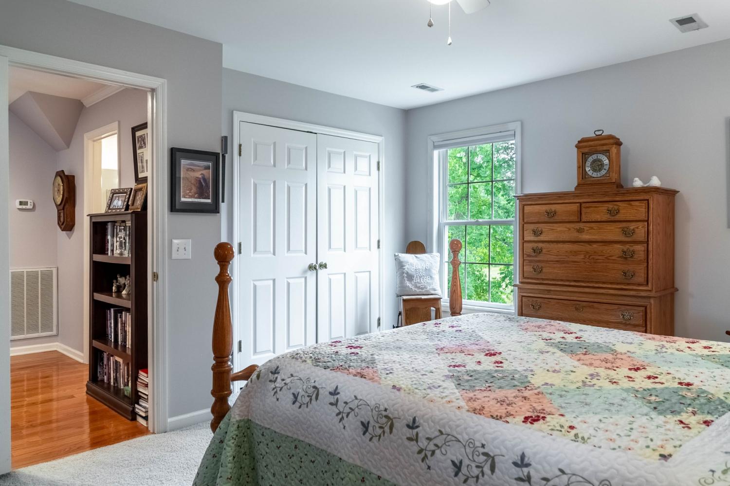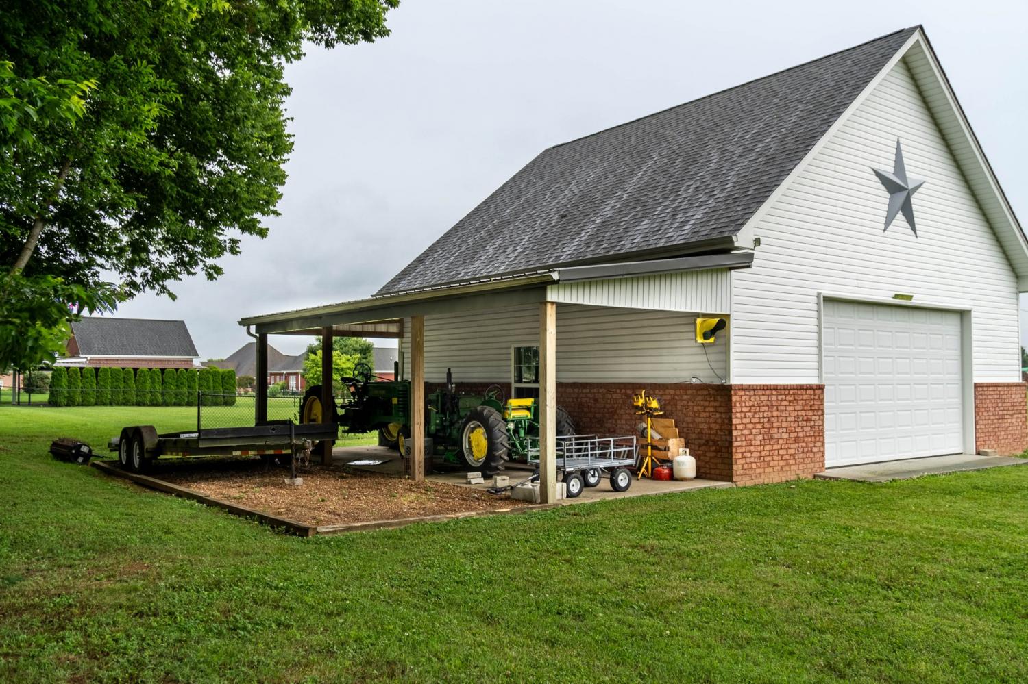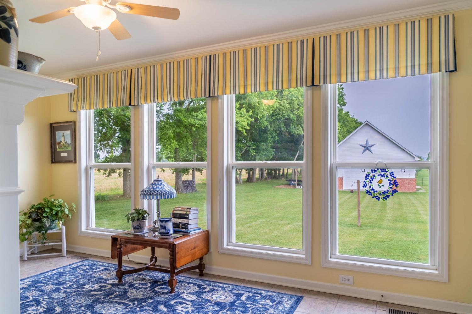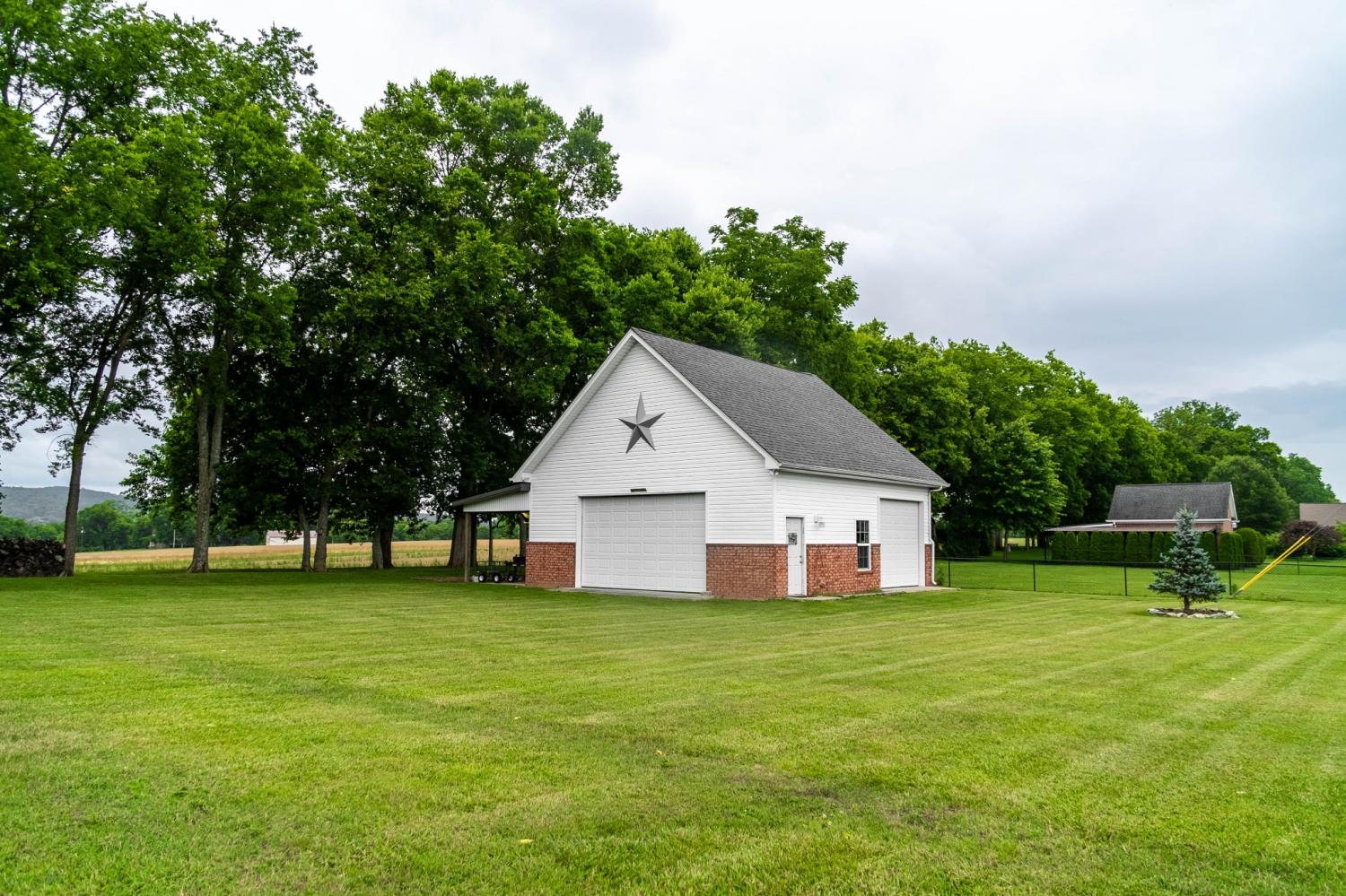 The last home before the farmland begins! Meticulously maintained and clean as a pin. You can sit in your 10x24 screened in back porch and watch the sunset, get some work done in your heated and cooled 30x30 shop, or sit by your see through fireplace in the sunroom. The downstairs is an open floorplan with the kitchen open to the living room and the breakfast nook with its built in bench storage. There is an ample pantry, formal dining room and only a couple of steps up from the garage to the main level. 3 bedroom septic system, but there is a room upstairs that could be used as a 4th. The shop has attic storage, a separate elec. meter and a 10x30 covered overhang. The shop cabinets stay along with the large star on the outside. no HOA. Primary Bedroom on the main floor. Be sure to search "324 Rock Bridge Road" on youtube for the video
