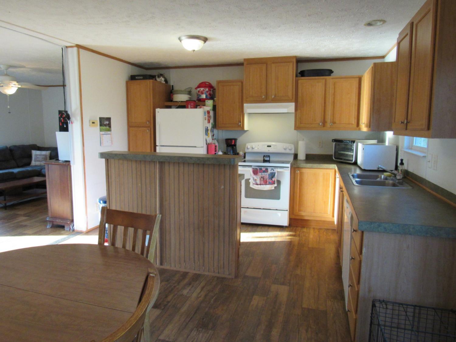 Welcome to your peaceful country retreat! This 3 bedroom, 2 bath manufactured home on a permanent foundation sits on 2 beautiful acres in a quiet setting. The split floor plan offers comfort and privacy, while the kitchen provides ample cabinet space and includes a stove, refrigerator, and dishwasher. The spacious master suite features double sinks and a large garden tub, perfect for relaxing at the end of the day. Outside, the wooded area behind the home offers a serene backdrop for outdoor living, with plenty of room for pets or small farm animals. Currently tenant-occupied, this property is ideal as an investment opportunity with a renter already in place. It also offers wonderful potential for a first-time homeowner seeking affordable country living. Ask about the 1% lender incentive available to qualified buyers! Located in the Westside Elementary district, this home combines comfort, convenience, and quiet surroundings.