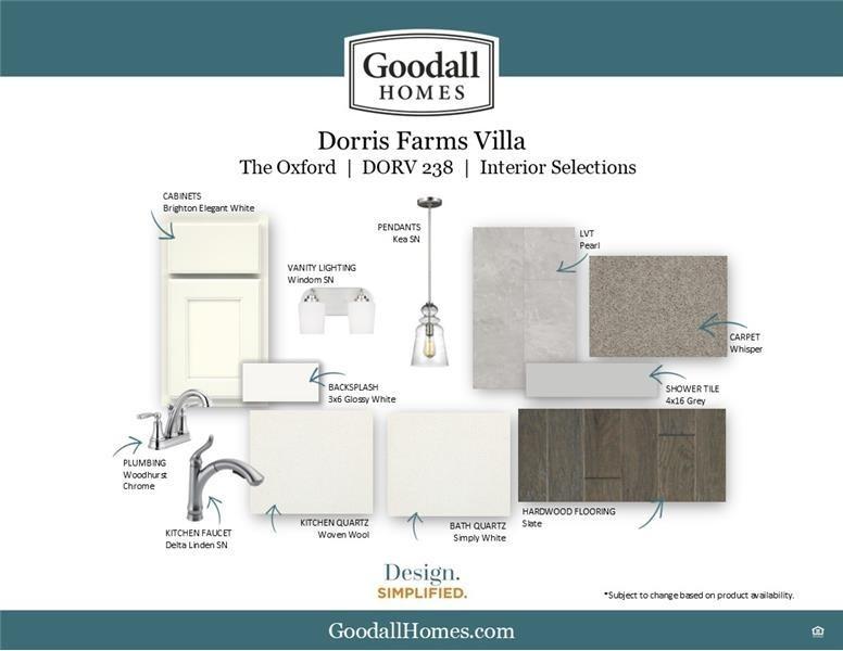 The Oxford Villa floorplan in our Dorris Farm community offers maintenance-free living!! This beautifully designed home features 3 bedrooms, 3 full baths, a sunroom, and an open-concept kitchen, dining, and great room that flows together effortlessly. Upstairs, you’ll find a versatile loft, third bedroom, and full bath — ideal for guests or additional living space. Interior selections by our Goodall Homes Design team include a light and bright kitchen with upgraded cabinets, countertops, and a stylish tile backsplash. The Owner’s Bath features an upgraded tile shower and quartz countertops, and the main living areas on the first floor include gorgeous hardwood flooring throughout. Located in Dorris Farm — Goodall’s newest community in White House — you’ll enjoy quiet surroundings, villa-style living, and easy access to I-65. Be sure to ask about our $10,000 closing cost incentive when using our preferred lender, Silverton Mortgage, and title company!