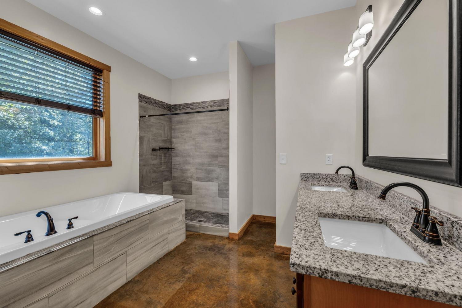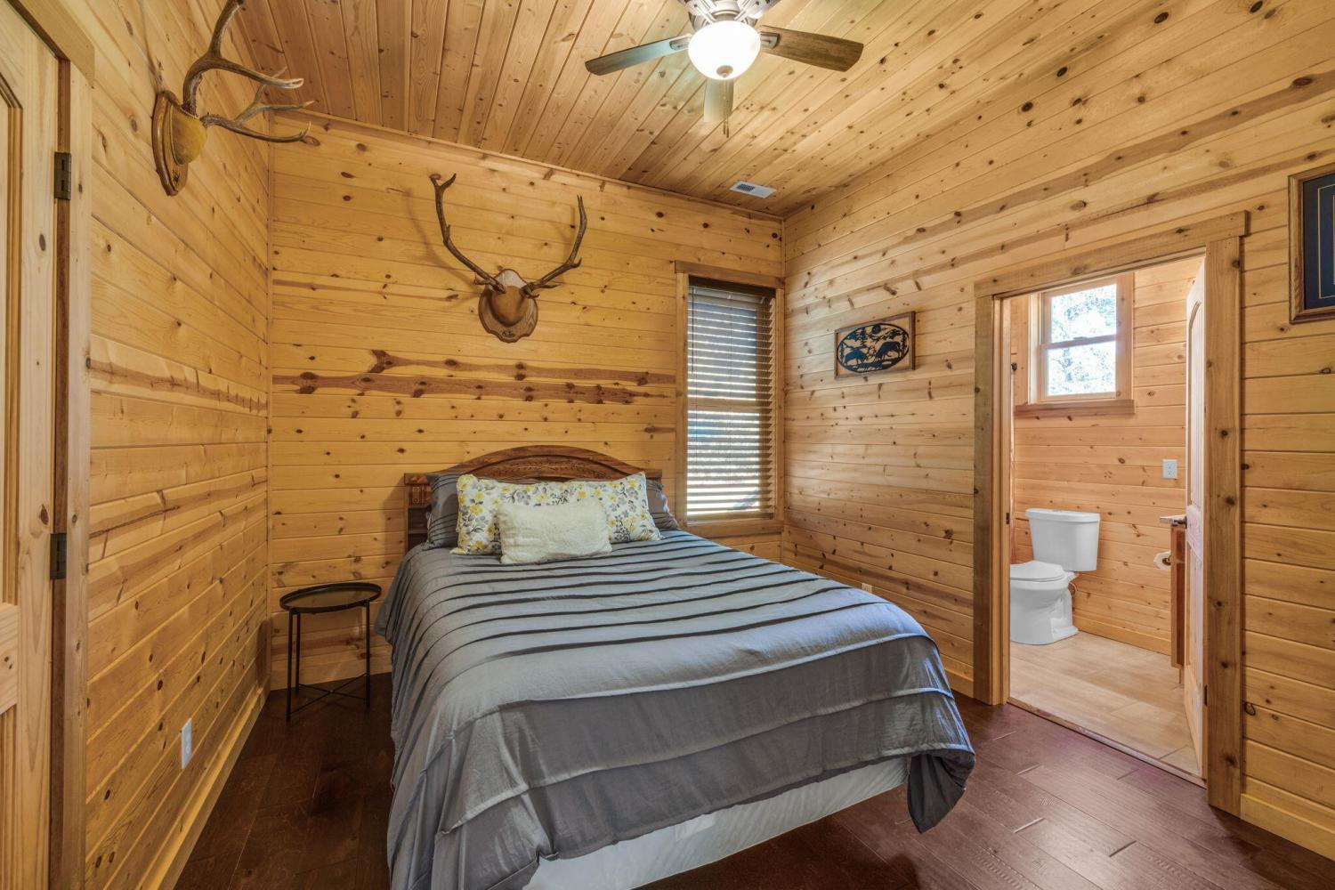 Welcome to this stunning 8 bedroom, 6.5 bathroom home with over 5,000 square feet of living space on over an acre of privacy in Chickamauga. From the wraparound driveway and 2-car garage to extra gravel parking, this property is designed for convenience. Inside, the foyer greets you with the tranquil aroma of pine walls and hardwood floors flowing throughout the main level. The spacious primary suite features double vanities, a garden tub, separate shower, and private sauna. Two additional bedrooms on the main level share a Jack-and-Jill bath, while a fourth has its own en-suite full bathroom. The chef's kitchen boasts a cooktop island, abundant storage, stainless steel Energy Star appliances, and opens into the dining room and great room with cathedral ceilings. A cozy fireplace in the great room makes it the perfect place to enjoy warm cocoa while watching the occasional winter snow fall through the large picturesque windows. Step outside to an expansive deck spanning the length of the home with a partially covered section for grilling or relaxing. A main-level laundry plus a stackable washer and dryer in the primary closet add convenience. Upstairs, a large bonus suite above the garage with a full bath offers flexible use, while a massive floored attic provides storage or future expansion. The basement is a full mother-in-law suite with over 2,300 sq ft, featuring 3 bedrooms, 2 baths (including a basement primary), a kitchen, living room with fireplace, laundry, home theatre, and freshly glazed concrete floors. A covered patio runs the length of the home for additional entertaining space. The backyard offers a chicken coop, garden space, and frequent deer sightings—your own private retreat. If you've been searching for space, comfort, and versatility in a serene setting, this Chickamauga property delivers it all.