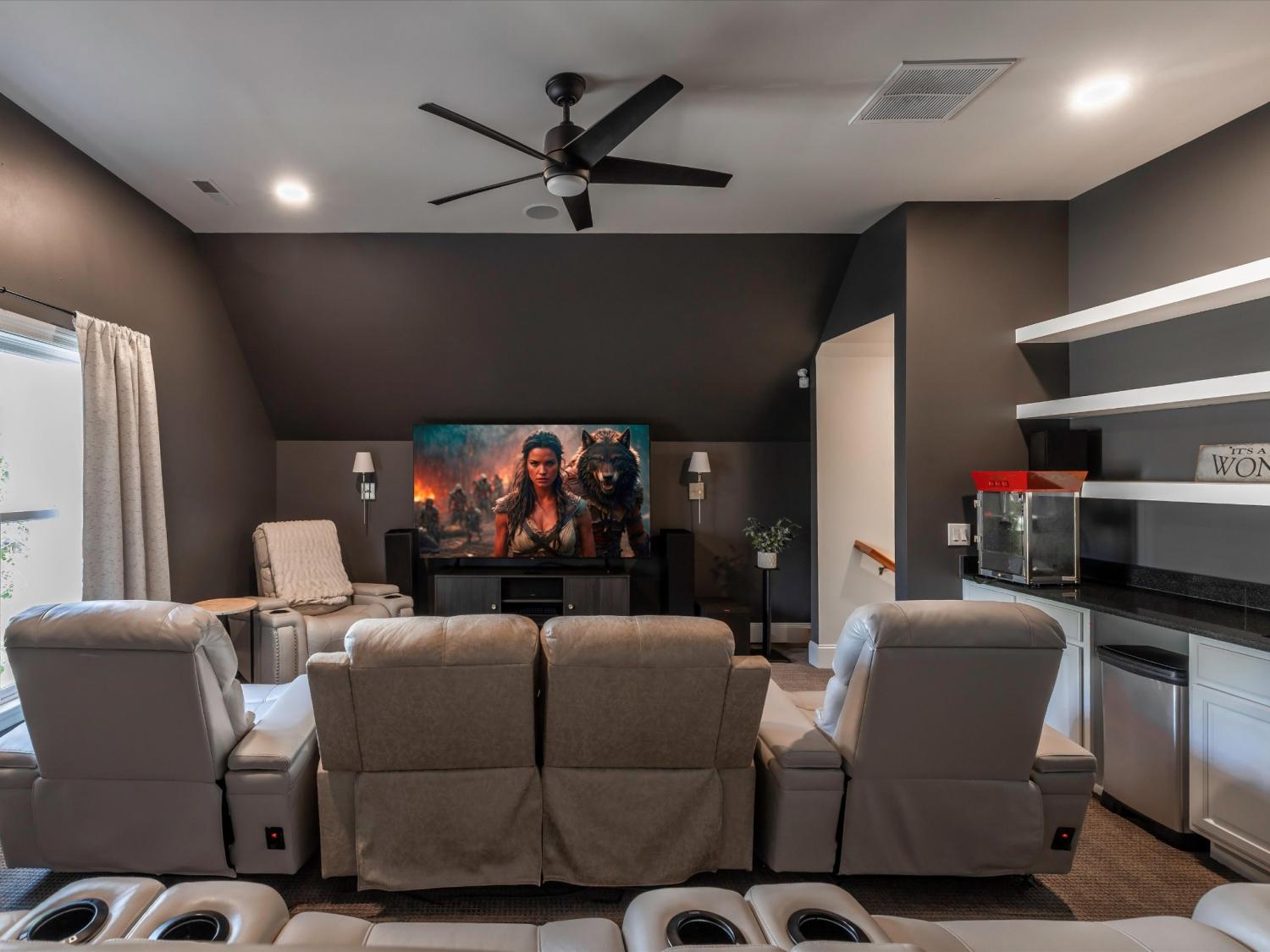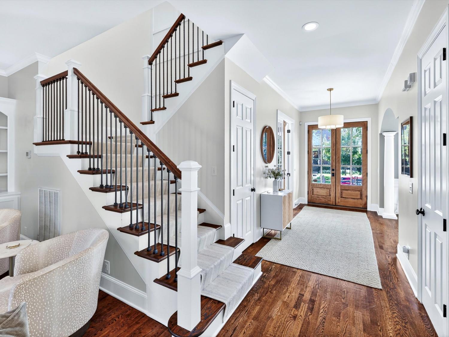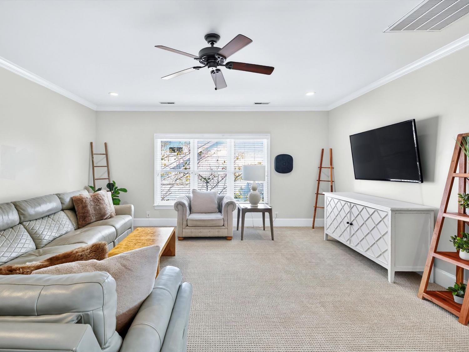 Beautiful renovated home in Tollgate! 4 beds, 3.5 baths, 4036 sq ft with an open floor plan, hardwood floors, gorgeous updated chef's kitchen with custom cabinets, large island, double ovens! Large owner suite on main level with custom closets and french doors leading to screened-in porch and courtyard. 3 bedrooms and large bonus room upstairs with finished gym, new HVAC units (installed 2020-2021), home theater space over garage with wet bar and half bath and has a separate entrance, all bedrooms & front office have walk-in closets, gas fireplace & built-ins in living room. Enormous amount of walk-in storage on the second floor. . Resort style amenities: sidewalks, pool, club house, weight room, park, dog park, trails, basketball court, tennis courts.