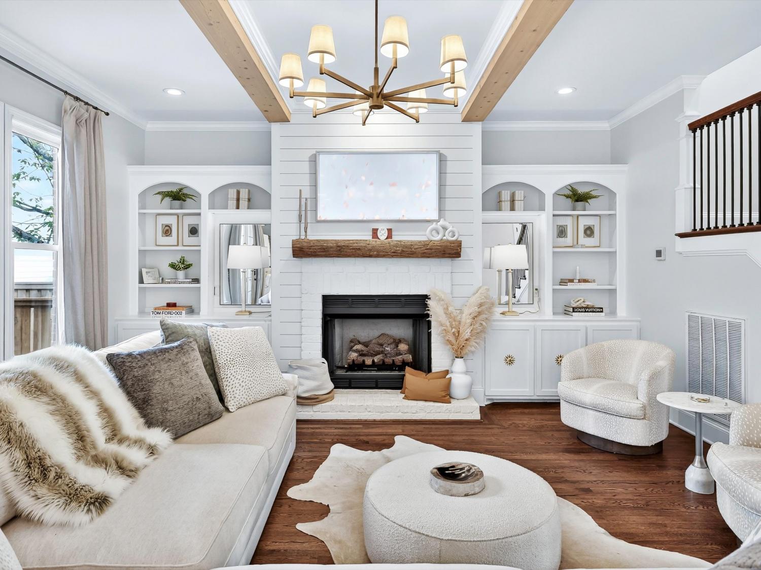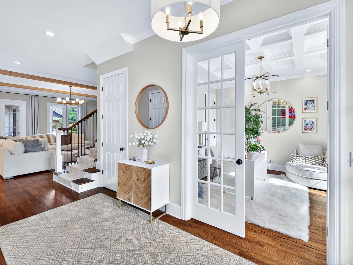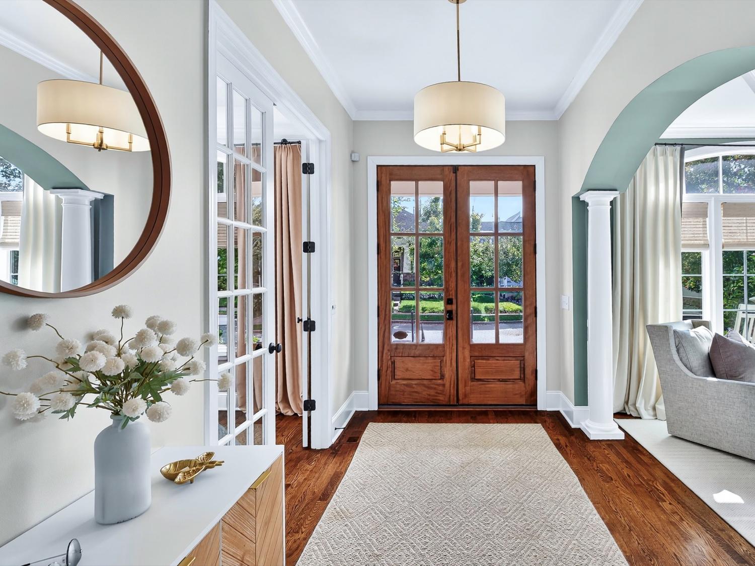 Beautiful renovated home in Tollgate! 4 beds, 3.5 baths, 4036 sq ft with an open floor plan, hardwood floors, gorgeous updated chef's kitchen with custom cabinets, large island, double ovens! Large owner suite on main level with custom closets and french doors leading to screened-in porch and courtyard. 3 bedrooms and large bonus room upstairs with finished gym, new HVAC units (installed 2020-2021), home theater space over garage with wet bar and half bath and has a separate entrance, all bedrooms & front office have walk-in closets, gas fireplace & built-ins in living room. Enormous amount of walk-in storage on the second floor. . Resort style amenities: sidewalks, pool, club house, weight room, park, dog park, trails, basketball court, tennis courts.