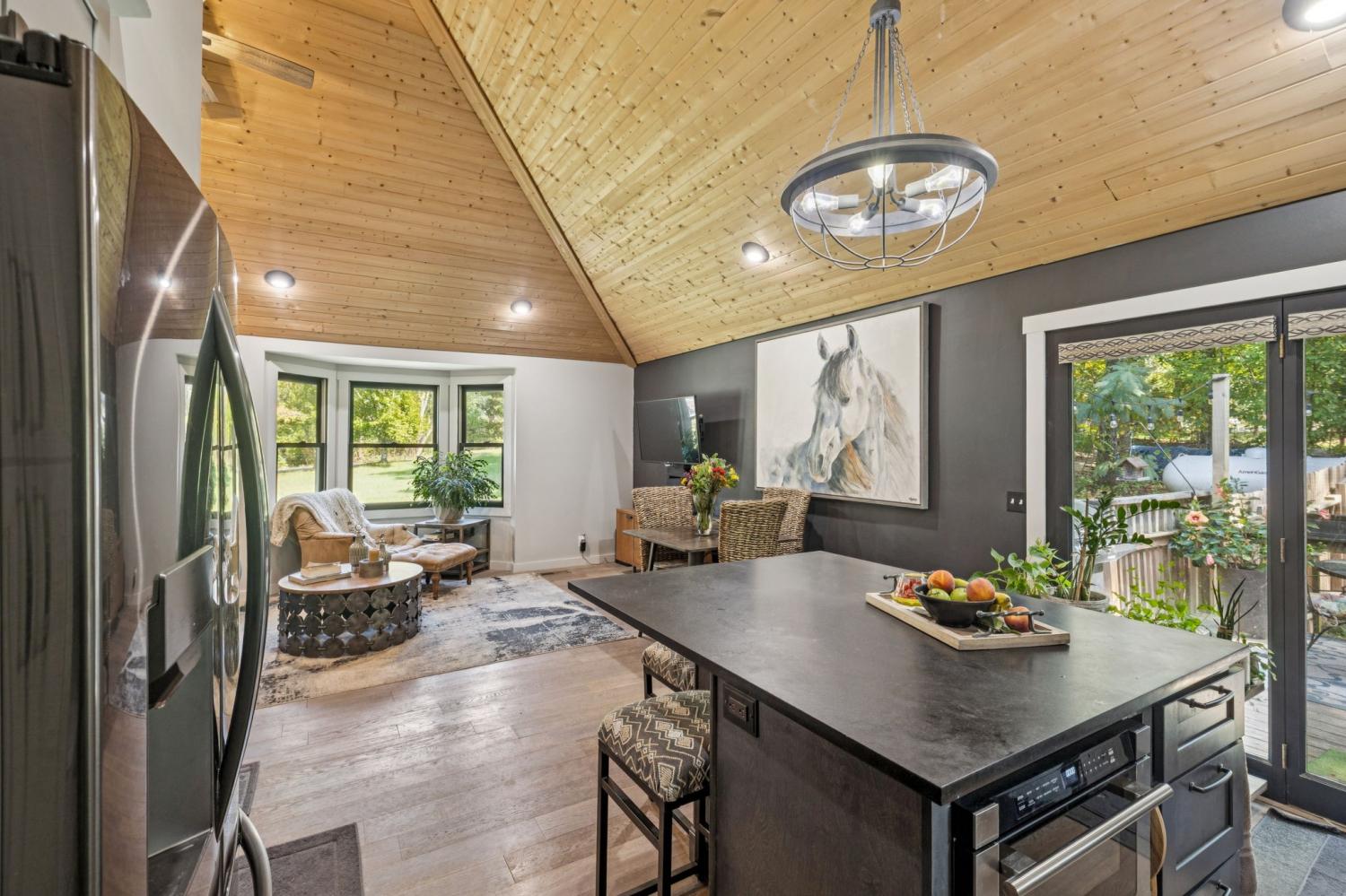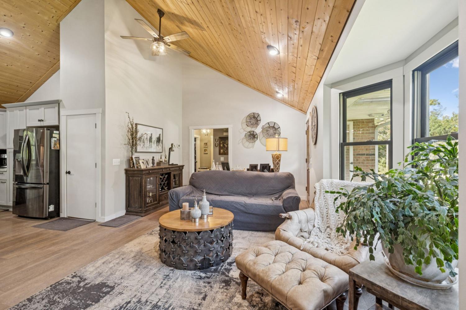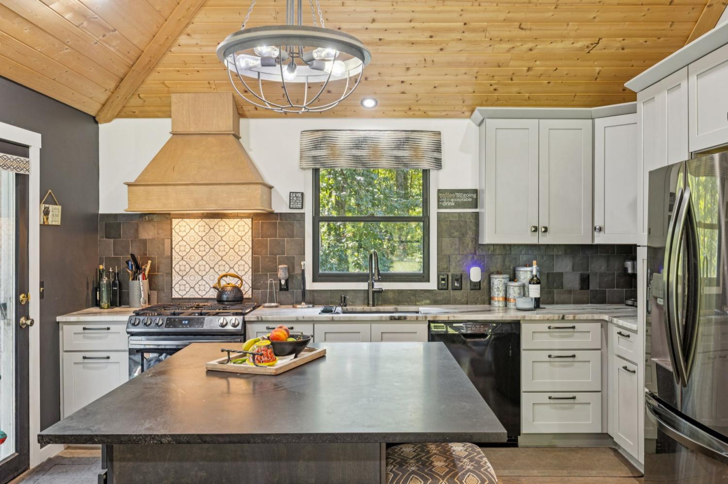 Charming brick home with full basement, located on a quiet cul de sac in an established, smaller neighborhood. Conveniently located just off of Hwy 100 in Lyles, TN on a lush, wooded 4.2 acred lot. Just minutes from Dickson, Fairview, Centerville and 840. This home has been completely renovated with high-end beautiful finishes. Fabulous new kitchen with a large island, built-in microwave drawer, pantry with roll-out drawers! All natural stone countertops throughout the home, raidiant floor heating in principal bathroom. 16 ft vaulted tongue and groove ceiling with wood beam in kitchen/family room - open concept. All new tile in bathrooms. Basement has a coal/woodburning stove and chimney that remains. Survey done in 2024 so lot is flagged and marked. Shed is negotiable! The 4 large lava rocks in the front landscaping and the stone dobermans at the garage DO NOT stay and are not negotiable. This home is move in ready! Seller travels for work so showings need to be scheduled several days in advance, if possible.