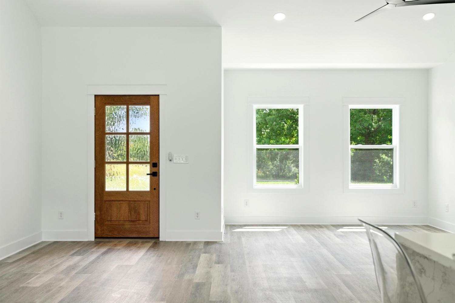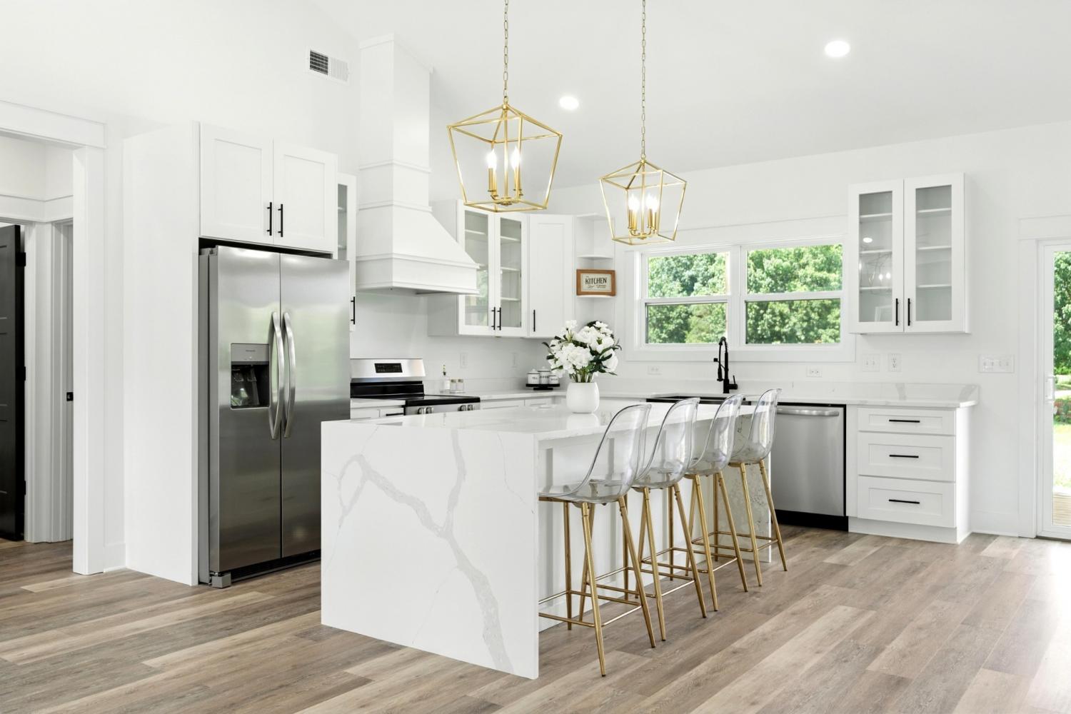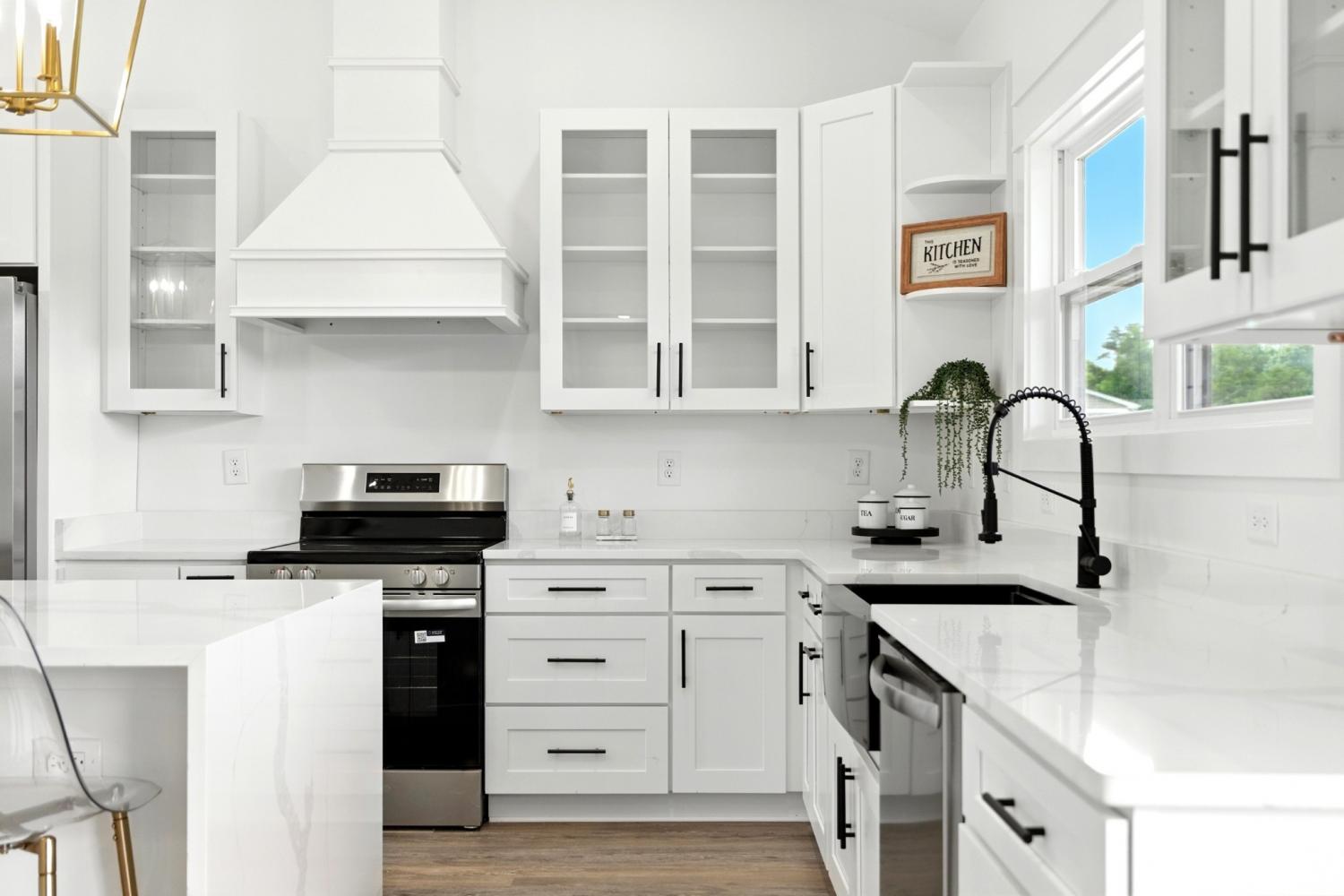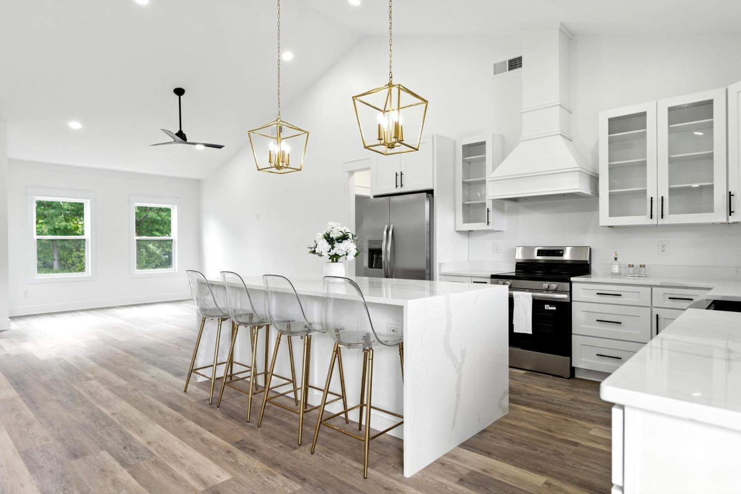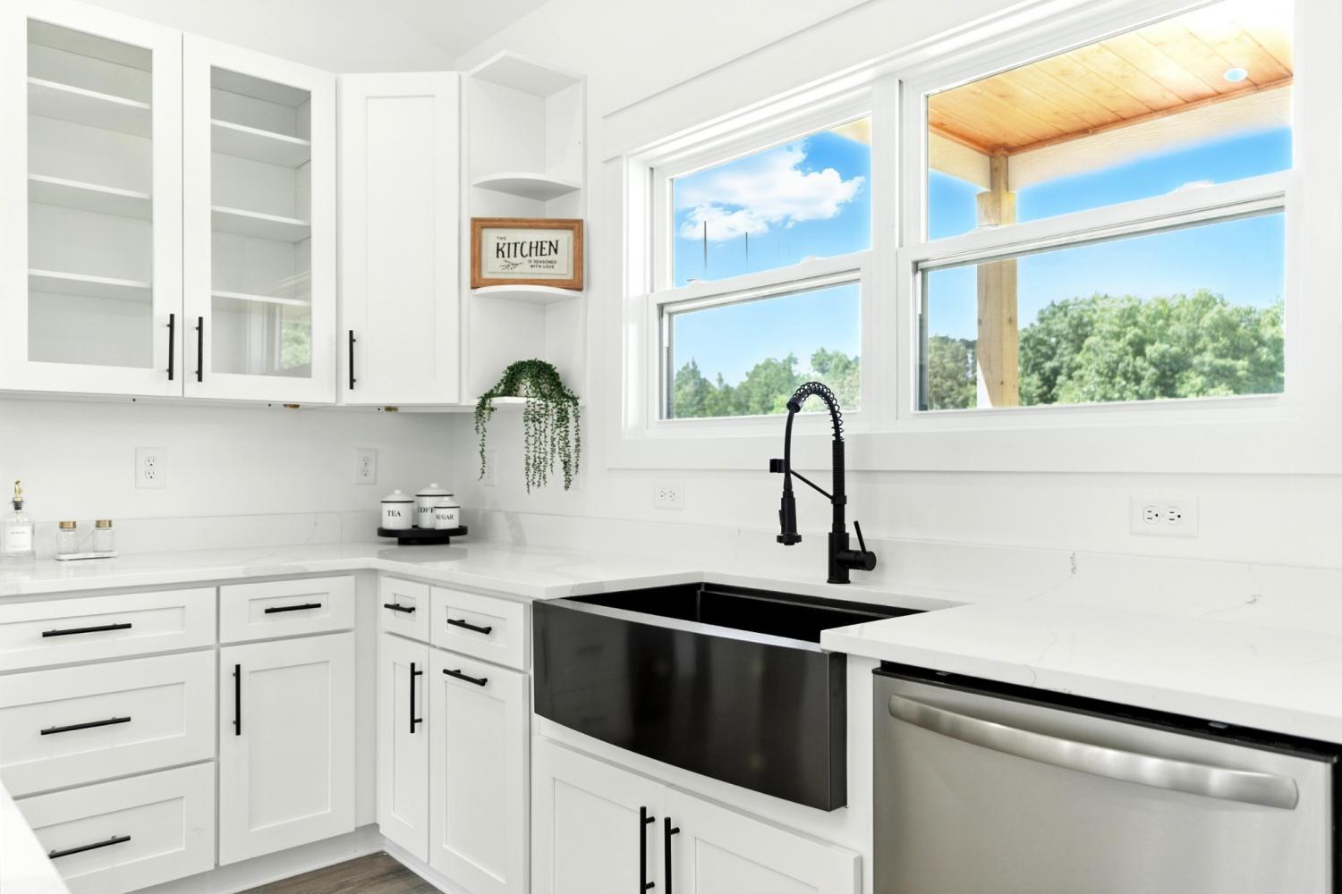 This home is the perfect fusion of clean, contemporary lines and warm traditional charm~located within 45 minutes of Downtown Nashville, close to the Cumberland River access points in Cheatham County and still enough space to plant your own garden and FISH YOUR OWN POND. Sleek finishes like matte black hardware, quartz countertops, upgraded cabinetry with glass fronts, stainless appliances, modern lighting, off black doors, oversized laundry room, upgraded luxury vinyl plank flooring, crisp white walls and beautiful custom tile bathrooms set this home apart. Beautiful views of your own STOCKED pond from the covered back deck make this home one of a kind!