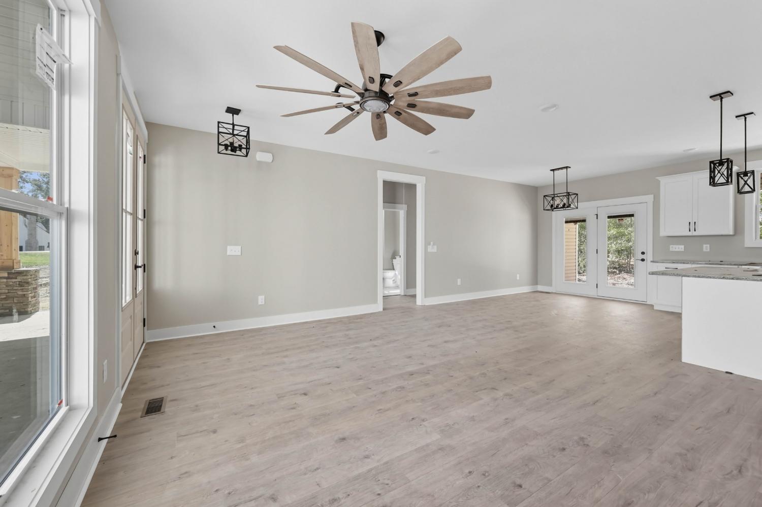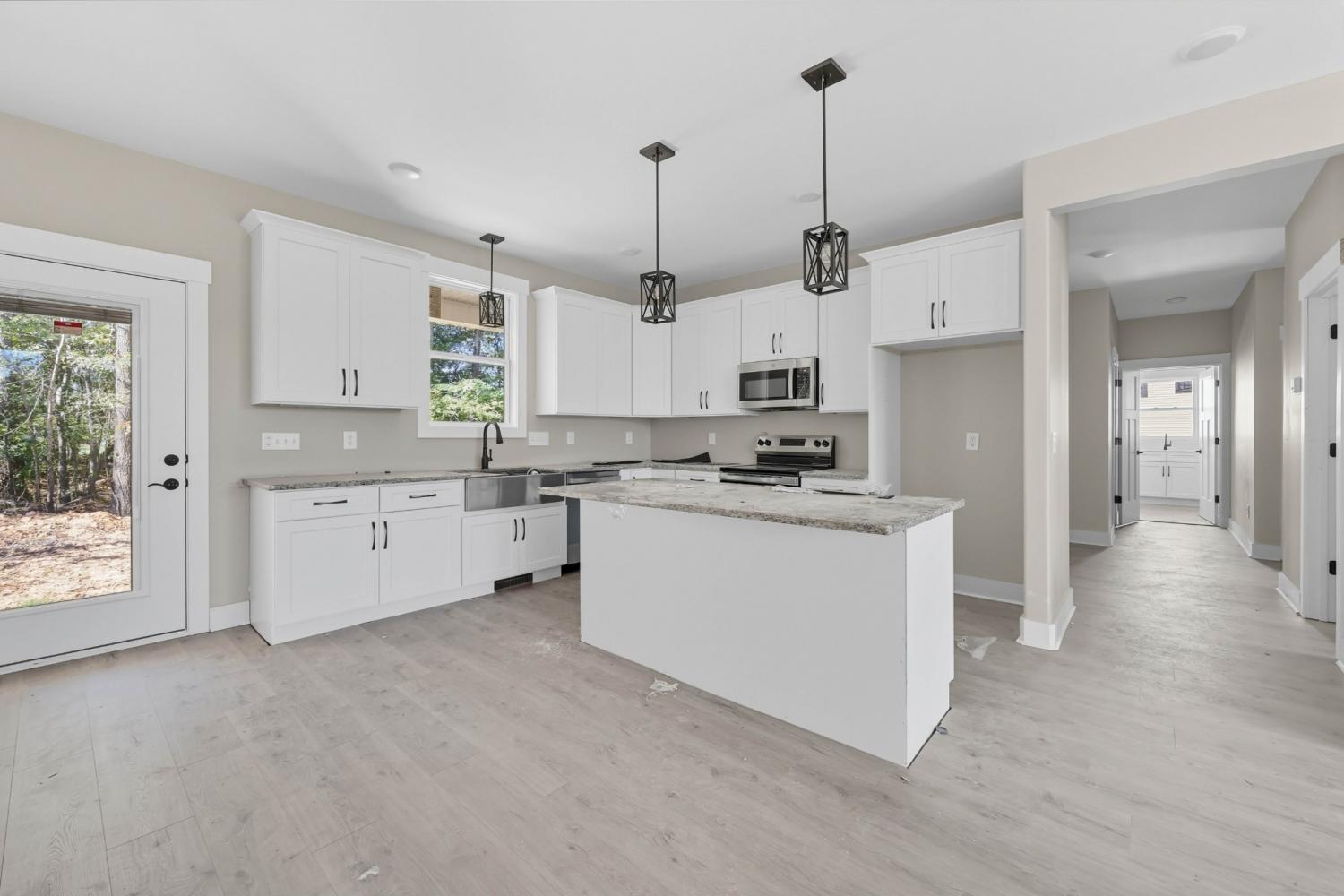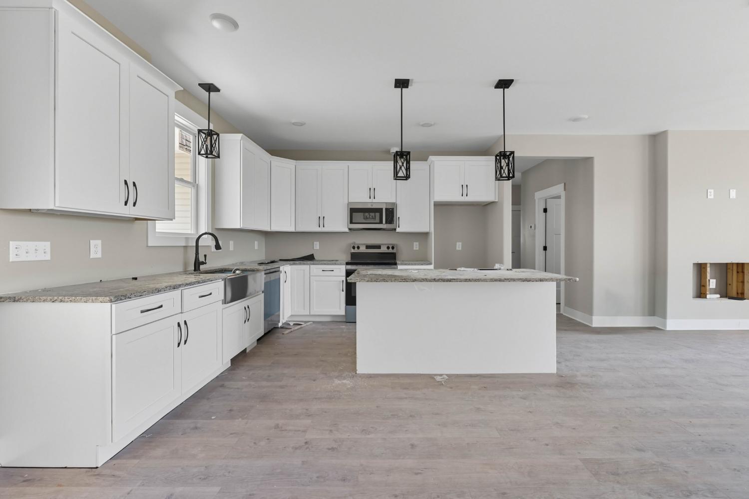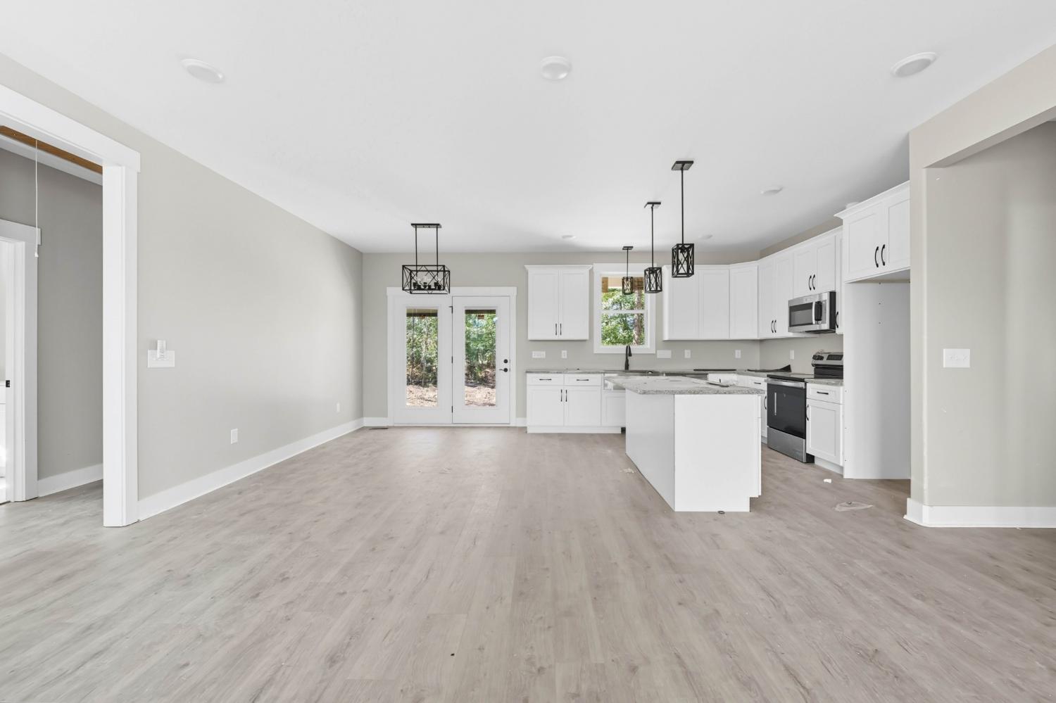 Beautiful 3 Bedrooms/2.5 Bathroom Ranch Sitting on 1.54 Wooded Acres with modern touches! The front of this one will catch your eye instantly with the beautiful stone finishes! Open concept split floorplan showcasing an Entertainer's kitchen featuring an island (with not one, but two outlets for convenience), and a walk in pantry with custom wood shelving. LVP throughout main living and primary bedroom - tile in bathrooms & laundry room. Living room with an electric fireplace. Primary suite offers custom shelving in the closet, a standalone bathtub, tiled shower from floor to ceiling, and double vanity. But, there's more - Laundry room with cabinets & built in sink! This home has everything you've ever wanted & more! High Speed Internet Available! The builder is offering up to 3% of purchase price towards buyers closing costs, concessions, rate buy down, etc with a FP offer!