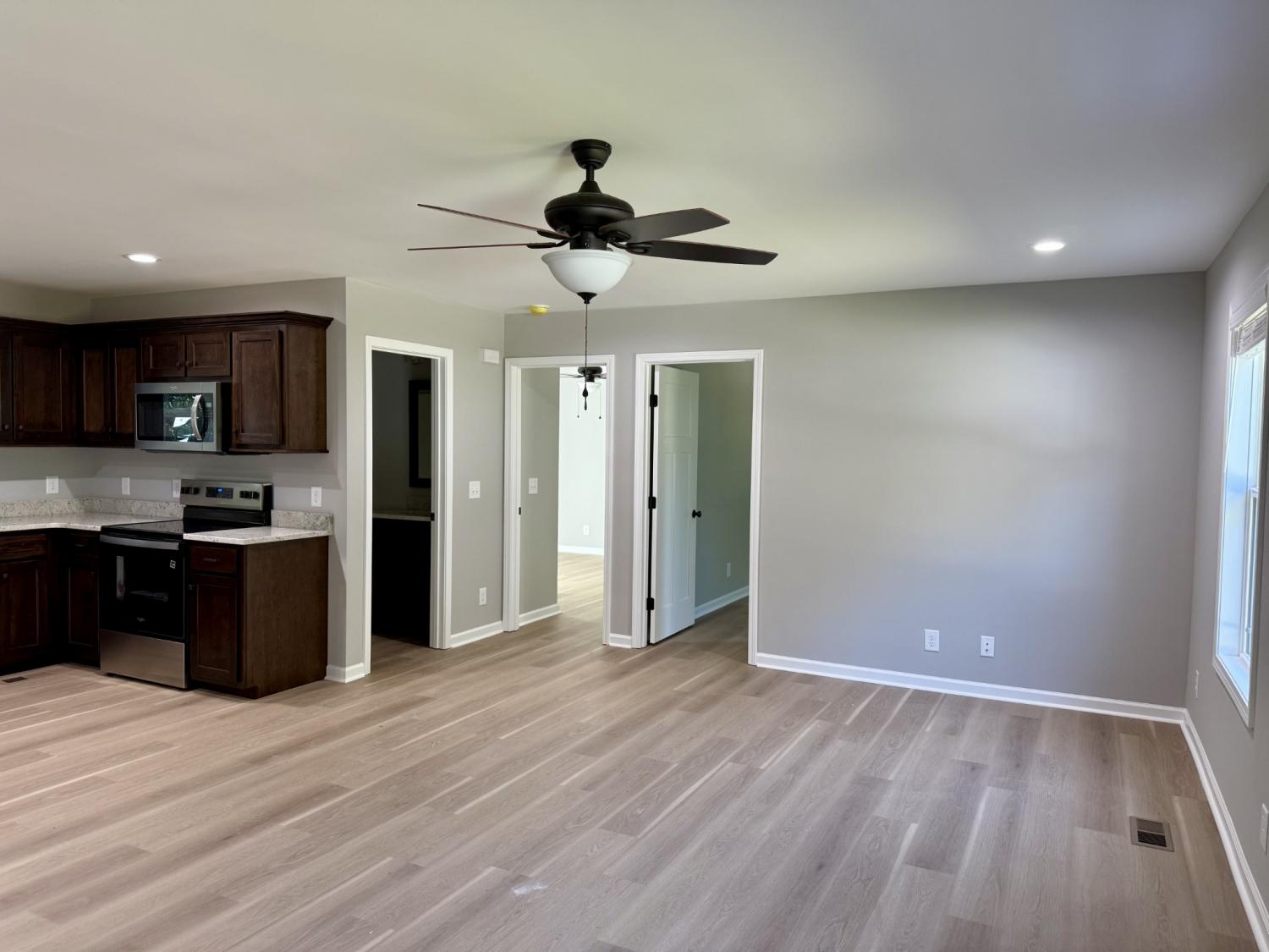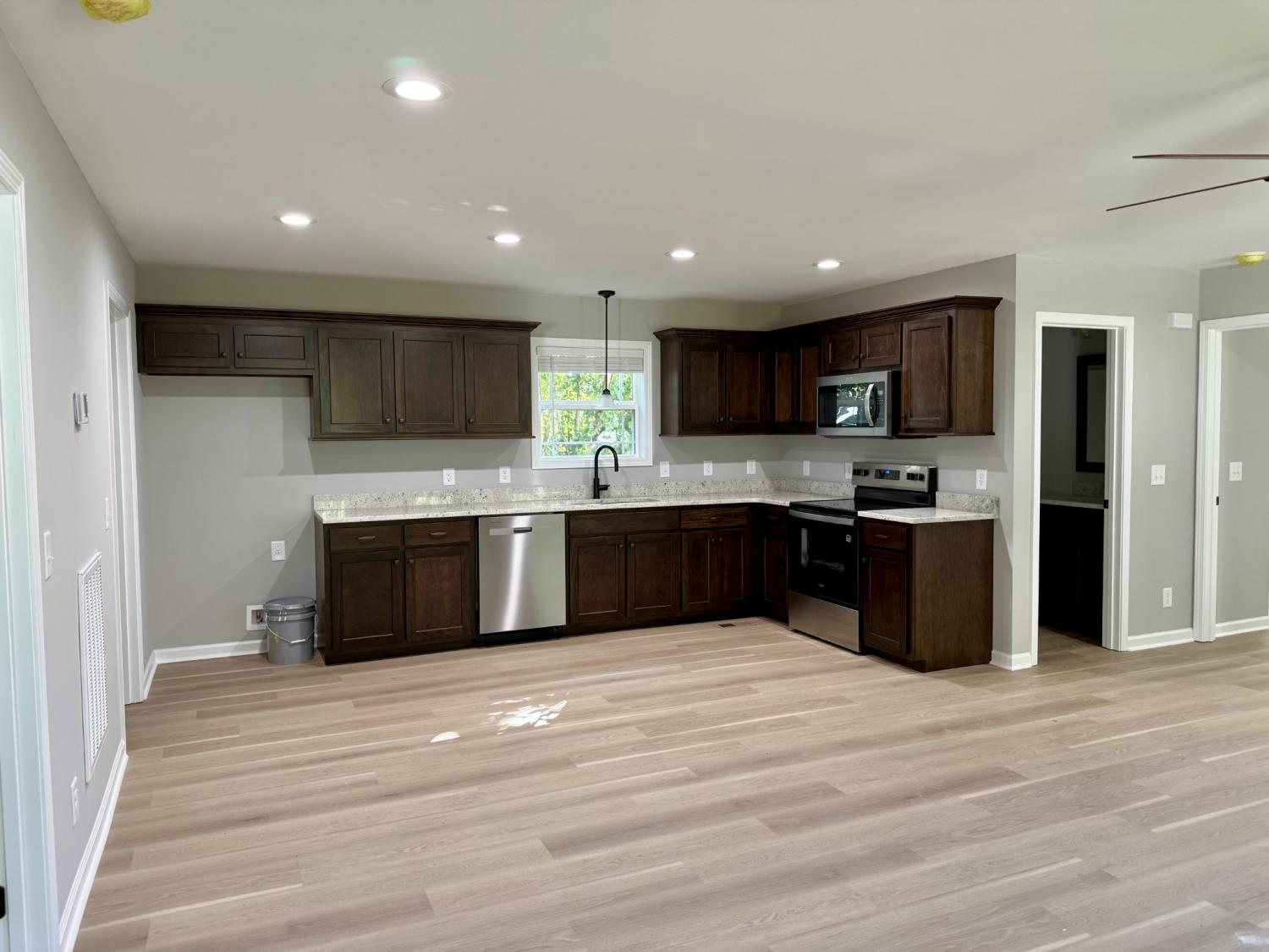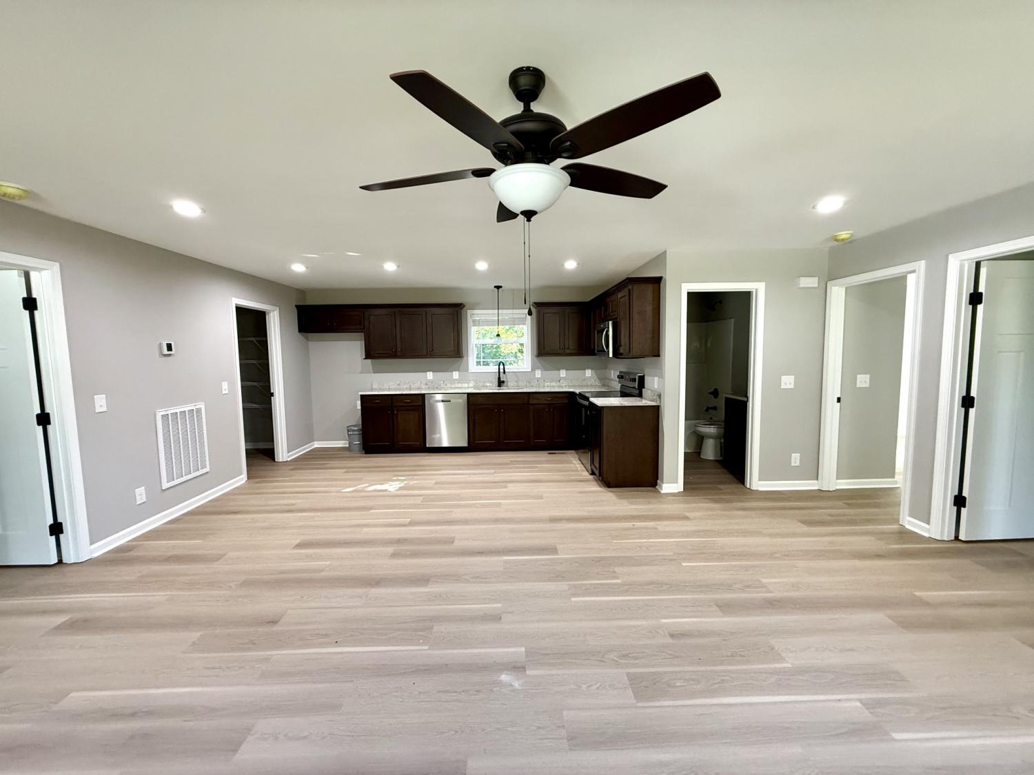 This 3 bedroom 2 bath home features a clean, sleek exterior with a welcoming stoop. The airy floor plan connects the living room, kitchen and dining area making it perfect for entertaining or daily life. Luxury vinyl plank flooring provides a modern look that is both highly durable and easy to maintain. The kitchen offer ample custom built cabinets with granite counter tops. The primary bedroom has a walk in closet and en suite bathroom while the additional bedrooms are spacious and share a well appointed bathroom. A fence will be installed on the right side of the house.