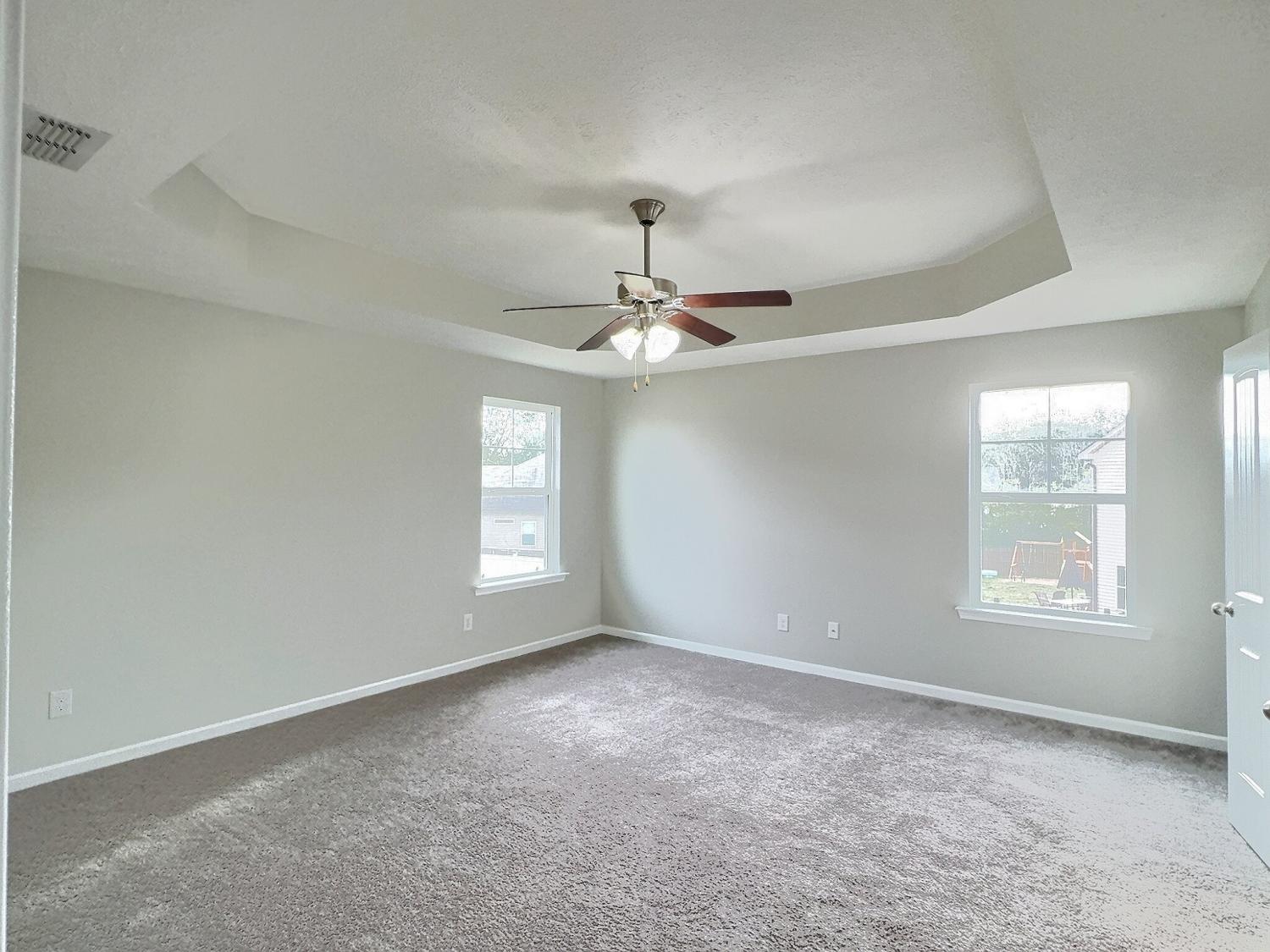 This home is truly a showstopper, beautifully upgraded and move-in ready with NO HOA! The expansive open floor plan features hardwood floors throughout the main level, creating a seamless flow. Enjoy formal dining with a charming chandelier and elegant wainscoting. The kitchen boasts white cabinetry and stainless steel appliances, perfect for any home chef. Upstairs, the owner's suite offers a serene retreat with a tray ceiling, updated lighting, and a luxurious glamour bath. Stylish, decorative paint colors throughout, and the drapery is included. The second level also features two generously sized guest rooms and a bright, airy bonus room. Nestled in a peaceful cul-de-sac with a stunning exterior and curb appeal, this home also includes a two-car attached garage. Don't miss the chance to make this almost-new home yours!