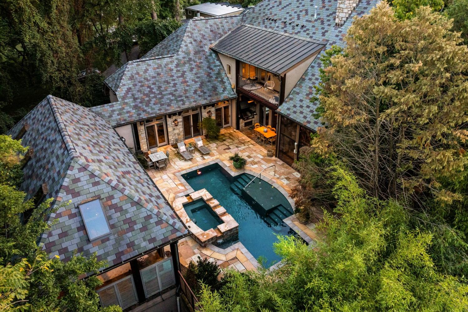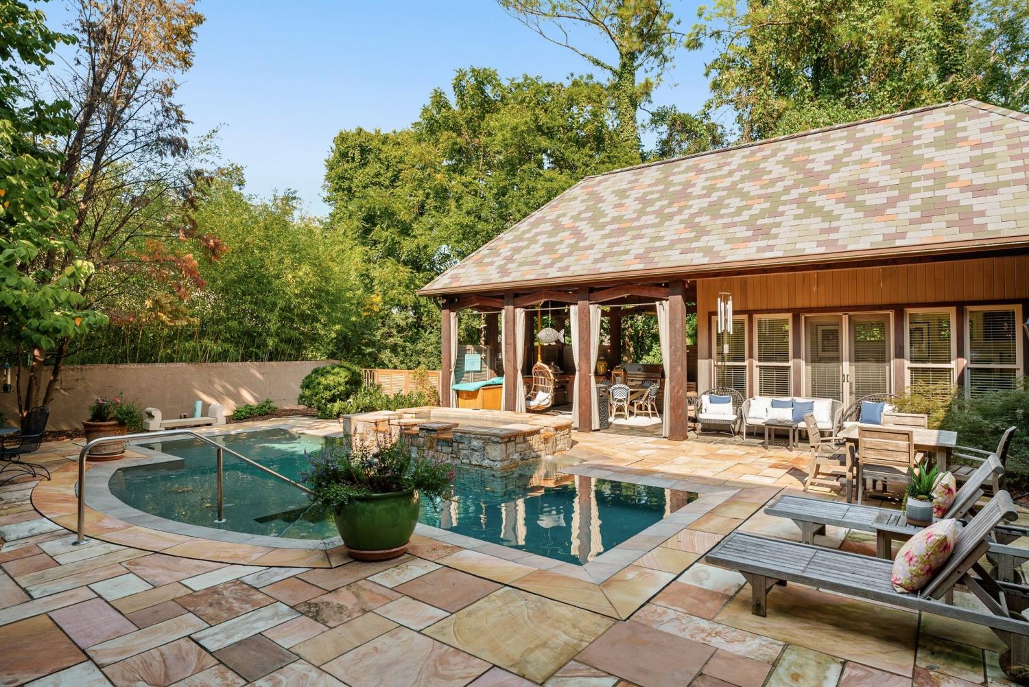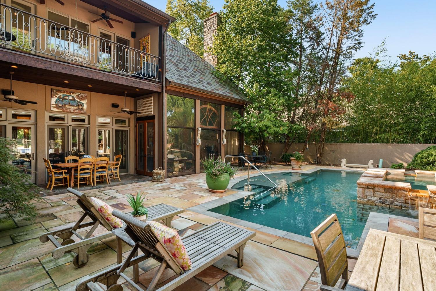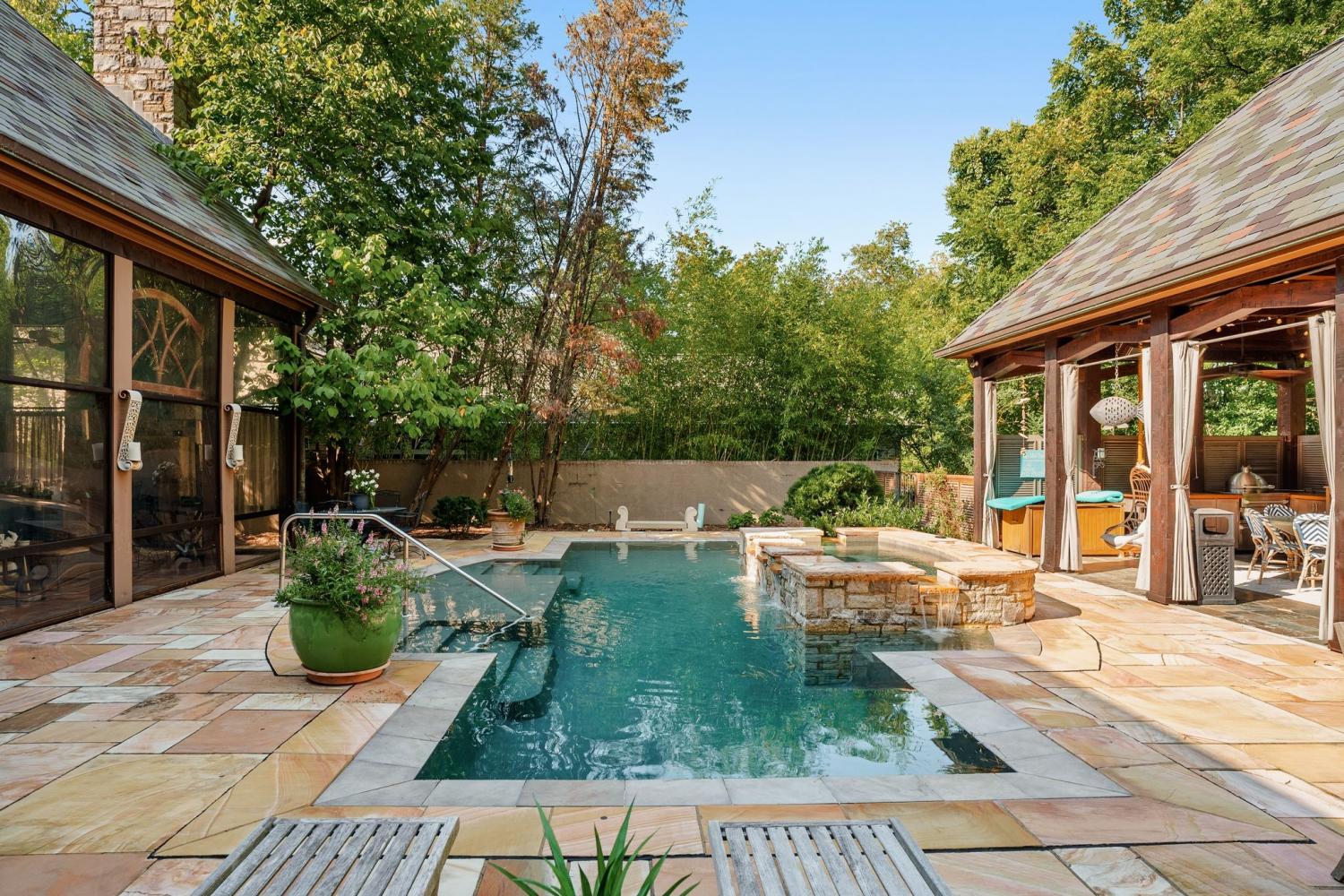 Welcome to 4106 Sneed Road, one of the most distinctive addresses in Green Hills. Built by the late Rogan Allen—one of Nashville’s most prolific builders—as his personal residence, this home showcases timeless design and an exceptional outdoor living experience. The main level is crafted for both everyday living and entertaining, featuring a gourmet kitchen with Wolf + Sub-Zero appliances, custom cabinetry, and seamless flow to formal and casual spaces including a sunroom, dining room, and private screening room. The main-level primary suite is a true retreat, complemented by a handsome wood-paneled office/sitting room for refined work-from-home ease. An elevator provides effortless access to all levels, while a temperature-controlled wine cellar ensures your collection is always ready for entertaining. Upstairs, three spacious ensuite bedrooms and a versatile bunk room with kitchenette provide comfort and privacy for family and guests alike. Outdoors, enjoy a resort-style pool, hot tub, and a private pool house—perfect as a guest retreat, fitness studio, or stylish cabana. Two outdoor grill areas and meticulously landscaped grounds create an unparalleled setting for entertaining and relaxation. Ideally located just moments from the Hill Center and the Mall at Green Hills, with quick access to Downtown Nashville and the airport, 4106 Sneed Road combines timeless architecture with modern luxury living.