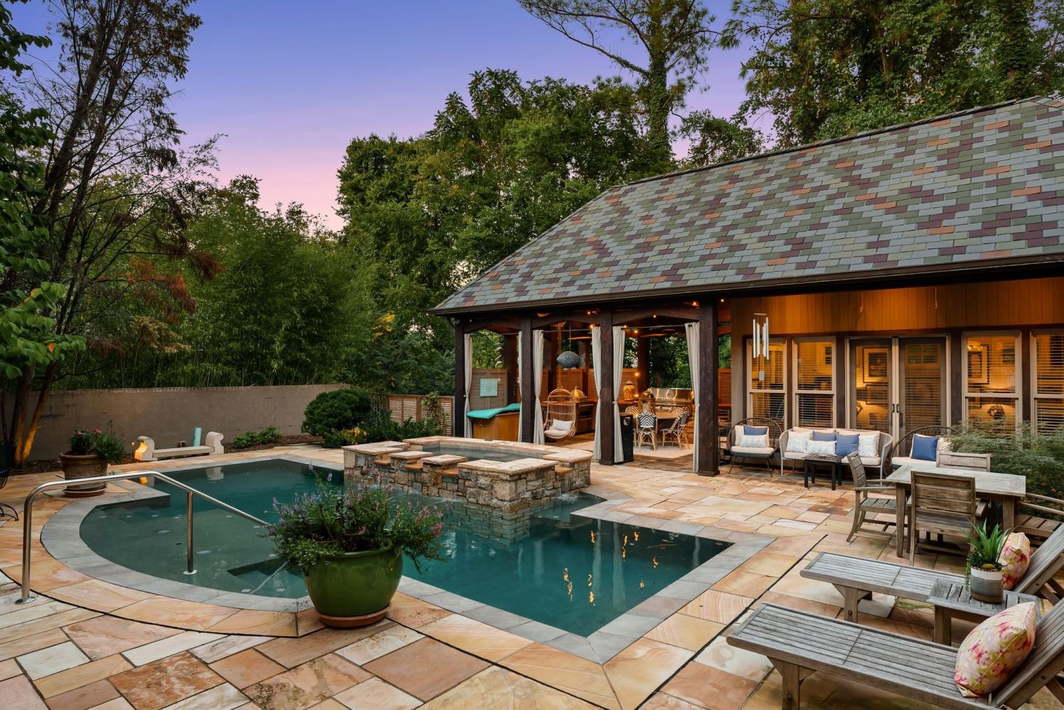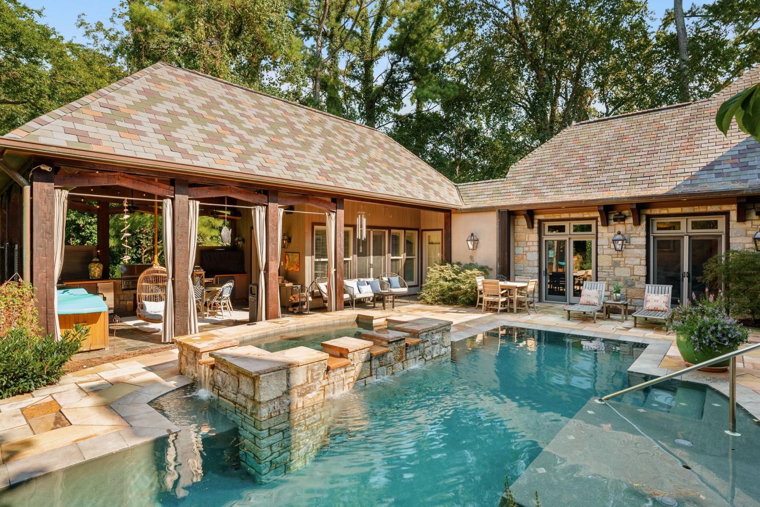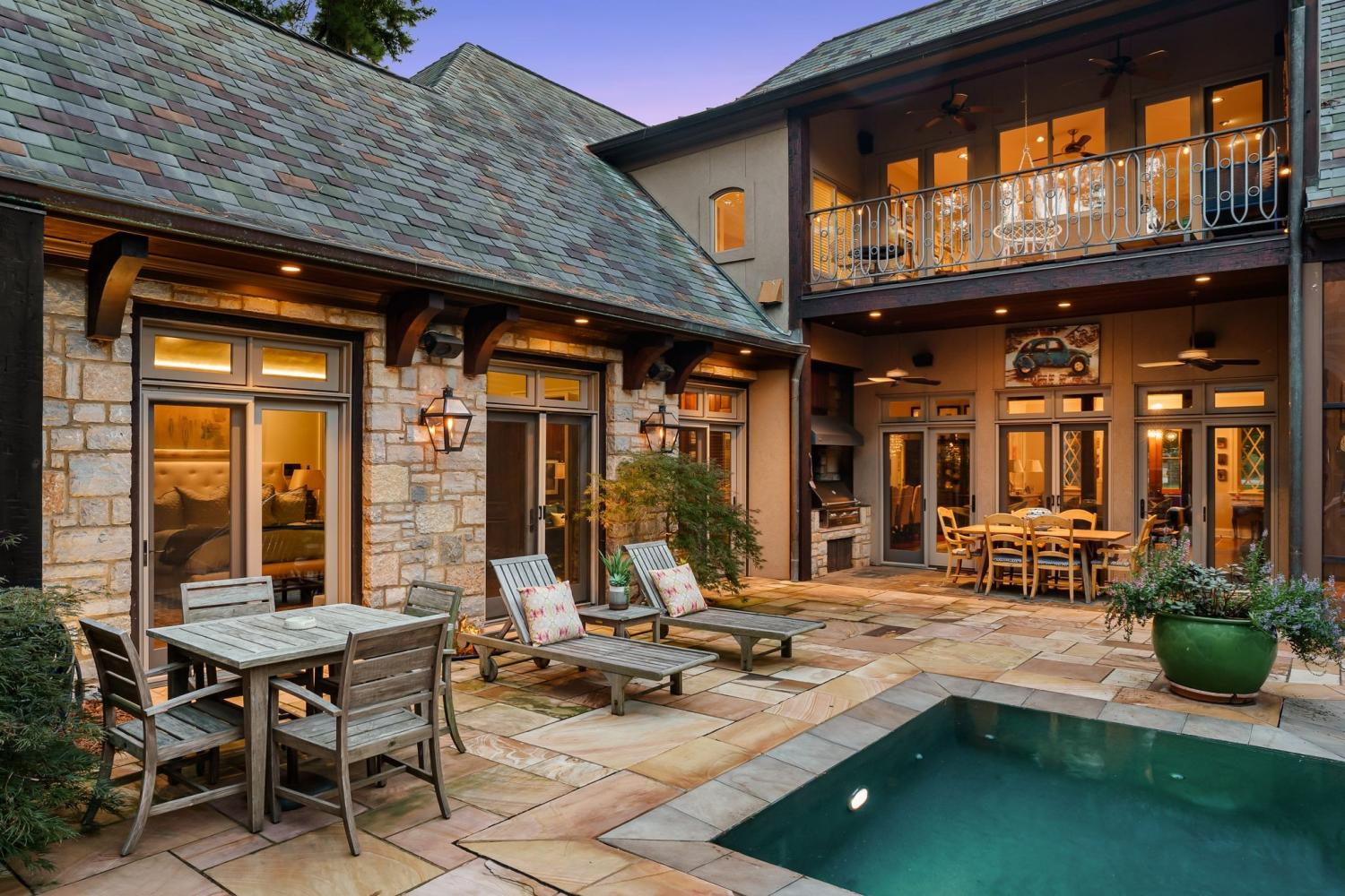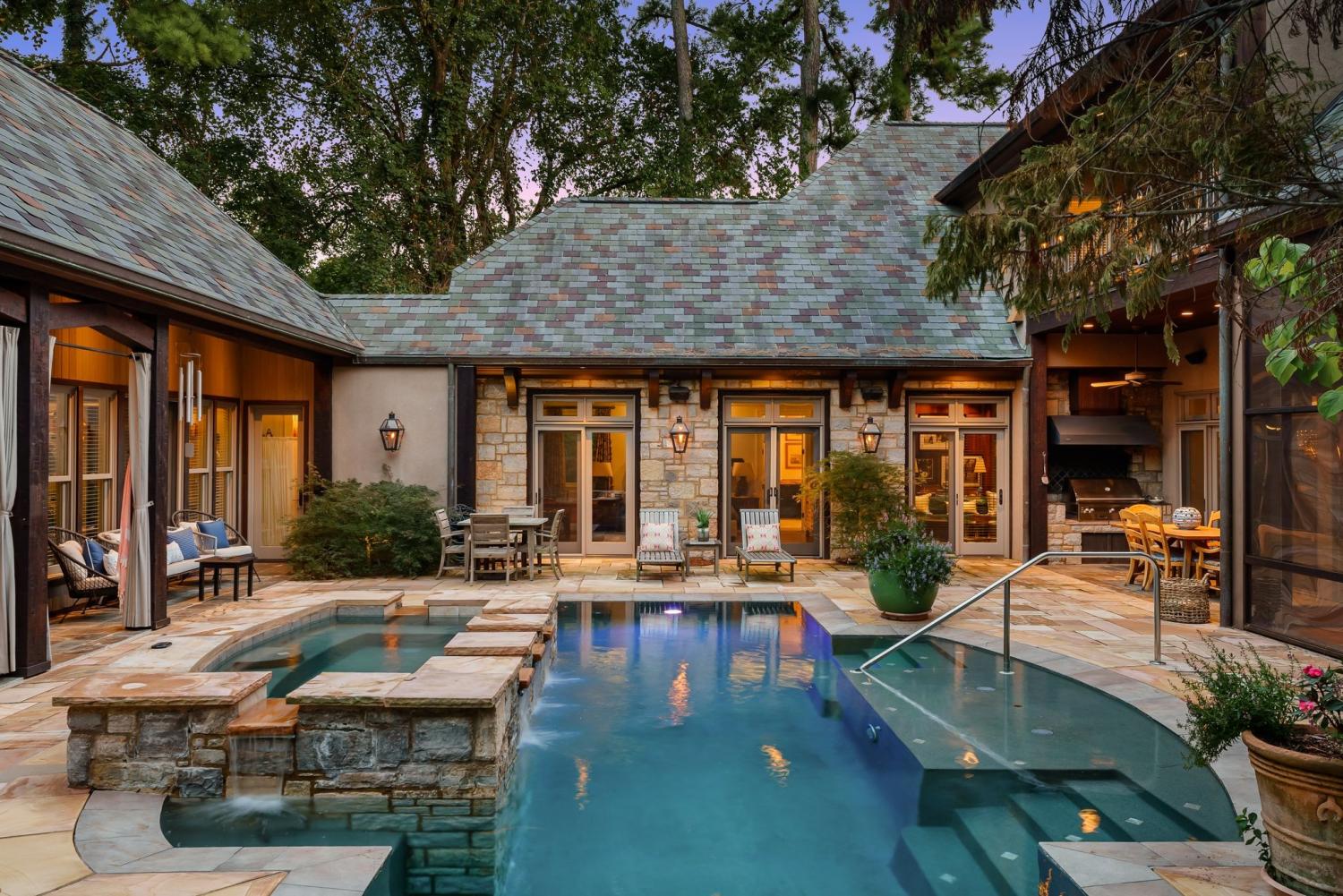 Welcome to 4106 Sneed Road, one of the most distinctive addresses in Green Hills. Built by the late Rogan Allen—one of Nashville’s most prolific builders—as his personal residence, this home showcases timeless design and an exceptional outdoor living experience. The main level is crafted for both everyday living and entertaining, featuring a gourmet kitchen with Wolf + Sub-Zero appliances, custom cabinetry, and seamless flow to formal and casual spaces including a sunroom, dining room, and private screening room. The main-level primary suite is a true retreat, complemented by a handsome wood-paneled office/sitting room for refined work-from-home ease. An elevator provides effortless access to all levels, while a temperature-controlled wine cellar ensures your collection is always ready for entertaining. Upstairs, three spacious ensuite bedrooms and a versatile bunk room with kitchenette provide comfort and privacy for family and guests alike. Outdoors, enjoy a resort-style pool, hot tub, and a private pool house—perfect as a guest retreat, fitness studio, or stylish cabana. Two outdoor grill areas and meticulously landscaped grounds create an unparalleled setting for entertaining and relaxation. Ideally located just moments from the Hill Center and the Mall at Green Hills, with quick access to Downtown Nashville and the airport, 4106 Sneed Road combines timeless architecture with modern luxury living.