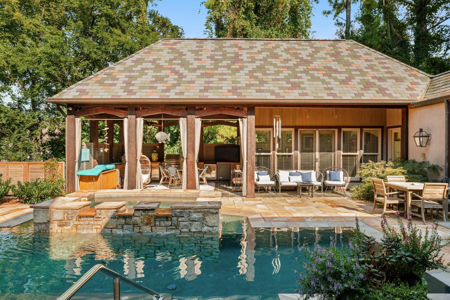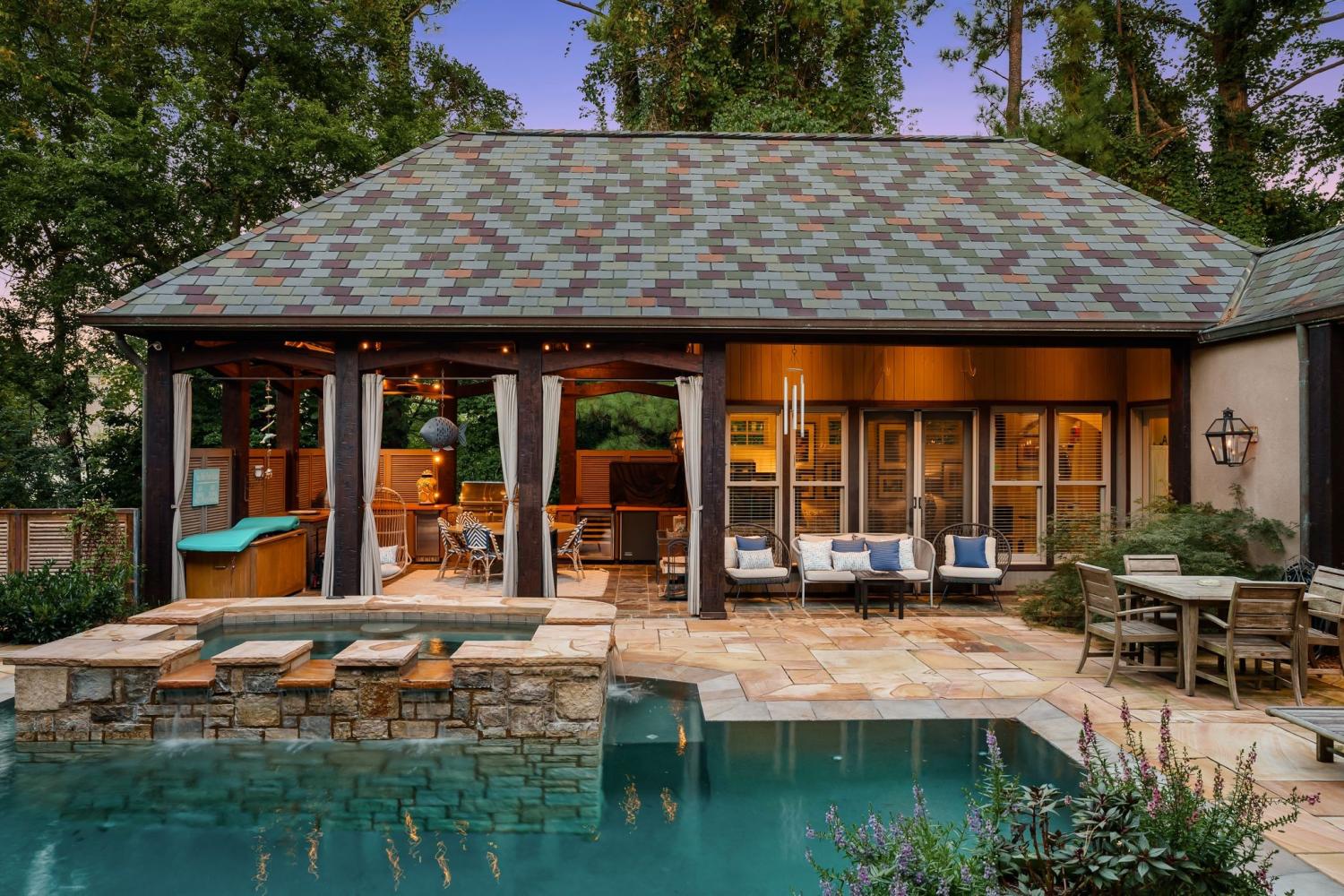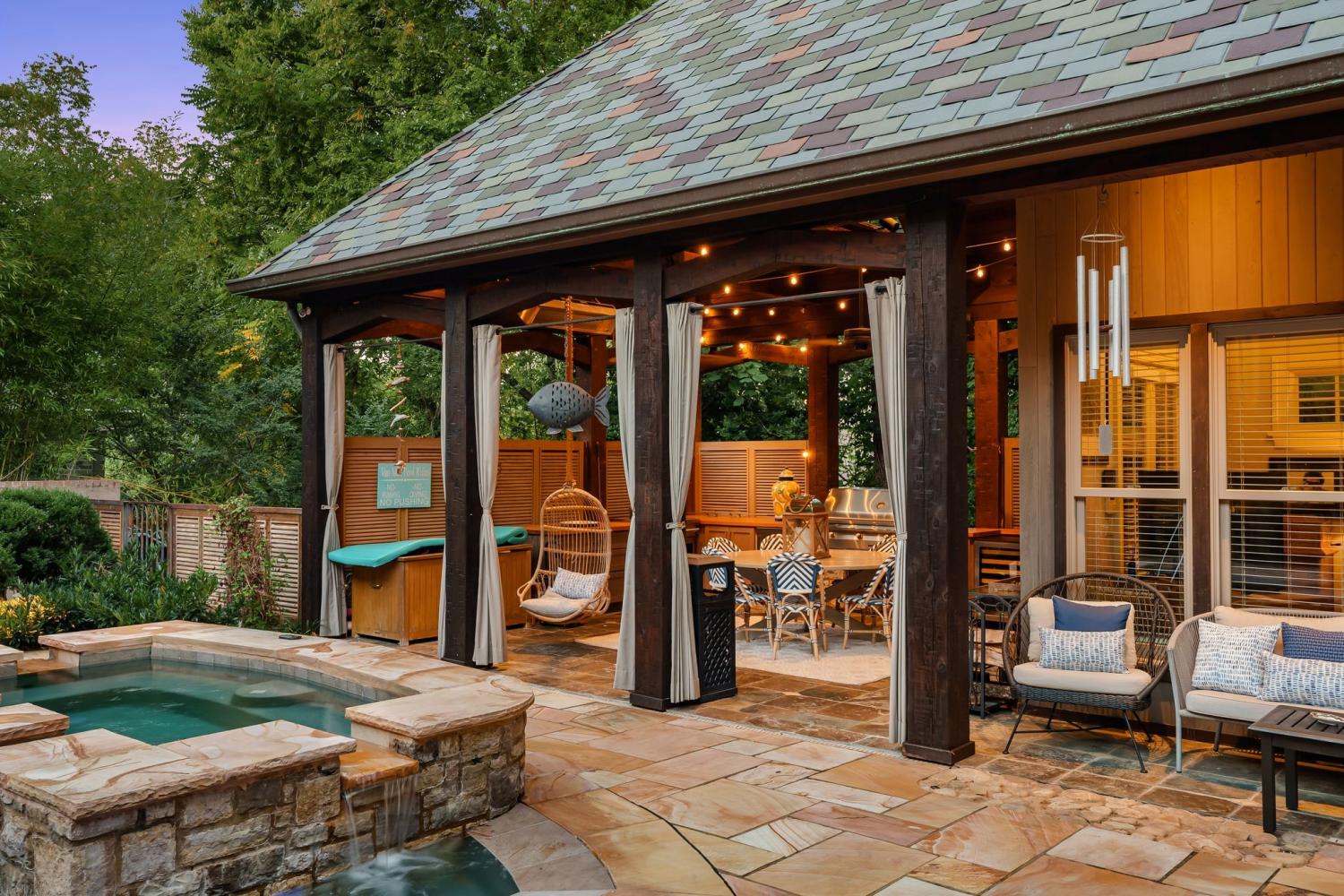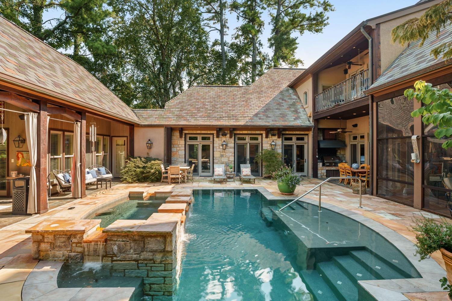 Welcome to 4106 Sneed Road, one of the most distinctive addresses in Green Hills. Built by the late Rogan Allen—one of Nashville’s most prolific builders—as his personal residence, this home showcases timeless design and an exceptional outdoor living experience. The main level is crafted for both everyday living and entertaining, featuring a gourmet kitchen with Wolf + Sub-Zero appliances, custom cabinetry, and seamless flow to formal and casual spaces including a sunroom, dining room, and private screening room. The main-level primary suite is a true retreat, complemented by a handsome wood-paneled office/sitting room for refined work-from-home ease. An elevator provides effortless access to all levels, while a temperature-controlled wine cellar ensures your collection is always ready for entertaining. Upstairs, three spacious ensuite bedrooms and a versatile bunk room with kitchenette provide comfort and privacy for family and guests alike. Outdoors, enjoy a resort-style pool, hot tub, and a private pool house—perfect as a guest retreat, fitness studio, or stylish cabana. Two outdoor grill areas and meticulously landscaped grounds create an unparalleled setting for entertaining and relaxation. Ideally located just moments from the Hill Center and the Mall at Green Hills, with quick access to Downtown Nashville and the airport, 4106 Sneed Road combines timeless architecture with modern luxury living.