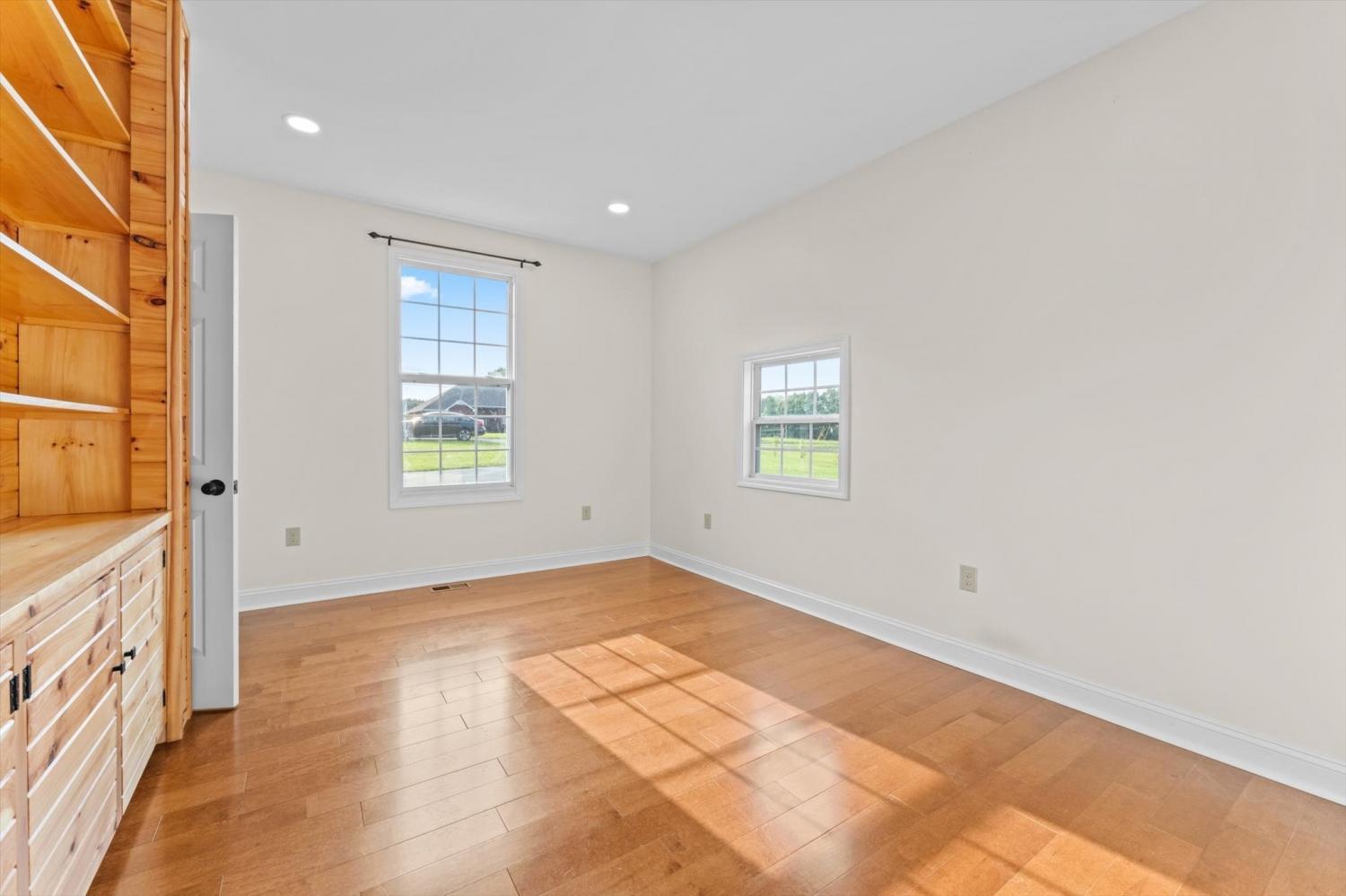 Escape from the traffic and busy city life on this private 5-Acre Retreat with Modern Upgrades & VA Assumption Option. Welcome to this beautifully maintained ranch home on 5.03 acres—peaceful, private, and only 15 minutes from downtown Clarksville. Enjoy NO HOA, NO city taxes, and no backyard neighbors. For those who qualify, a possible VA loan assumption at 4.375% offers added value. This open-concept home offers 3 bedrooms, 2 bathrooms, an office, AND a separate cozy library/reading room with custom-built wooden bookshelves. The gourmet eat-in kitchen features stainless steel appliances, while the spacious primary suite includes a generous bath and walk-in closet. Recent updates & features: New HVAC 2023 (inspected/serviced 2025), New built-in microwave (2025), Washer/dryer (2024) convey, 10x16 shed (2023) conveys. Step outside to the expansive back deck and watch deer and turkey roam the lush property, enhanced by a variety of newly planted fruit and flowering trees in 2023, plus mature hardwoods and pines for a serene, wooded backdrop. The front offers a large covered porch to relax and enjoy the views. Whether relaxing, entertaining, or simply enjoying the natural beauty, this property is the perfect blend of modern comfort and country tranquility.